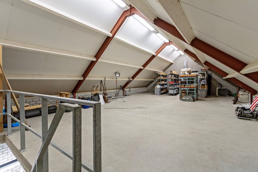 De vrijstaande garage is uitgerust met een elektrische poort, heeft een zolderruimte en een toilet. Het aangrenzende terras met overkapping biedt een heerlijke plek om van het buitenleven te genieten.