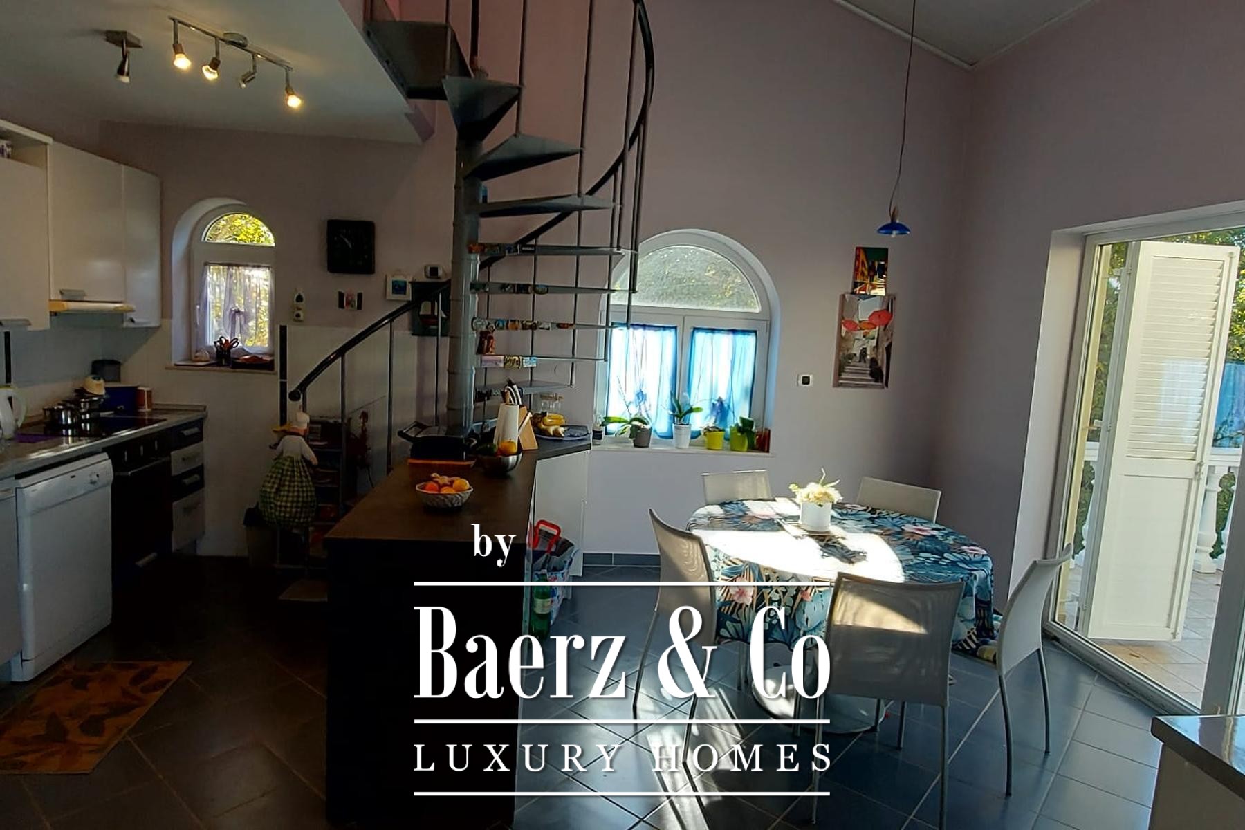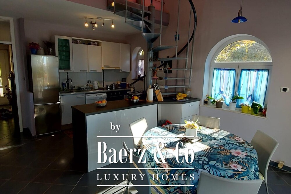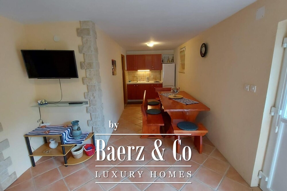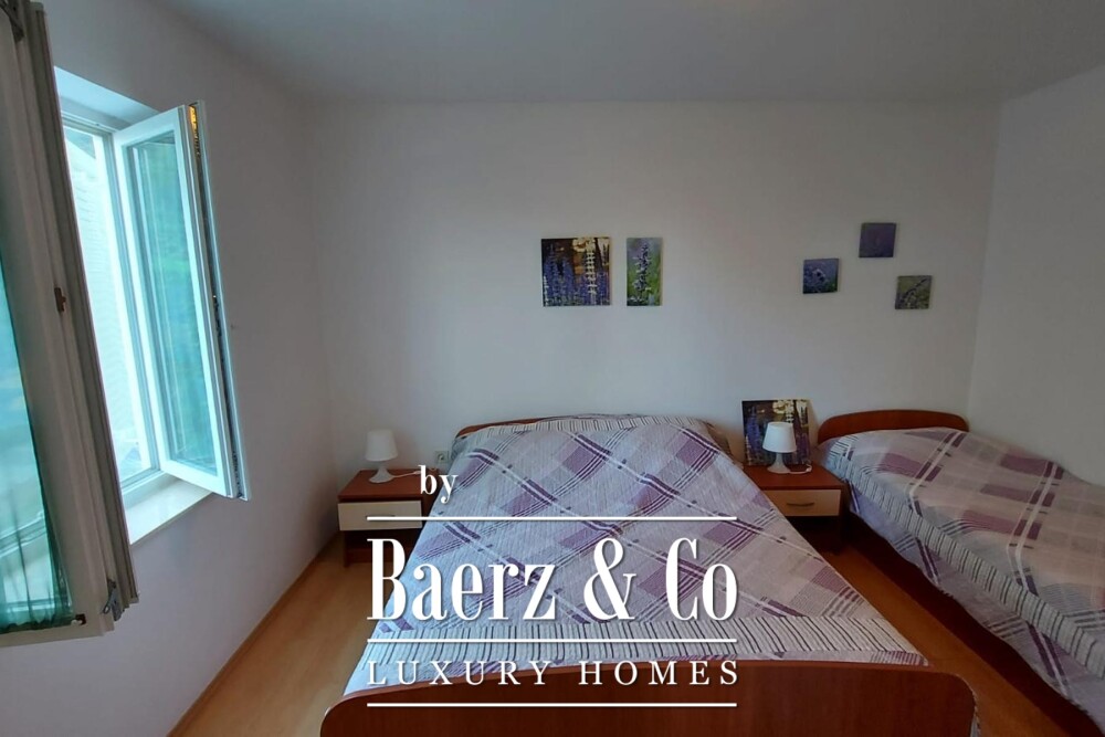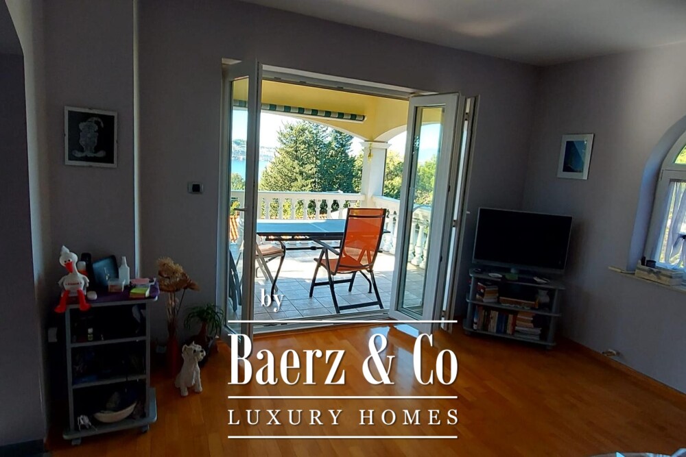 there is a gallery suitable for arranging an additional bedroom. The apartment also has a covered terrace with a beautiful view of the sea. The interior of the house is excellently maintained and fully furnished with quality furniture and equipped with all necessary technical devices, which further contributes to the comfort and functionality of the property. The yard is landscaped and maintained with space for parking spaces. In addition, the advantage of this property is the beautiful open sea view that extends from the terraces and windows. This attractive property is located in the immediate vicinity of the center of the famous tourist town of Omišalj, providing the perfect atmosphere for annual and weekend vacations.
