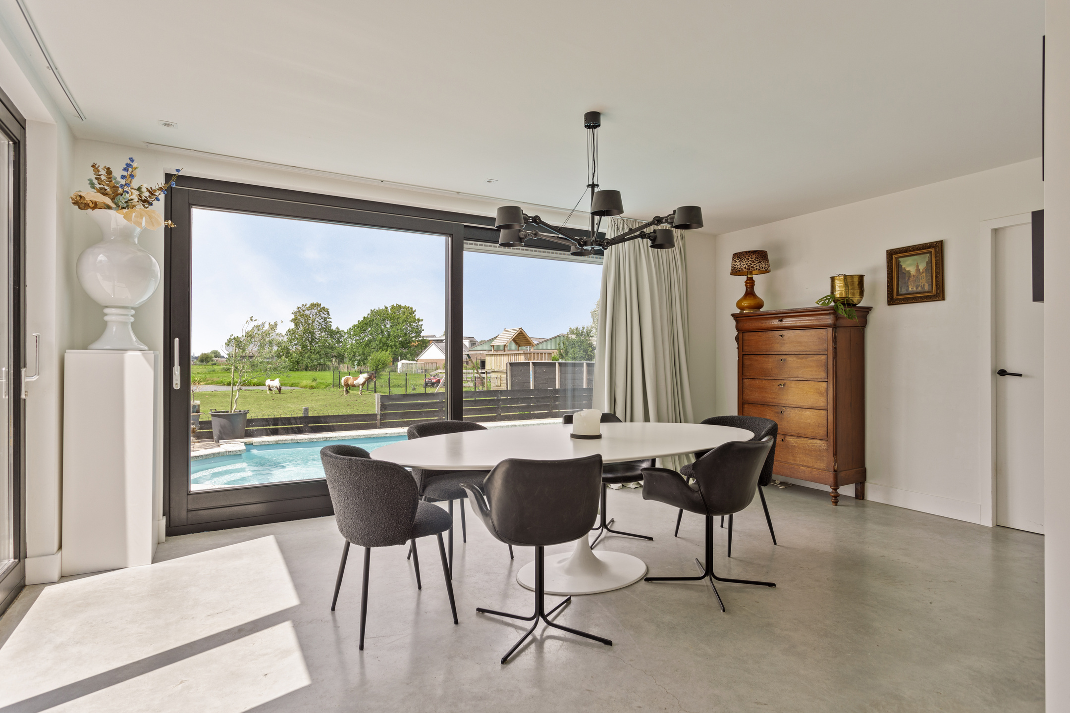 Nestled amidst the meadows of the Landsmeerderveld and the North Holland Canal, this beautifully finished detached home offers unparalleled charm. The sweeping views of the meadows never cease to amaze. Whether relaxing by your poolside or enjoying a fine glass of wine in the open-plan kitchen, breathtaking sunsets become a part of your daily life. Peace and privacy abound here.