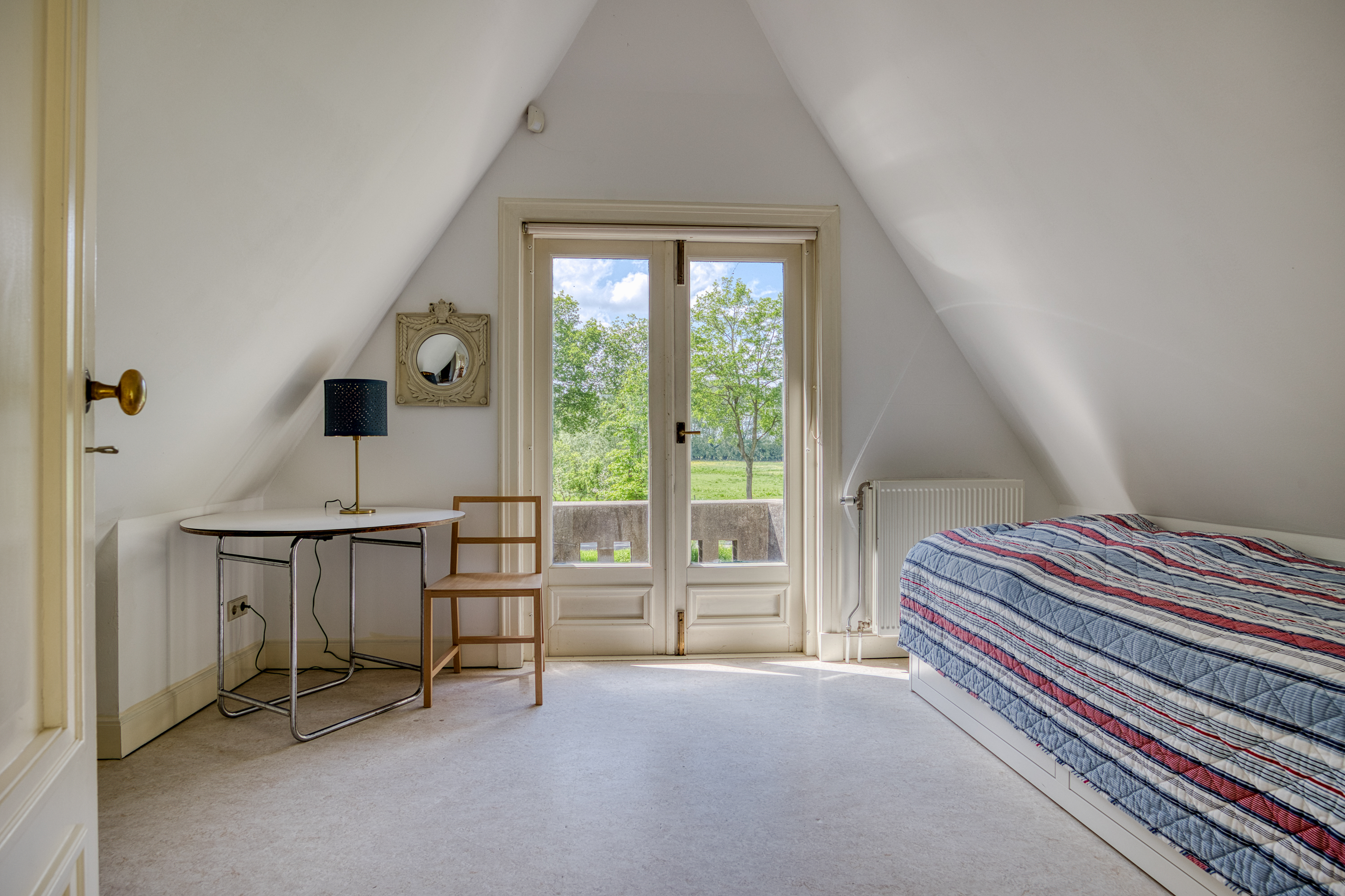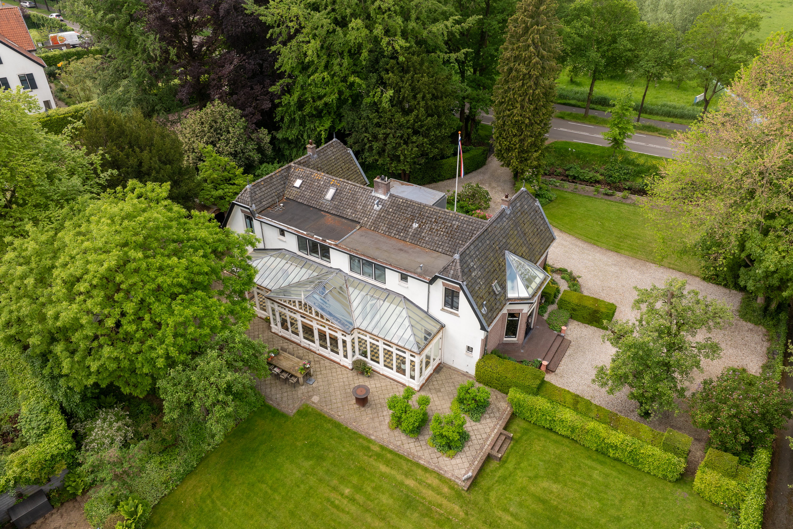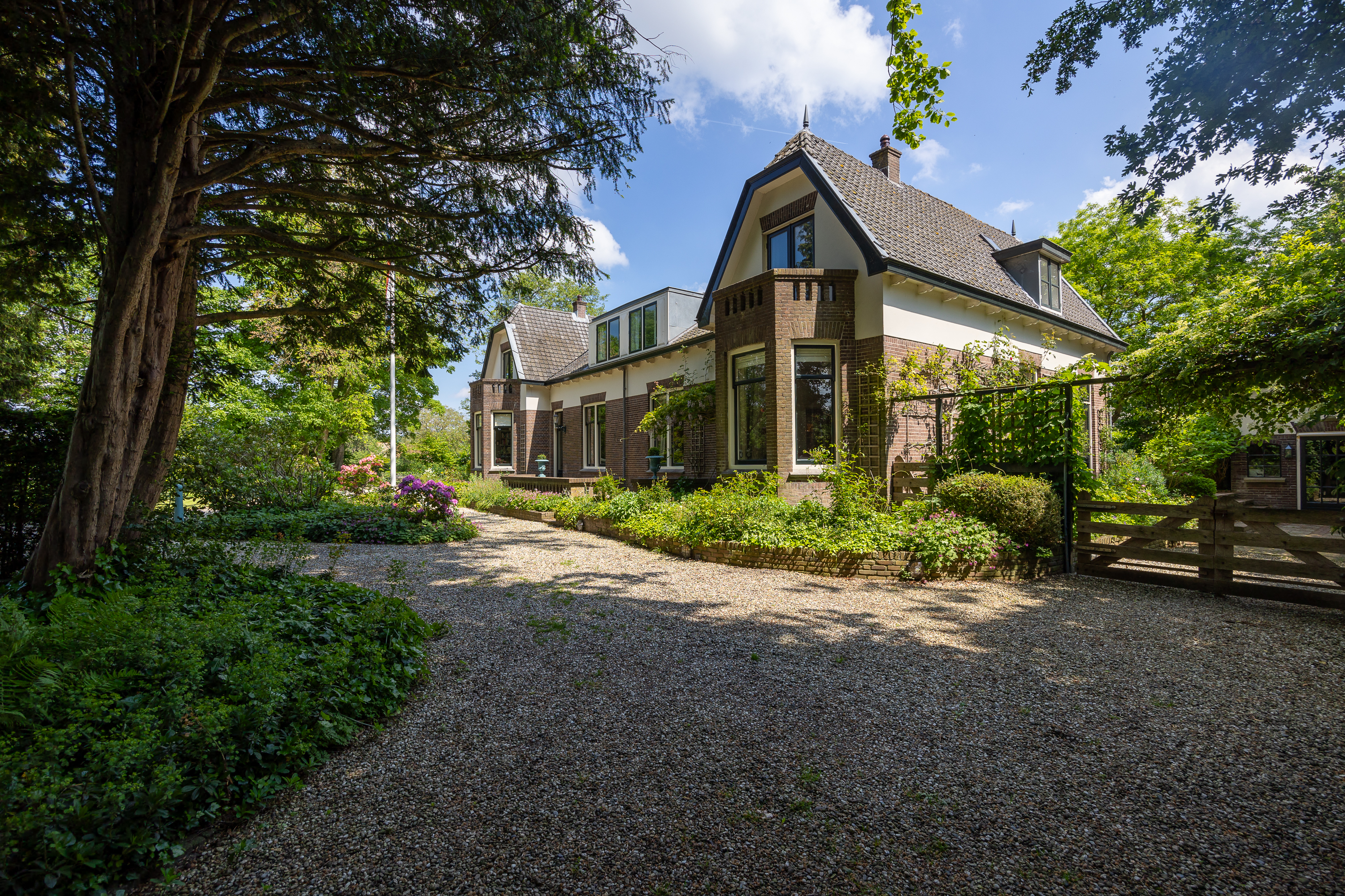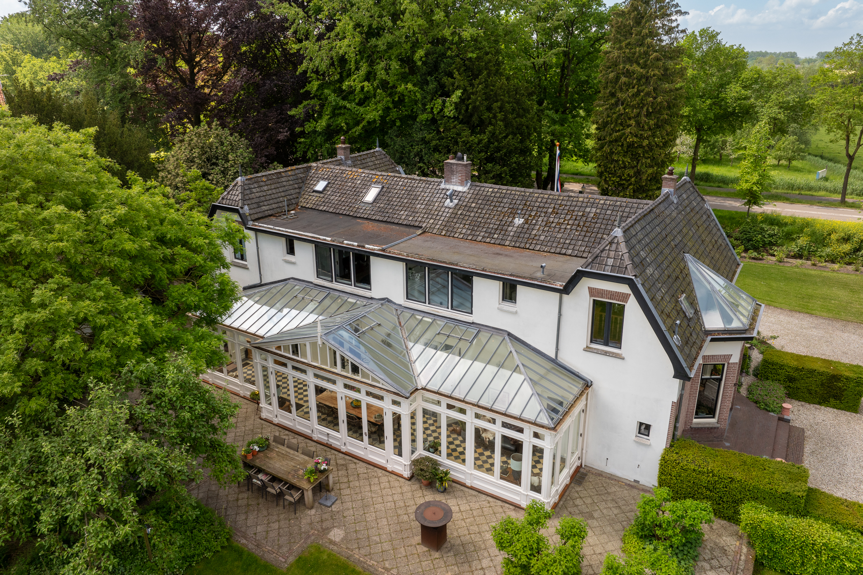 Main house: From the Straatweg in this rural area, you can see the main house between the trees. You reach the plot through a private dam with beautiful wrought iron fencing. The front garden is landscaped with bushes and parking space for cars on the right, also on the right rear is the outbuilding, in the style of the main house, which now serves as a guest house.