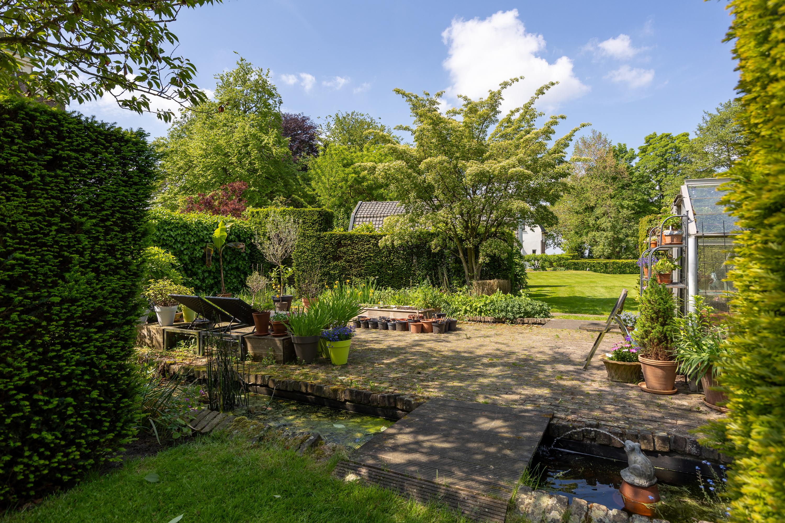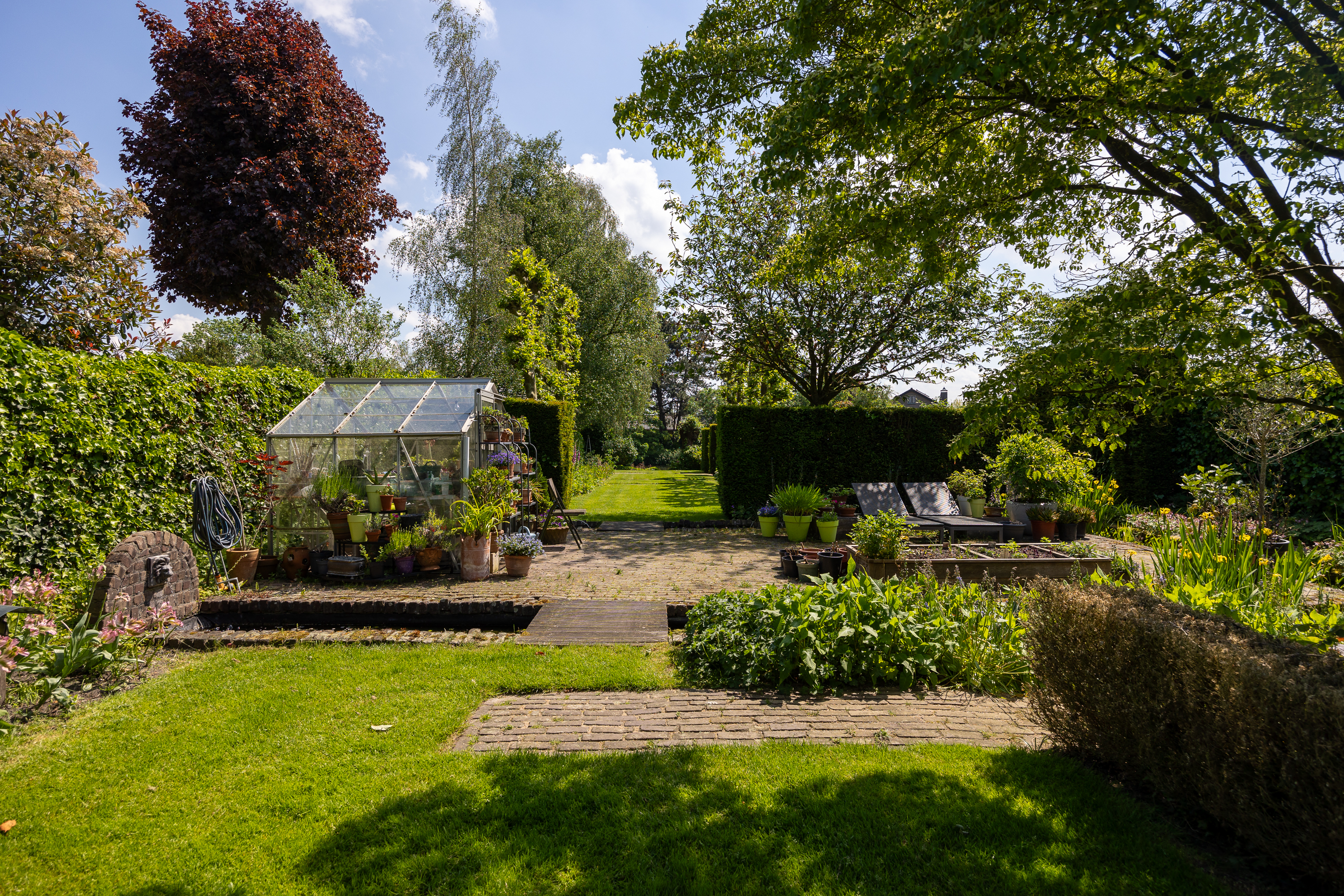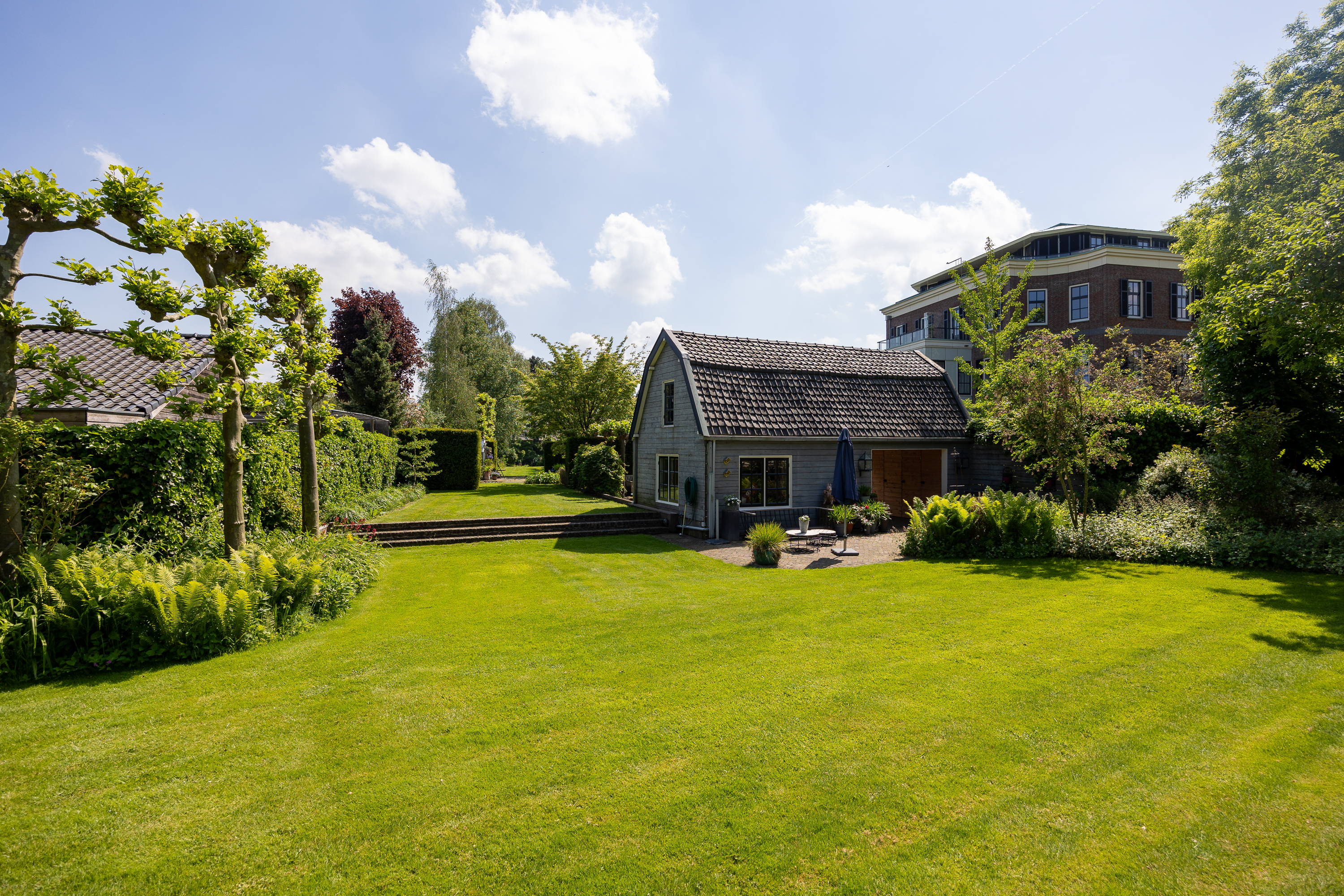 Spring starts with Stinzen plants and a multitude of bulbs. The landscaping is well thought out with perennials, shrubs and monumental trees, truly a green and colorful oasis in the middle of the Randstad. From the house the discovery of this beautiful garden begins, at the rear with a spacious terrace on the conservatory which runs out to the large lawn, through beautiful paths, drillers, ponds and seating areas you enter various garden rooms, each with its own style and atmosphere. On the spacious plot there is of course ample parking space for several cars and there are two large outbuildings. A separate guesthouse/garage and a spacious barn with attic for all your garden supplies/storage room.
