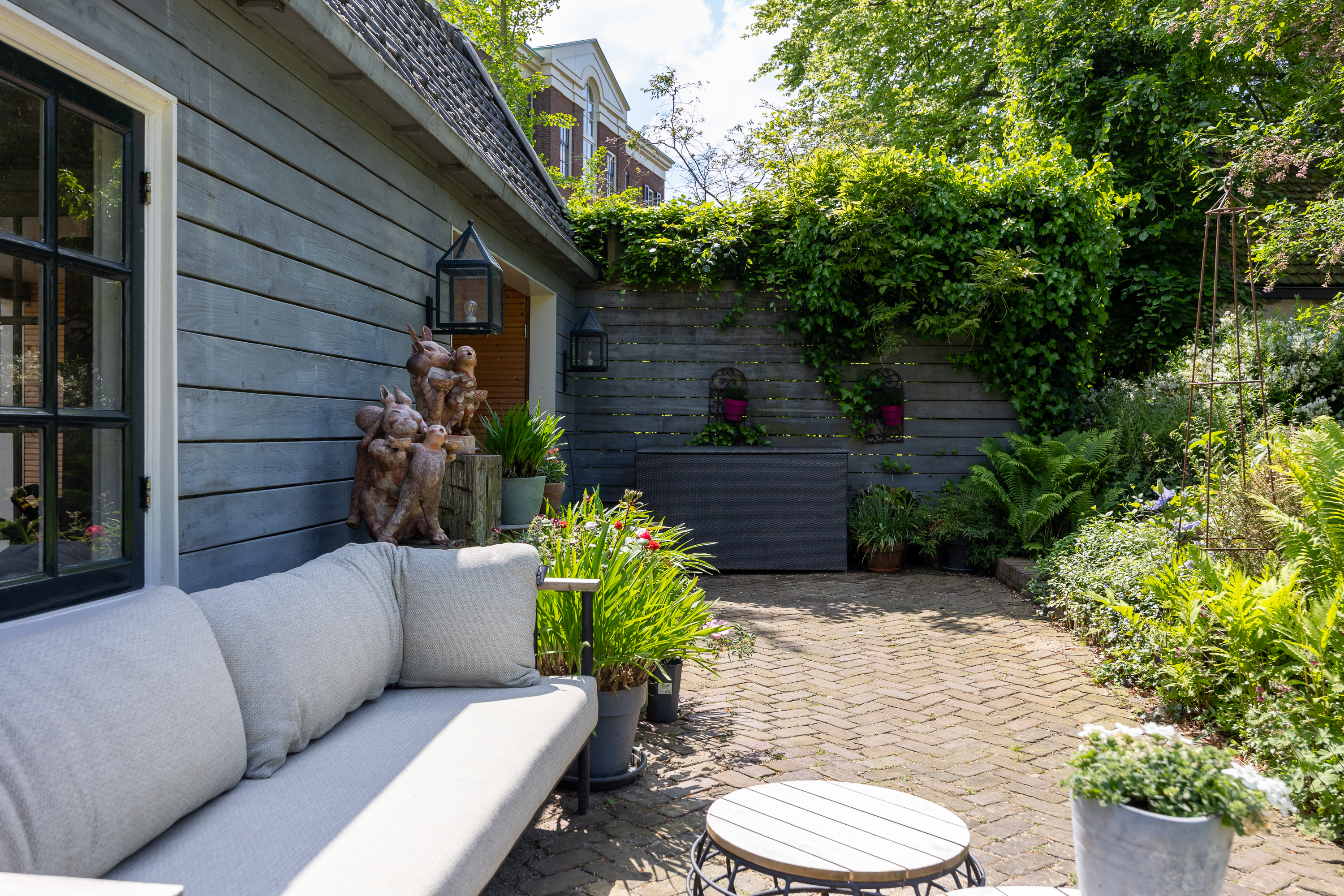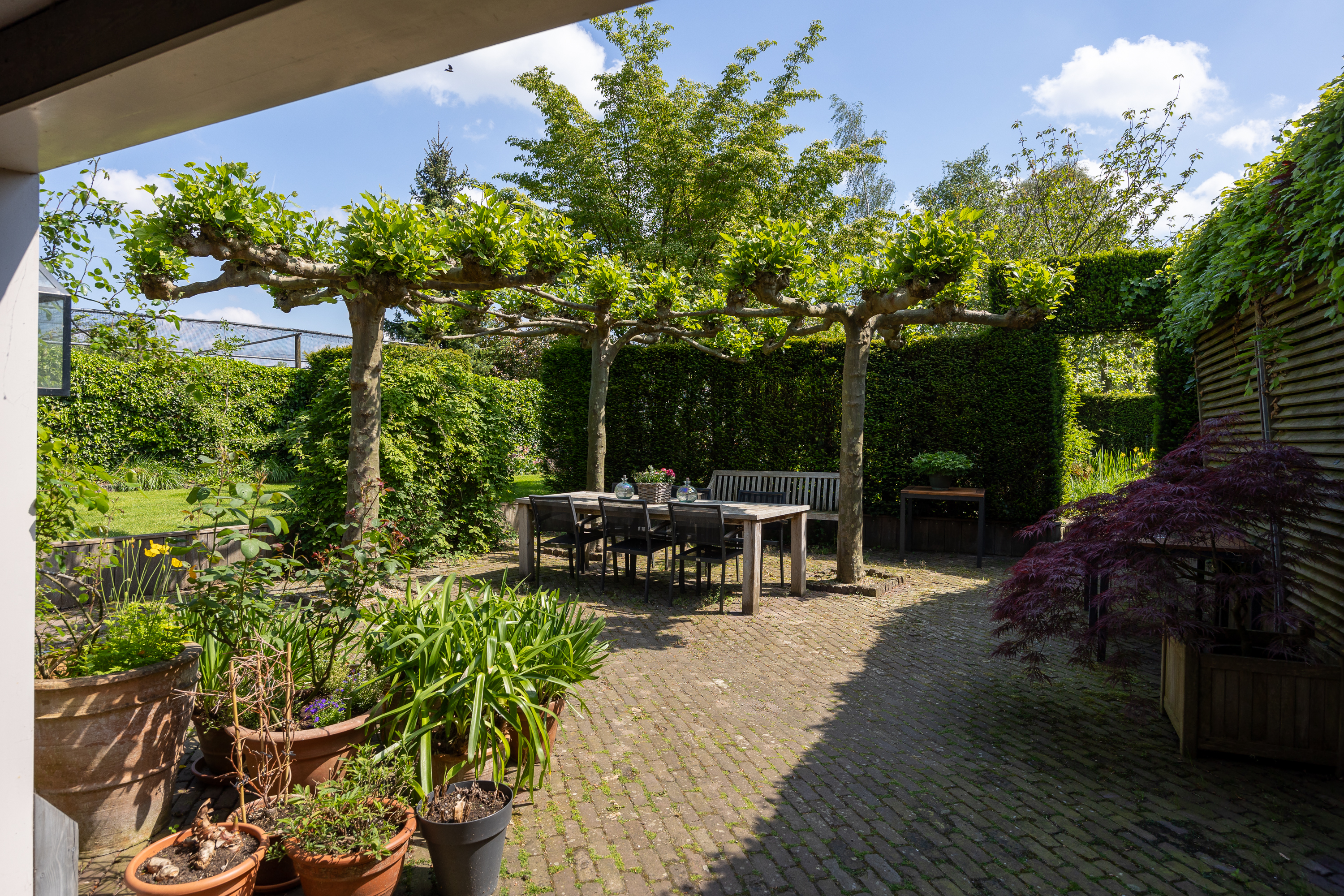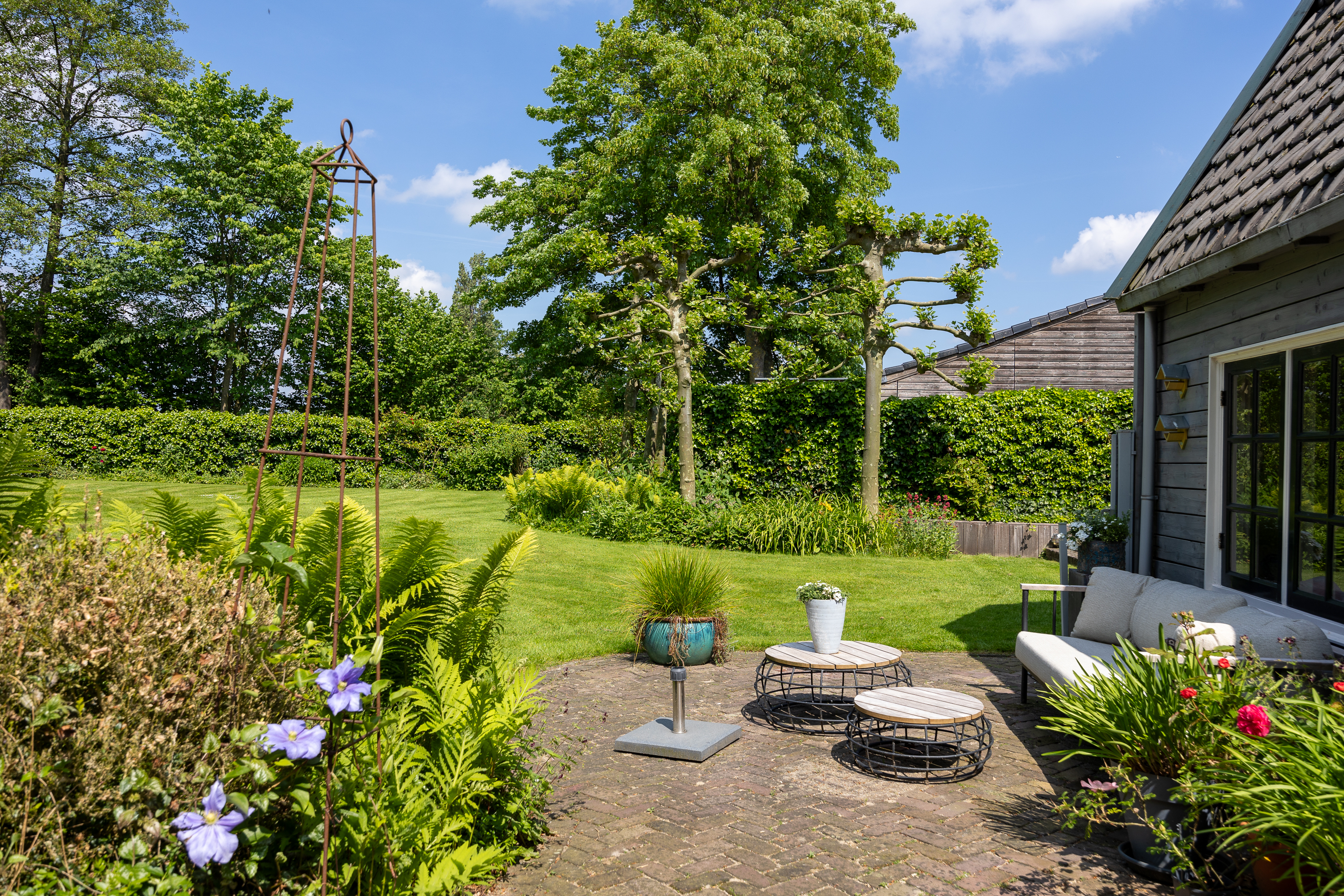 Spring starts with Stinzen plants and a multitude of bulbs. The landscaping is well thought out with perennials, shrubs and monumental trees, truly a green and colorful oasis in the middle of the Randstad. From the house the discovery of this beautiful garden begins, at the rear with a spacious terrace on the conservatory which runs out to the large lawn, through beautiful paths, drillers, ponds and seating areas you enter various garden rooms, each with its own style and atmosphere. On the spacious plot there is of course ample parking space for several cars and there are two large outbuildings. A separate guesthouse/garage and a spacious barn with attic for all your garden supplies/storage room.