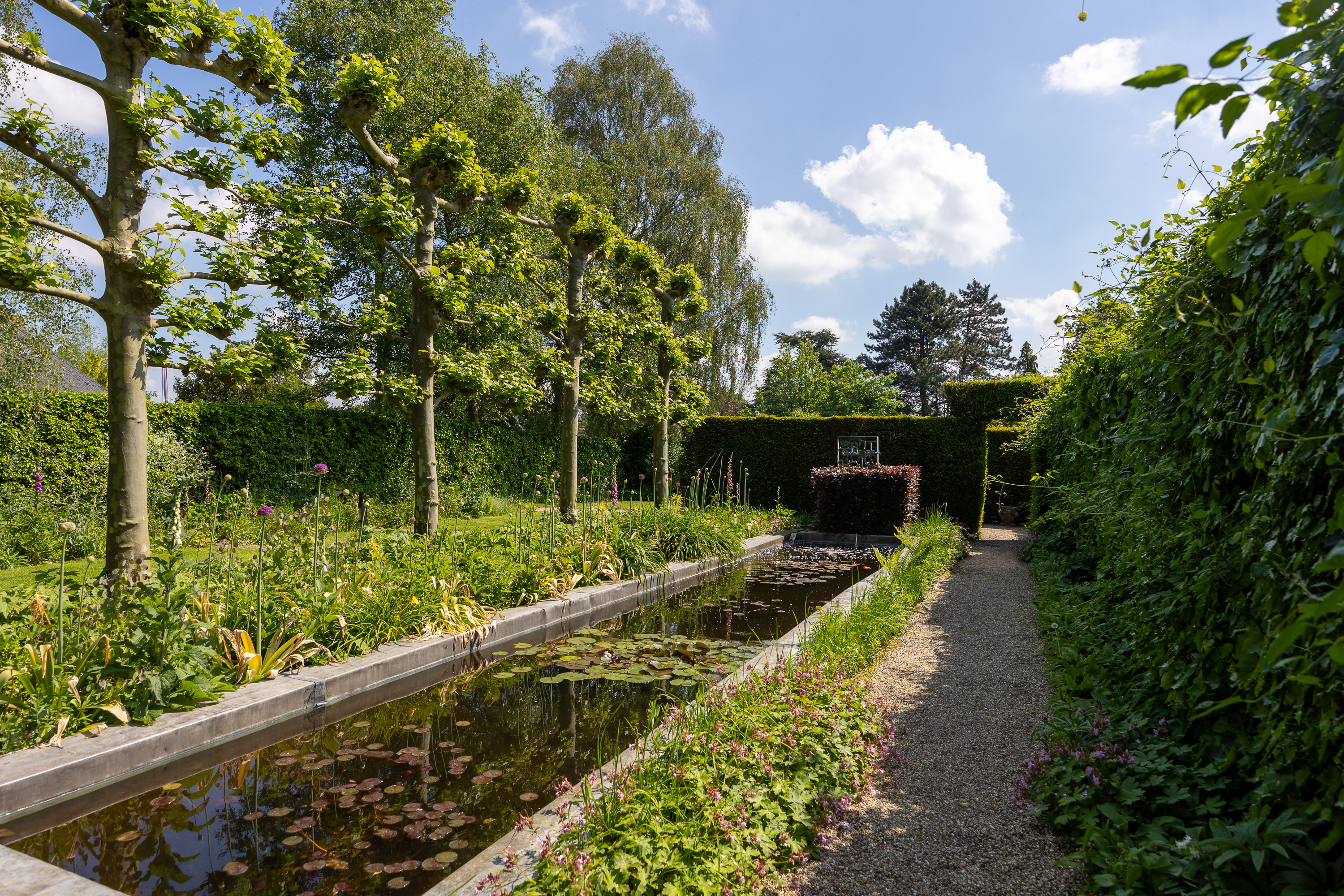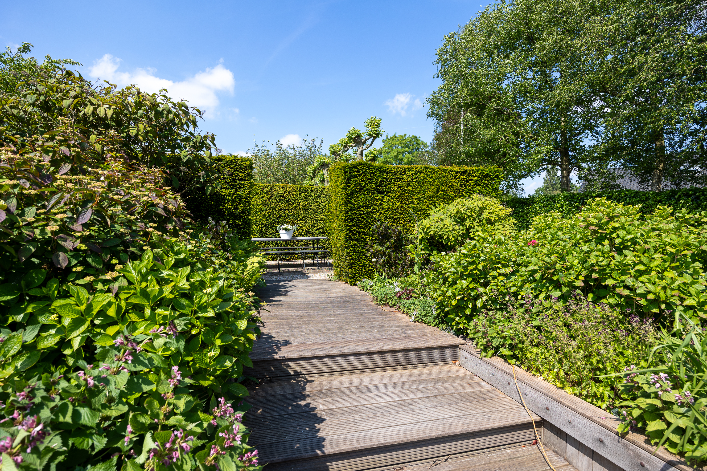 The garden is certainly one of the many surprises. This jewel has been carefully landscaped over the years by the owners, with the input of a well-known landscape architect, and shaped into a beautiful ornamental garden where you can relax in peace and privacy after leaving the hustle and bustle of the big city. Enjoy a good book, a nice glass and a snack, or relax with family and friends in the sun or natural shade on one of the several intimate terraces/seating areas. In this classic English ornamental garden you will find beautiful borders by colour with flowering plants that follow each other in bloom at different times of the year.