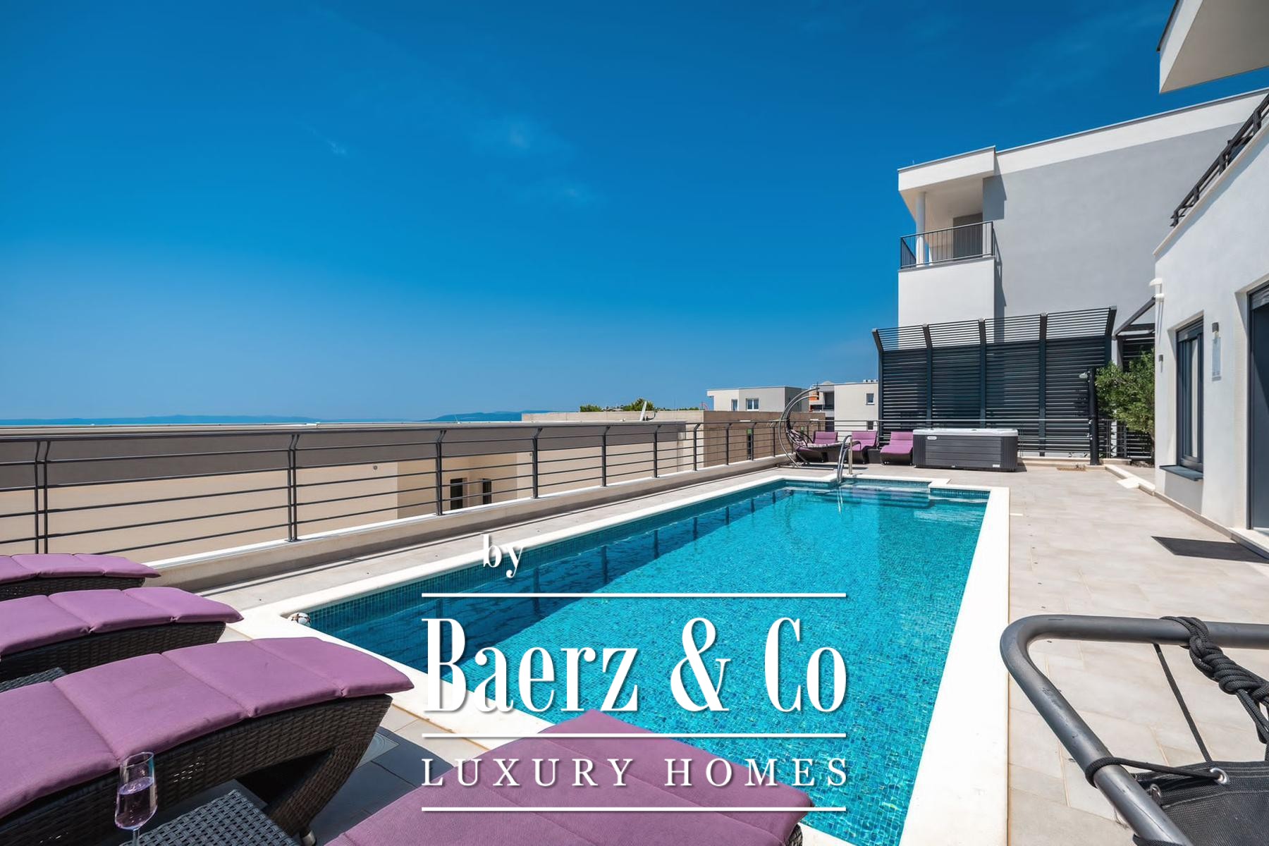 Villa Makarska occupies an elevated position, delivering panoramic views across the sea and the historic town below. This villa in Makarska stretches across 450 m² of living space, integrated into a 448 m² plot that articulates a clear connection between interior and exterior living. The south-facing orientation ensures constant natural light in every principal room, enriching daily life with views that shift from dawn to evening.