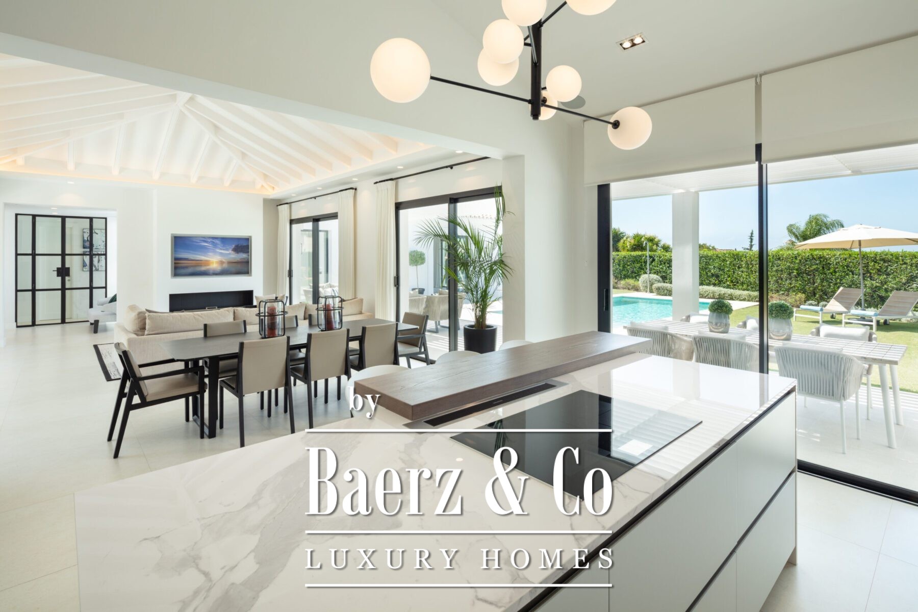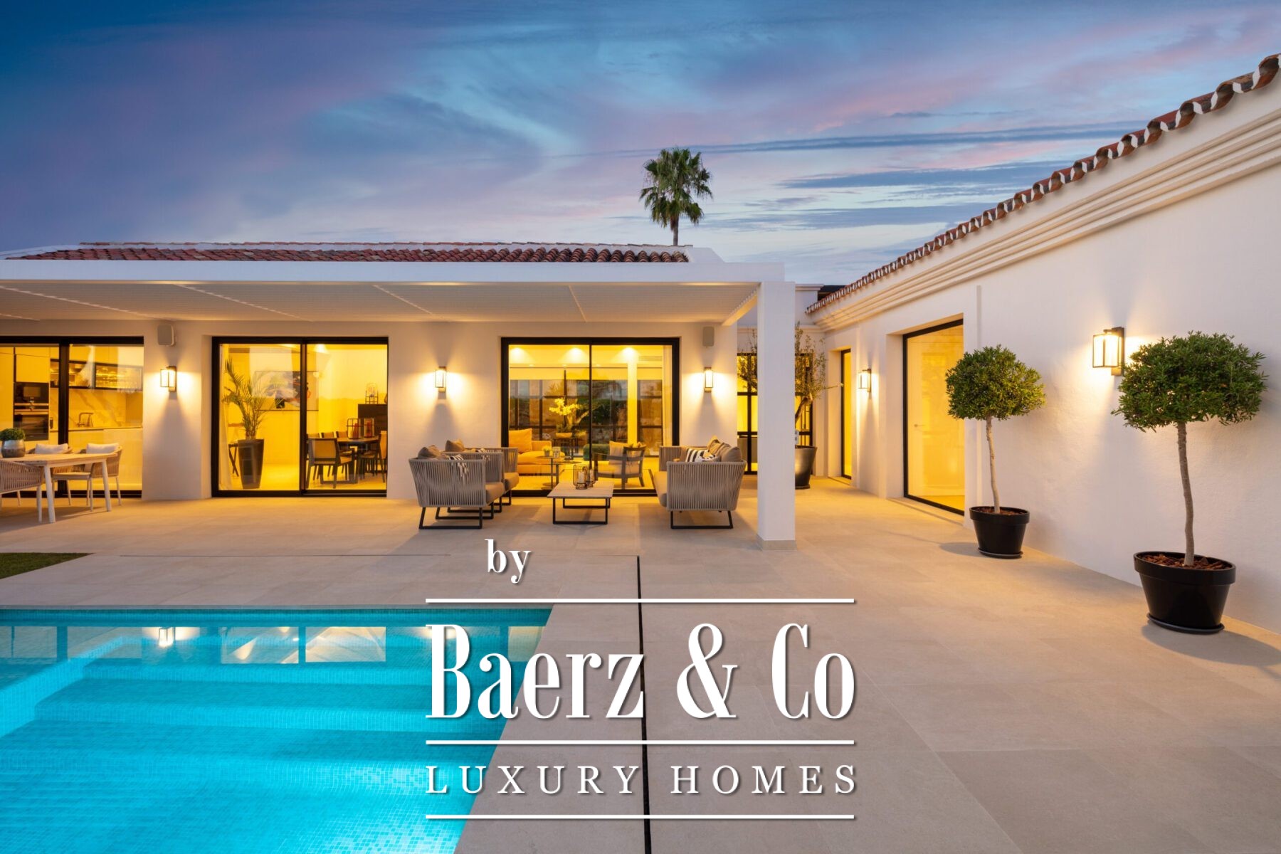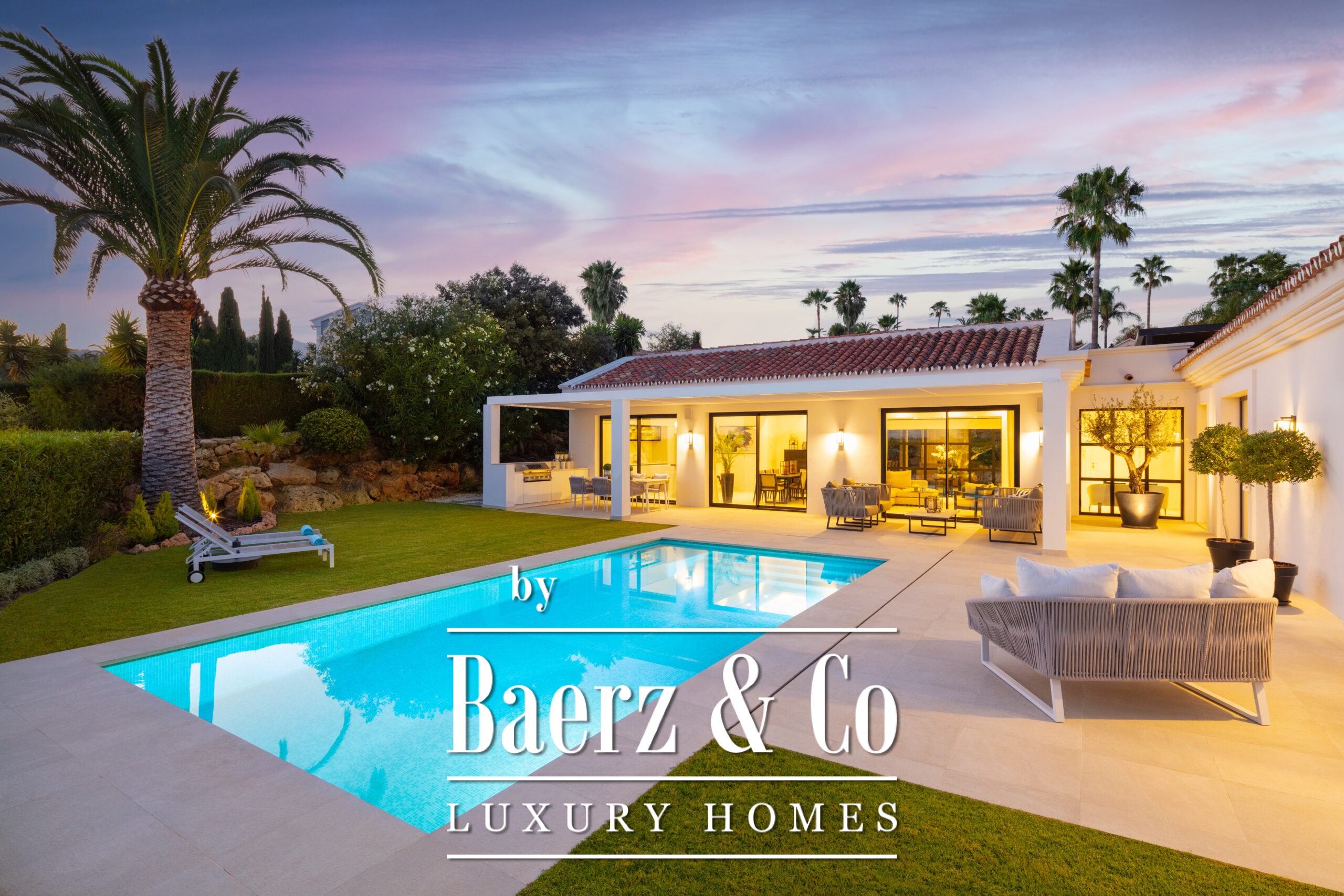 This stunning modern Andalucian villa located in boutique gated community walking distance to Los Naranjos Golf club, offers a modern internal living style, while keeping its Andalucian tiled roof and charm. This beautiful one-level villa set on a south west plot, offers incredible amounts of light and sun all day long.