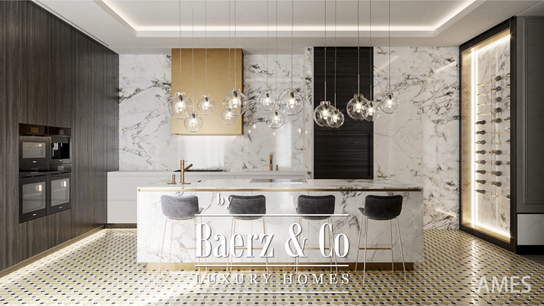Moving through the property, the array of amenities continues to impress. A dedicated playroom provides space for entertainment, while a bespoke bodega offers storage for wine connoisseurs to display their collection. An elegant office space is perfect for those who require a quiet area to work, while the spa area in the basement elevates this villa to a level of pure indulgence. Here, you’ll find a hammam, a sauna, and a gym, along with a serene indoor heated pool—creating a wellness oasis within your own home.