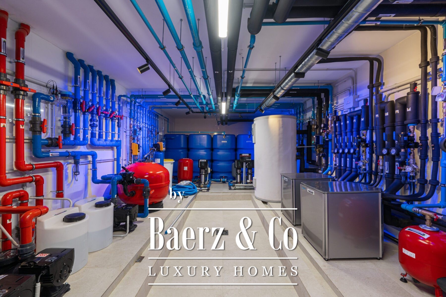 On the lower level, leisure and wellness come together with a dedicated guest suite, a private spa with an indoor heated pool, sauna, and gym. The entertainment lounge and bespoke bar invite elegant gatherings, while the cinema room and custom machine room underscore the home’s sophisticated infrastructure and emphasis on operational discretion.