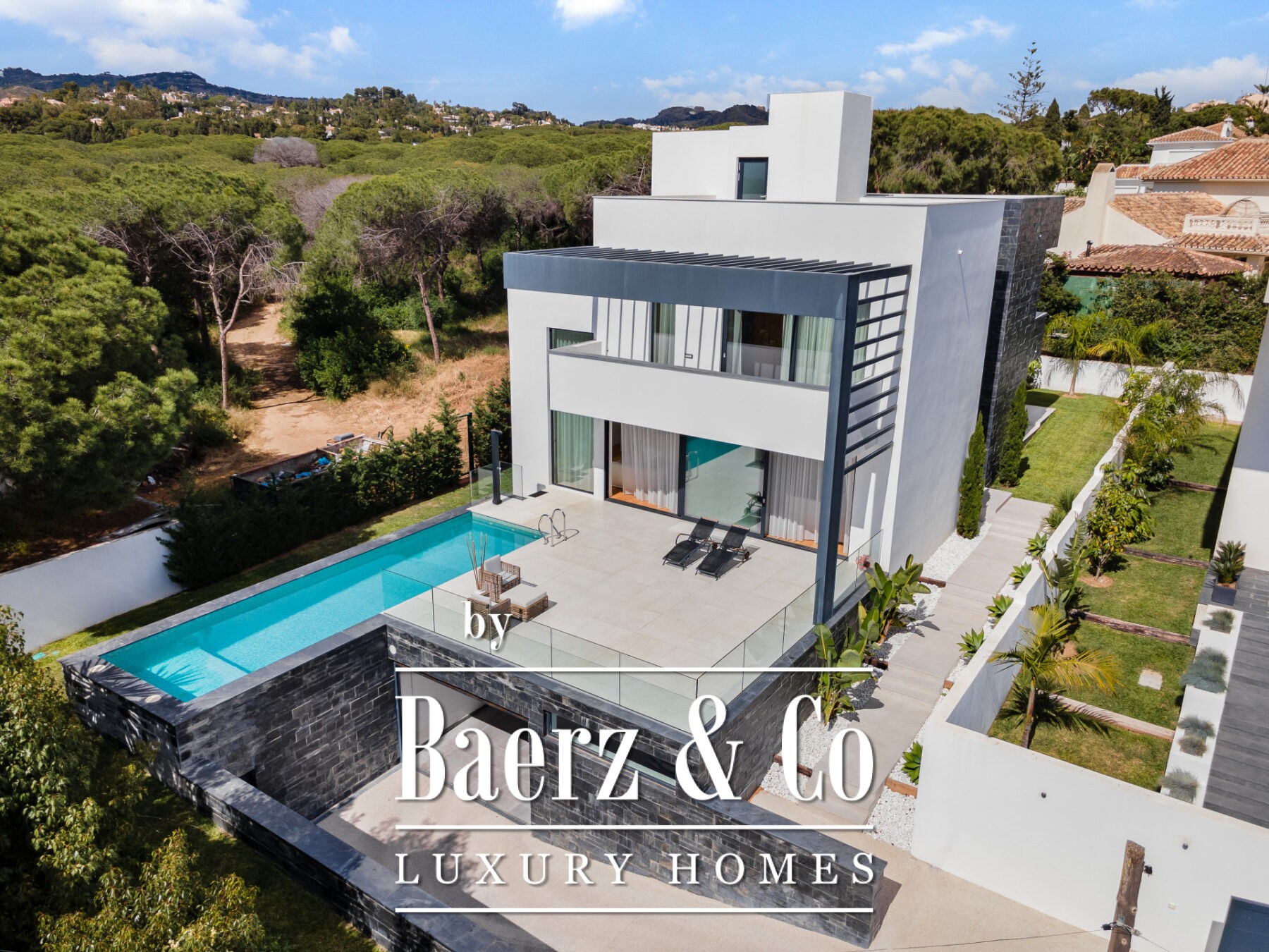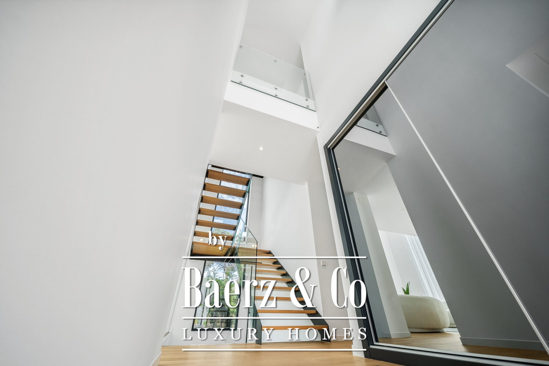 Contemporary villa Marbella defines refined coastal living in Marbesa, nestled on a quiet cul-de-sac moments from the Mediterranean. The villa’s 479 m² span three levels, distinguished by clean architectural lines, oak wood floors, and floor-to-ceiling windows returning natural light to every corner. Six bedrooms and six bathrooms are arranged with subtle elegance and privacy, each space thoughtfully attuned to year-round comfort.