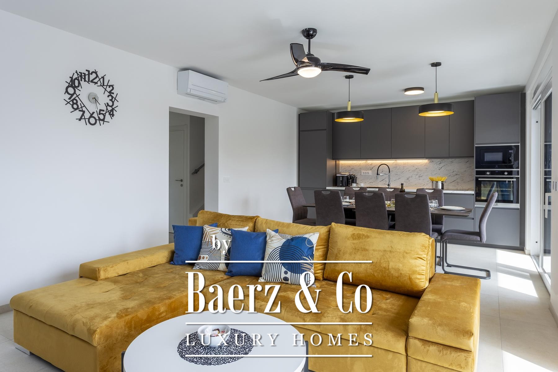 Details such as air conditioning in every room, PVC joinery with mosquito screens and electric shutters, as well as solar panels, reflect a commitment to comfort and efficiency. The landscaped garden, enriched with olive trees, an irrigation system, and a jacuzzi, creates quiet outdoor spaces, while two parking spots, an electric vehicle charging station, and the possibility for more highlight practical modern living. Medulin’s promenade, marina, and proximity to Pula International Airport support a pace of life that is as steady as it is connected. This is a luxury villa for sale in Medulin where family living and investment meet with understated refinement.