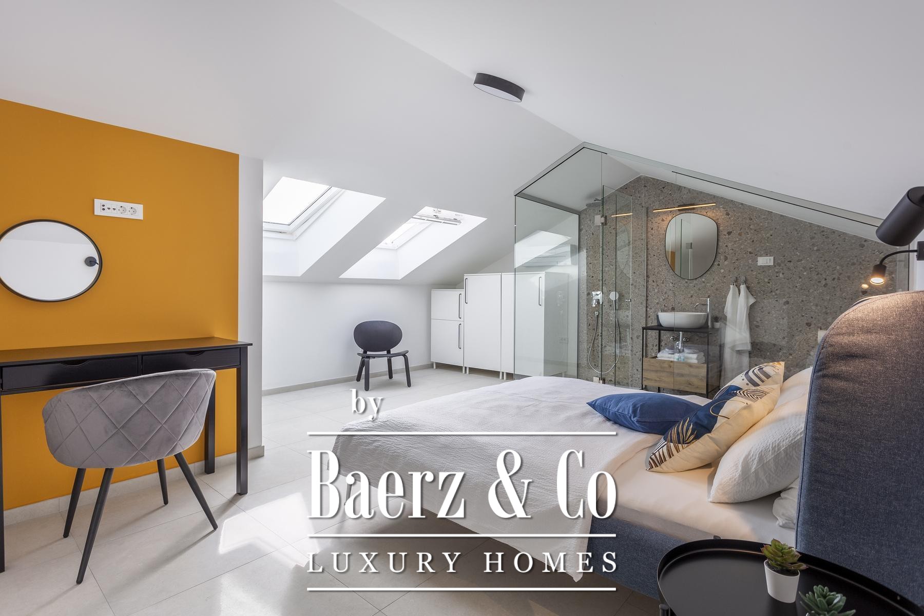 Spanning four thoughtfully arranged levels, the house opens with an expansive ground-floor living area, seamlessly connecting kitchen, dining, and lounge spaces. Each level maintains a natural flow, from the terrace-linked bedrooms on the first floor to the panoramic second-floor terrace with a summer kitchen. The attic completes the composition with a private en-suite bedroom. Throughout, four bedrooms and four bathrooms allow for versatile family life or guest accommodation.