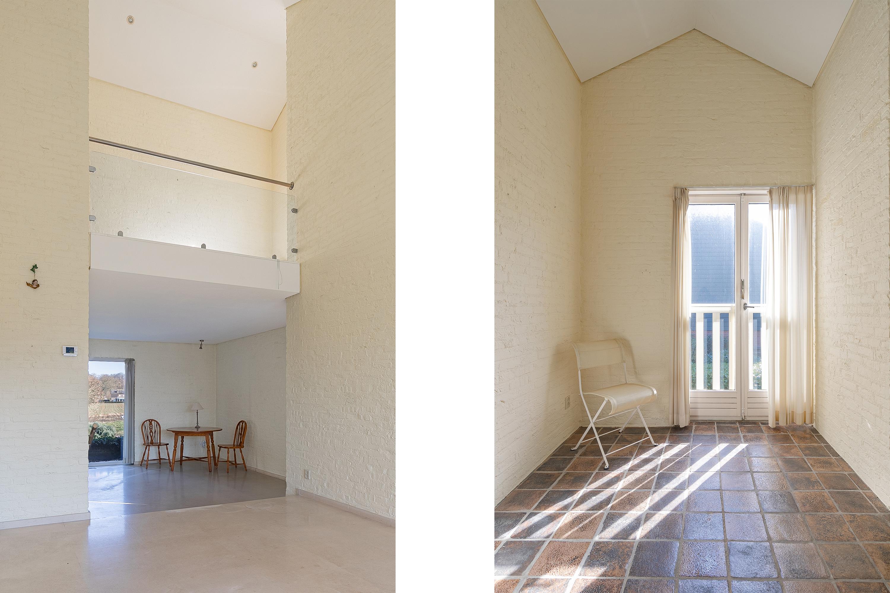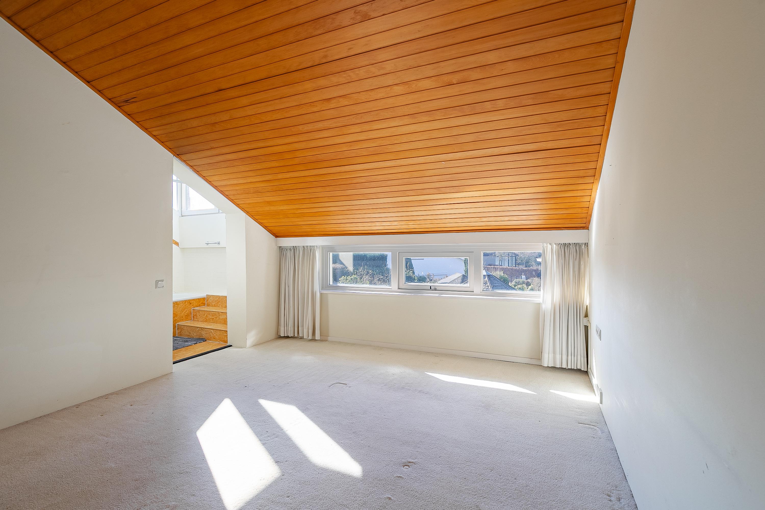 The beautiful semicircular staircase leads to the spacious landing with access to three bedrooms, a bathroom, separate toilet, and a hallway. The bedrooms at the front are approx. 7 and 9.5m² in size and offer beautiful views. The bathroom is approx. 4m² and has a shower, sink, skylight, and access to a storage room. The master bedroom is located at the rear (approx. 17m²) and has an en-suite bathroom. This bathroom (approx. 6m²) has a bath/shower combination, sink, and a dormer window. The porch of approx. 8m² overlooks the living room but can easily be transformed into an extra bedroom.