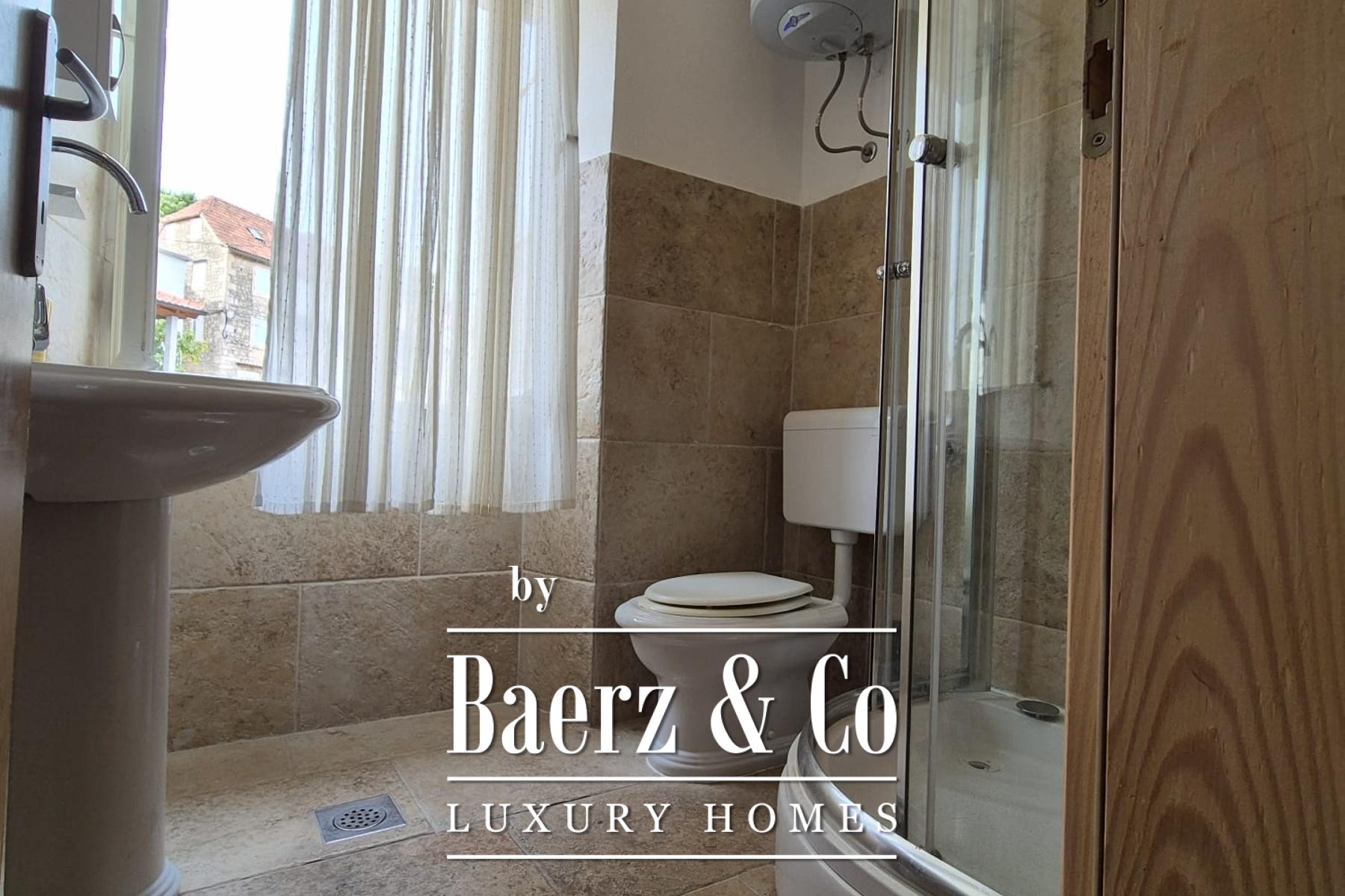 The ground level houses a fully equipped restaurant whose doors open directly to the promenade, its setting welcoming both local guests and visitors under soft maritime light. The first floor offers a spacious dining hall, a large kitchen, and a bathroom, allowing for flexible daily use or expanded hospitality. Upstairs, four bedrooms, a bathroom, and a living room lead to a terrace where views of the harbour, town, and sea impart a sense of timeless Dalmatian life.
