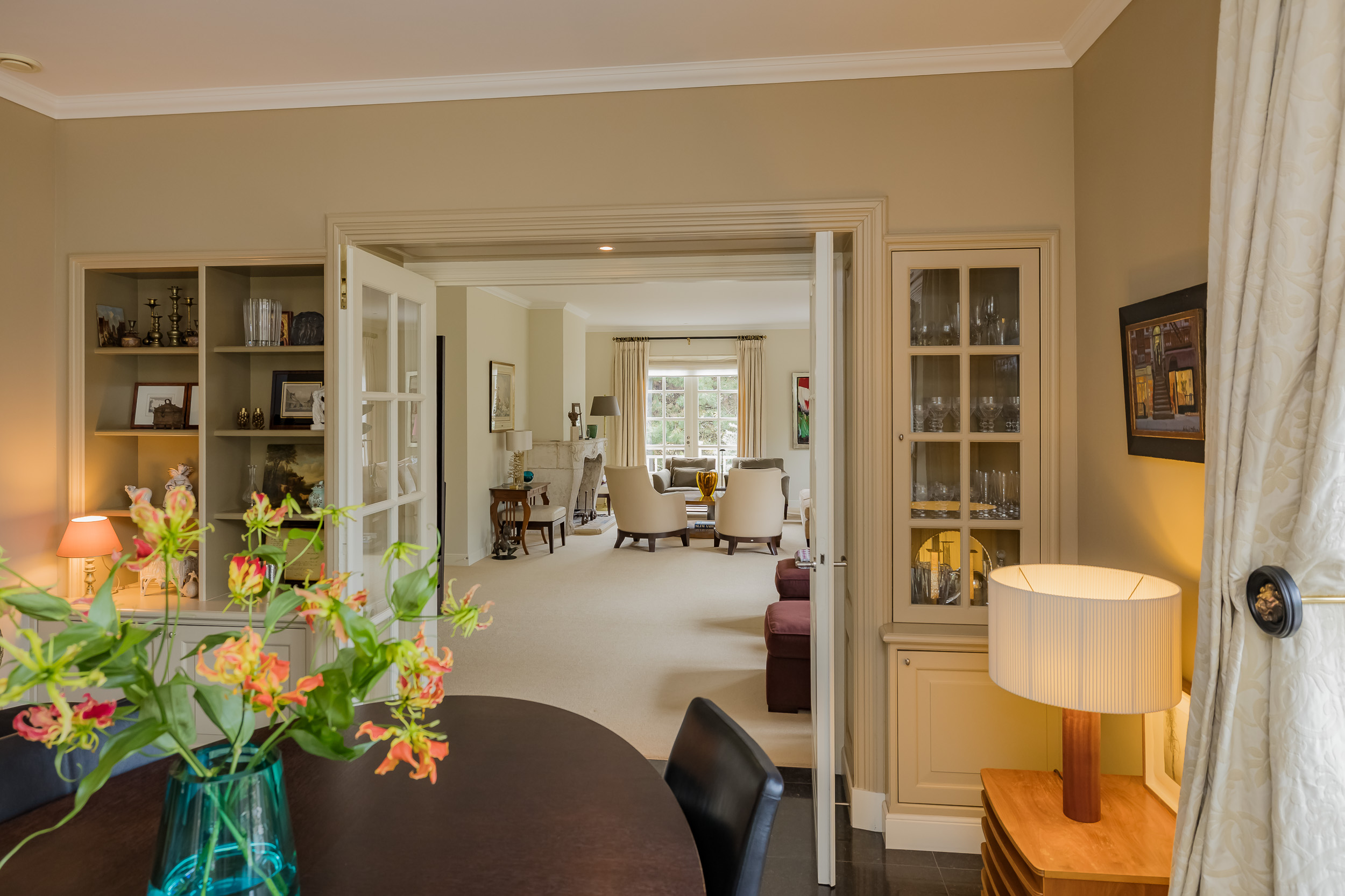 The villa exudes tranquility, space, and elegance. An elegant entrance, richly surrounded by flowers, welcomes you at the door. The spacious hall leads to the cozy living room with fireplace, adjacent dining room, and delightful kitchen with French doors to the garden. A place that invites you to spend long evenings cooking, dining, and enjoying life. A practical utility room and a spacious study on the ground floor complete the picture. All rooms have direct access to the garden, veranda, or one of the balconies.