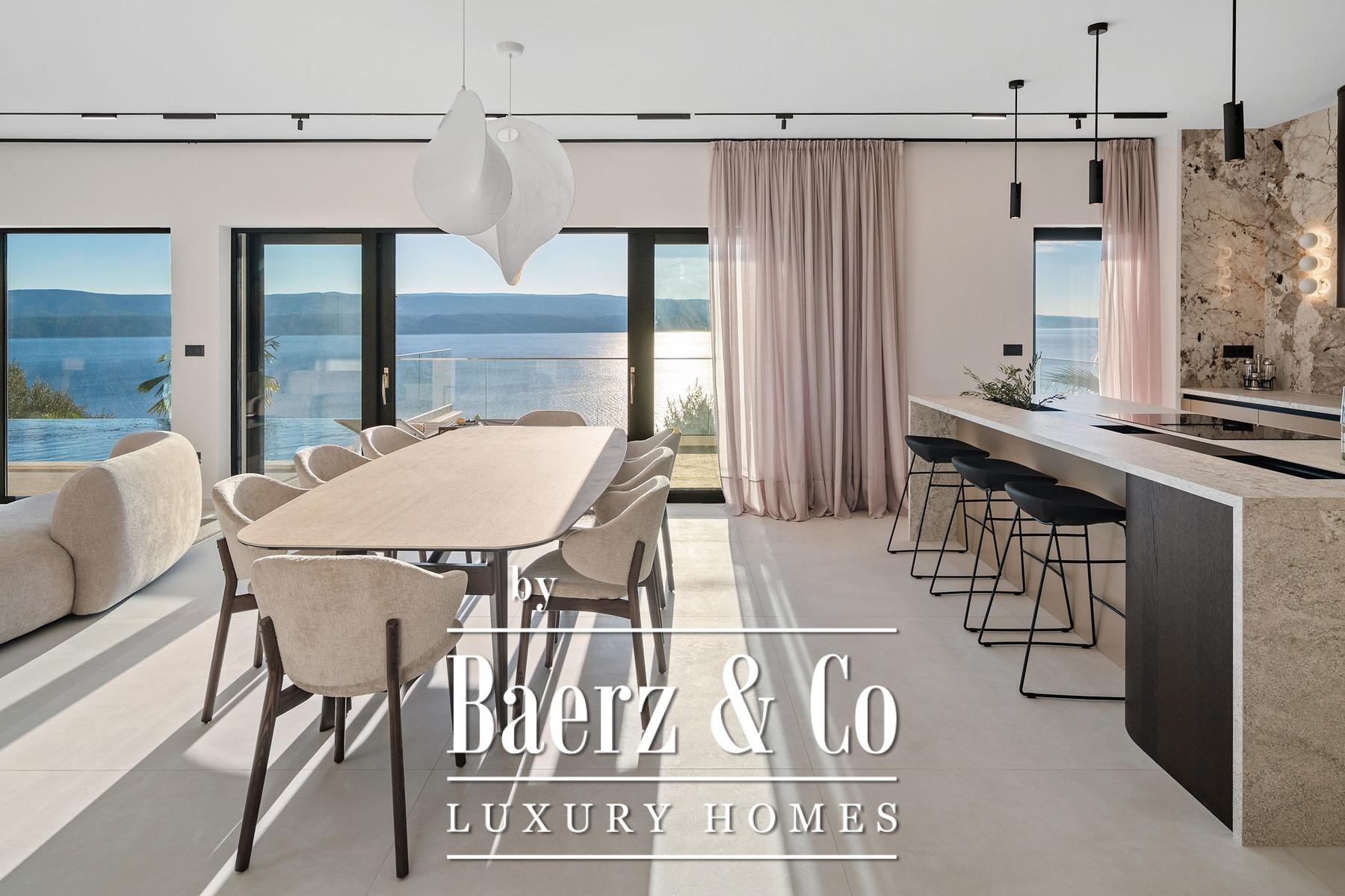 Luxury villa Omiš presents an interplay of contemporary architecture and harmonious sea views across four spacious floors. This property offers 415 m² of living space on a 600 m² plot, situated 300 metres from the Adriatic. Every level of the villa commands unobstructed panoramic sea views, creating an ambiance shaped by light, tranquility, and the rhythmic movement of water.