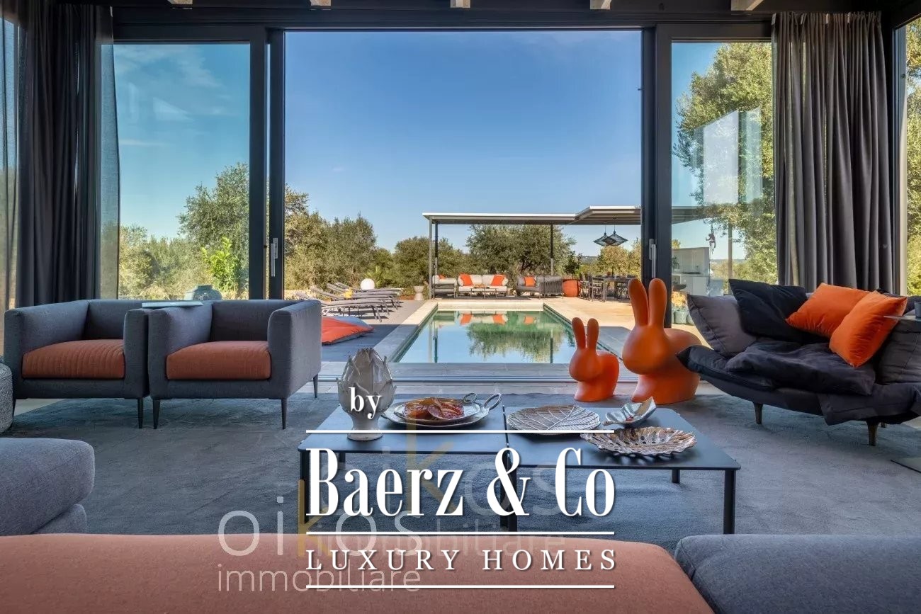 Nestled between the rolling hills of Ostuni and Cisternino, in one of the most sought-after areas of the Valle d’Itria, this villa Ostuni Puglia is a perfect blend of contemporary design, advanced technology, and the unique charm of the Apulian countryside. Built on a fully fenced private plot of 7,000 square meters, this property offers a serene oasis in a prime location with breathtaking panoramic views.