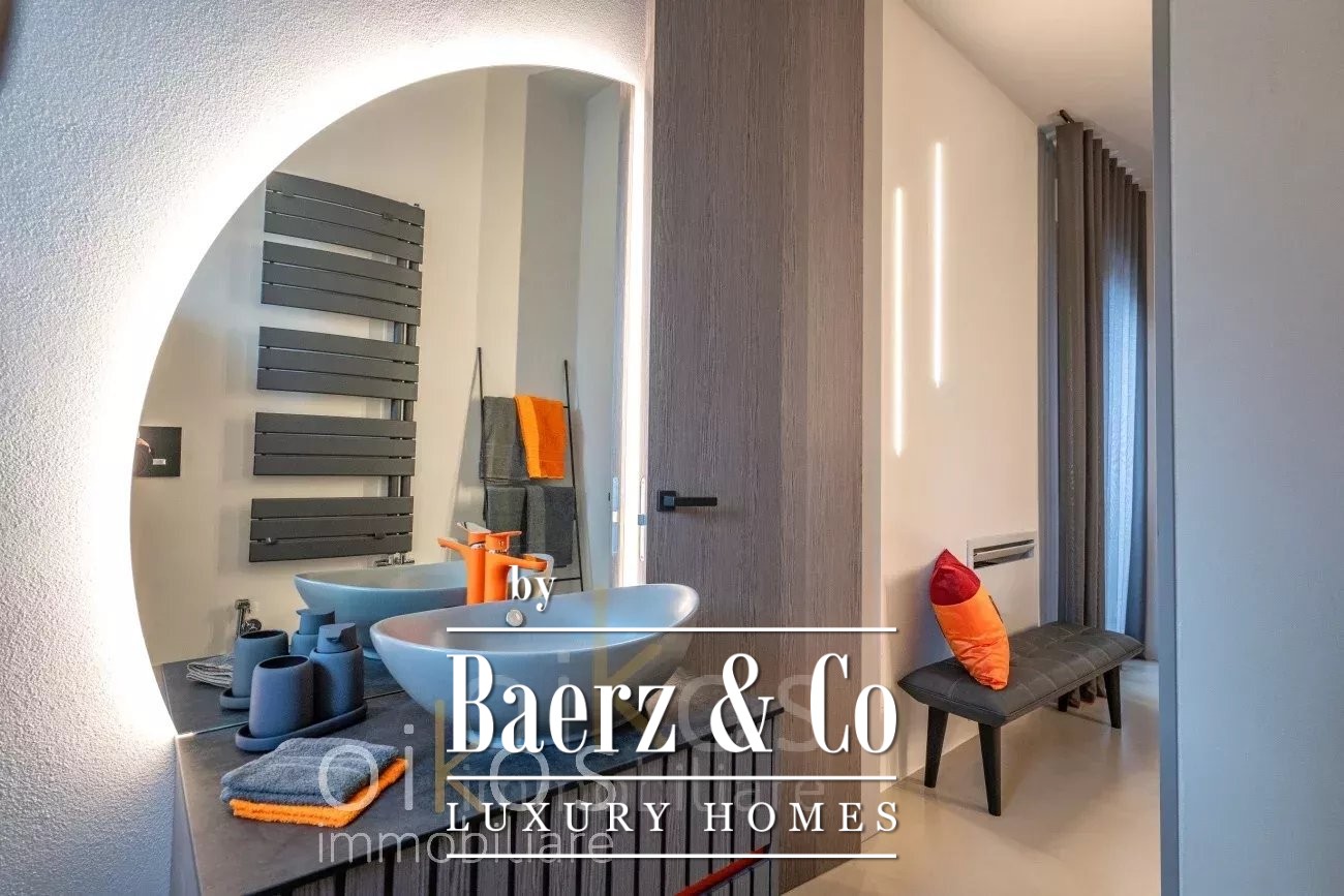 Upper Floor: Features two spacious bedrooms with suspended beds, Alpi composite wood paneling in a natural finish, and custom-made furnishings in sophisticated gray tones. Every element, from soft-close Blum hinges on the furniture to en-suite bathrooms with high-end materials and modern showers, reflects meticulous attention to quality and detail.
