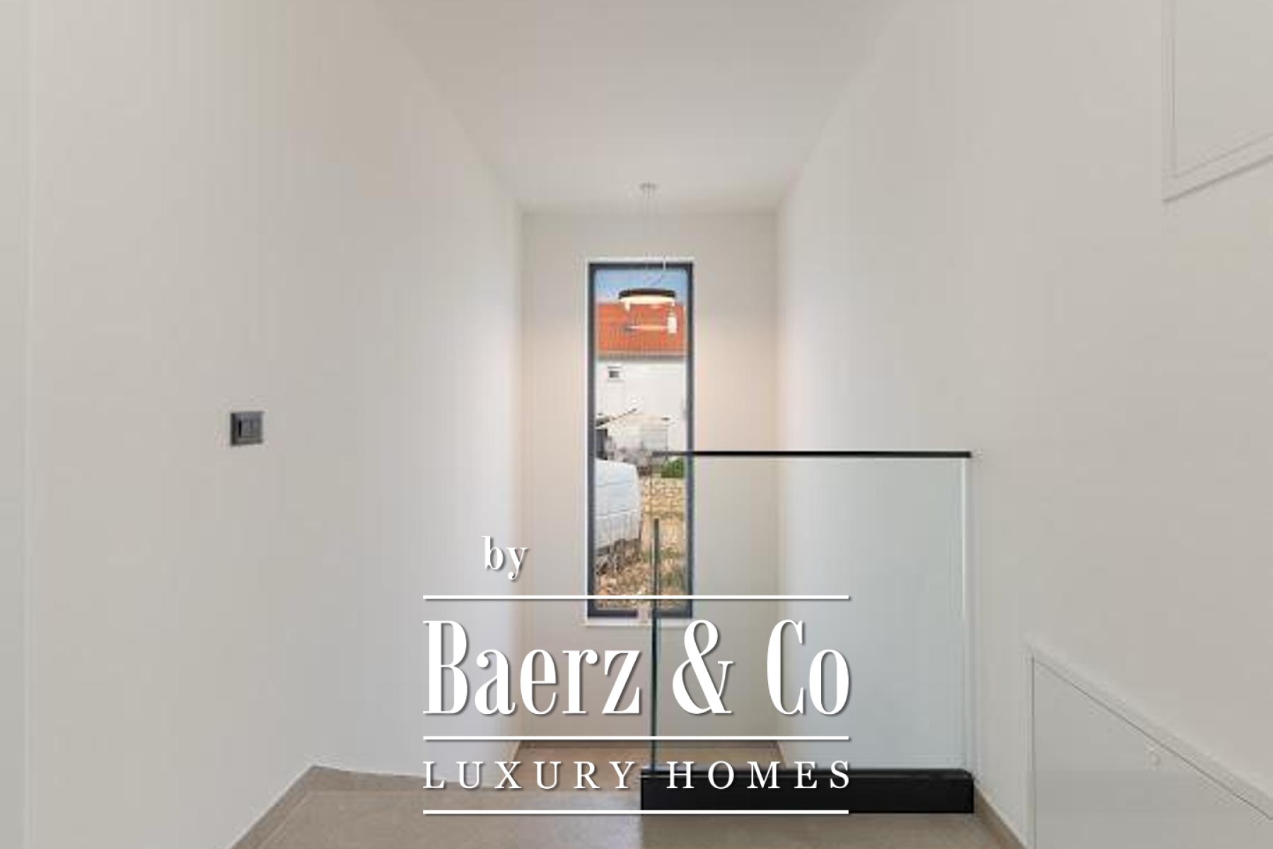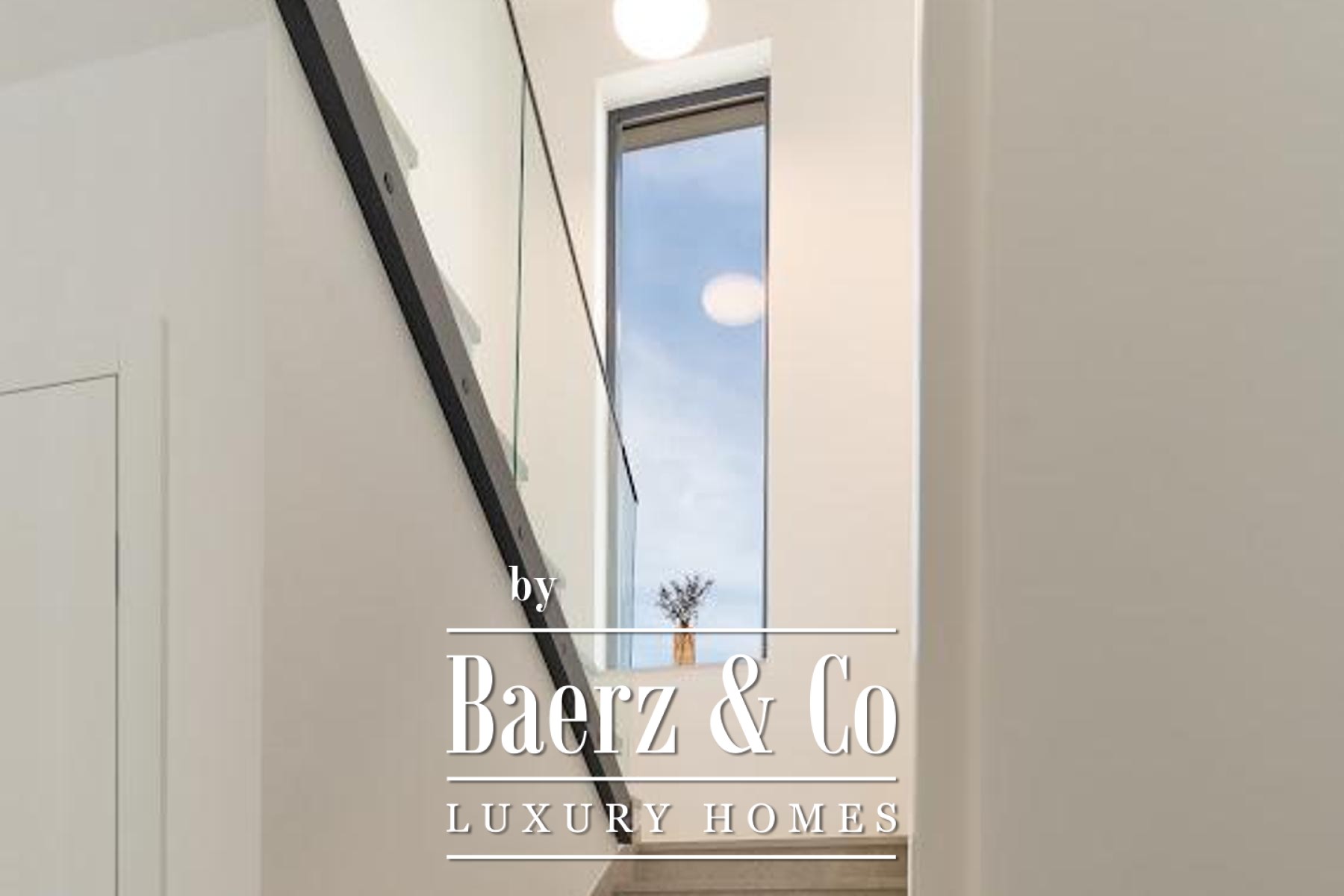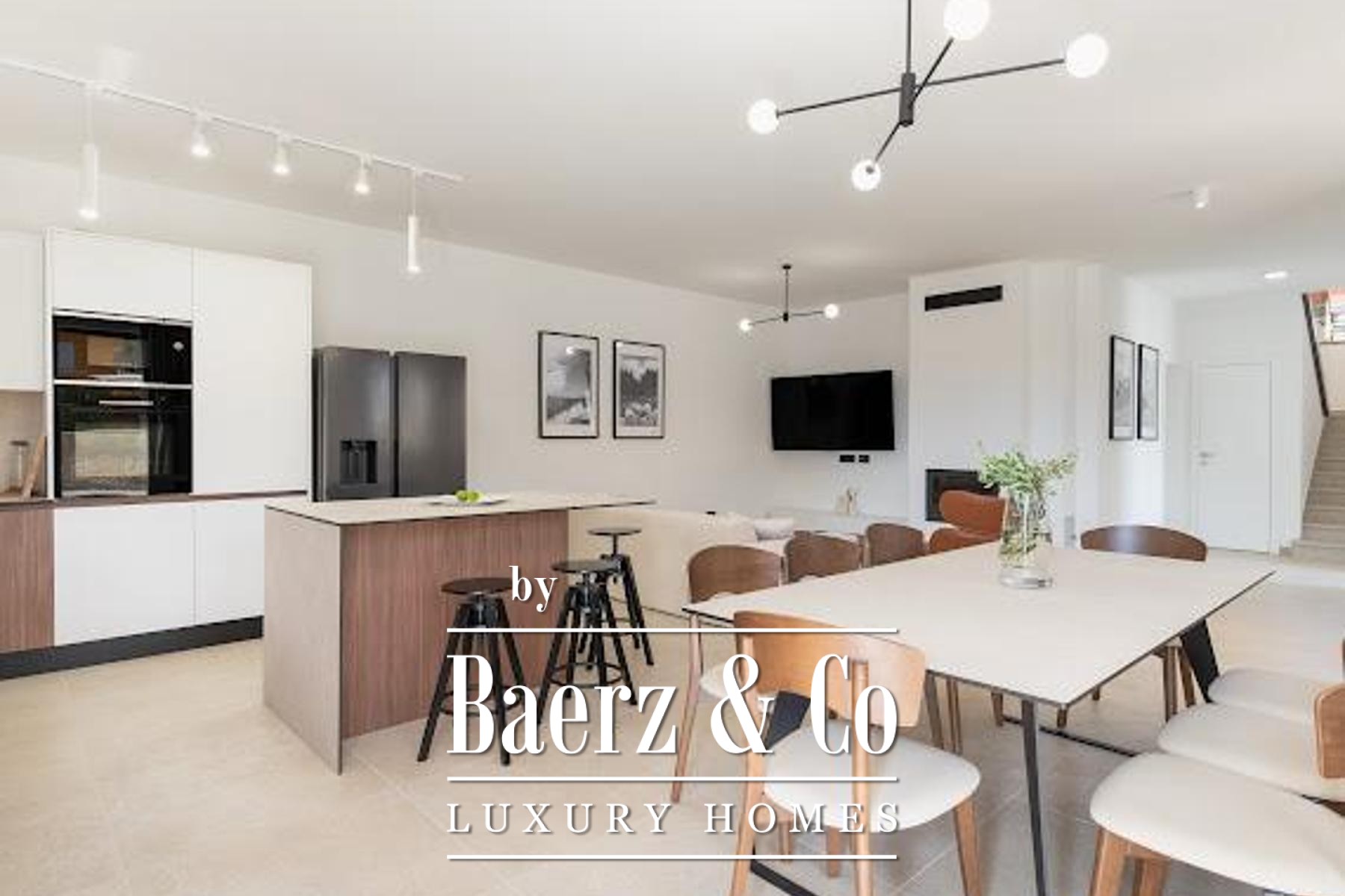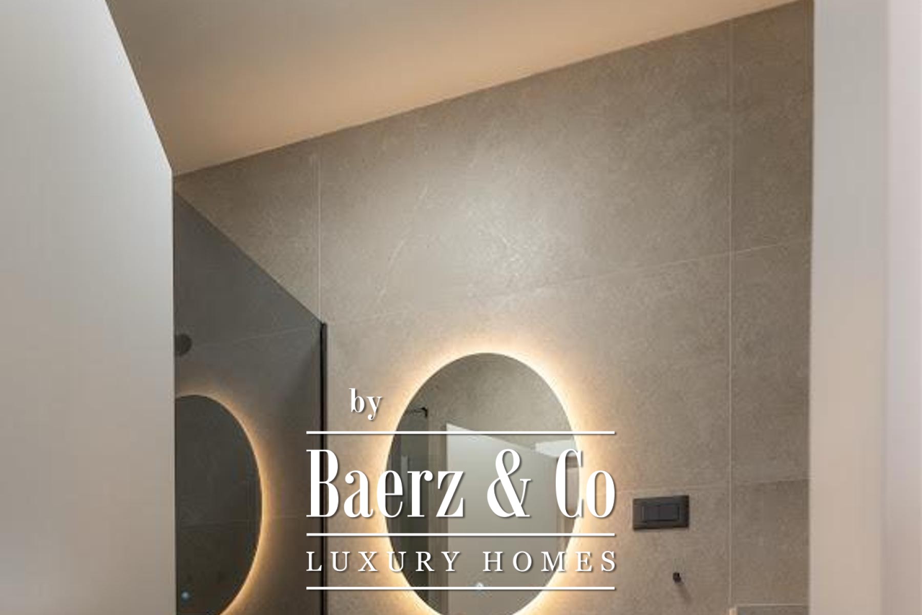 The ground floor’s open-concept kitchen, dining, and living spaces flow seamlessly, complemented by a bedroom with en-suite bath, a guest toilet, laundry, and storage. Ascending the internal stairs, the upper floor reveals an entrance hall, three additional bedrooms each with bathrooms, and a spacious terrace that invites outdoor living.