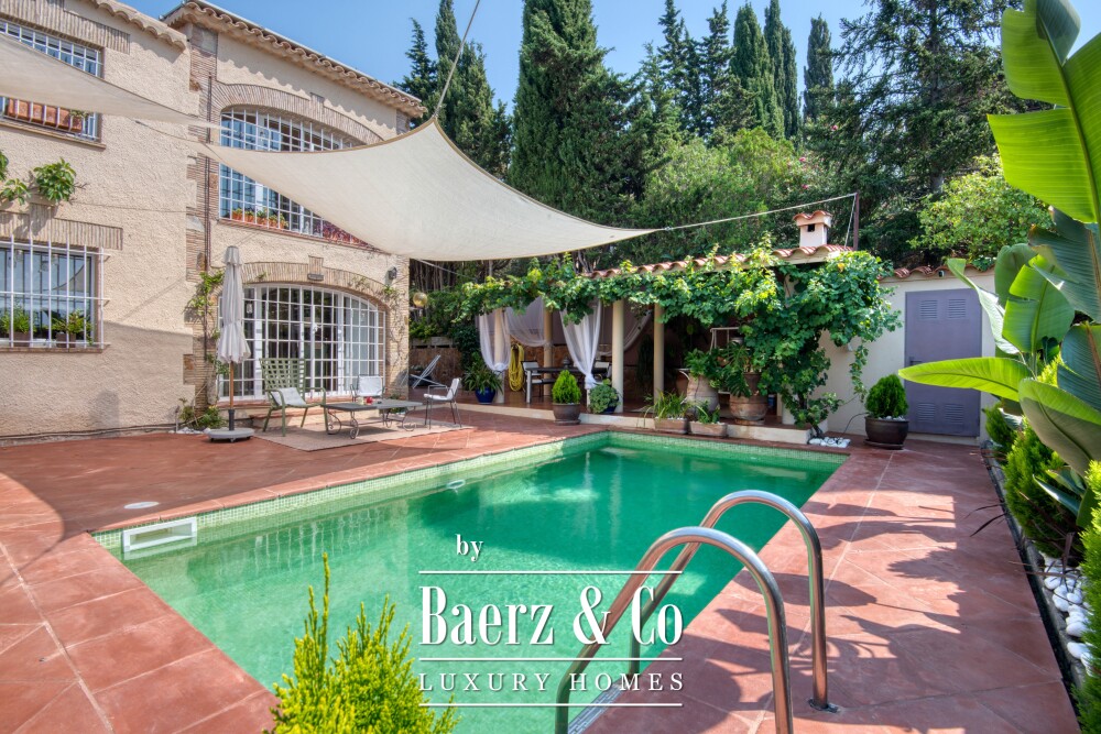 Outdoors, a saltwater pool, shaded porch with a dedicated chill-out zone, and a barbecue area set a tranquil rhythm. The house is well-appointed with a garage, storage rooms, outdoor laundry, natural gas heating, air conditioning, solarpanels, and aerothermal energy, all ensuring comfort year-round. South-facing orientation amplifies the home’s warmth, with terraces, balconies, and a fireplace encouraging connection to sun and sky. This property stands as a rare intersection of traditional appeal and measured contemporary elegance, suited for both primary residence and discreet escapes along the Costa Brava. For those seeking a luxury rustic estate for sale in Platja d’Aro, this residence reflects a distinctive quality of place.