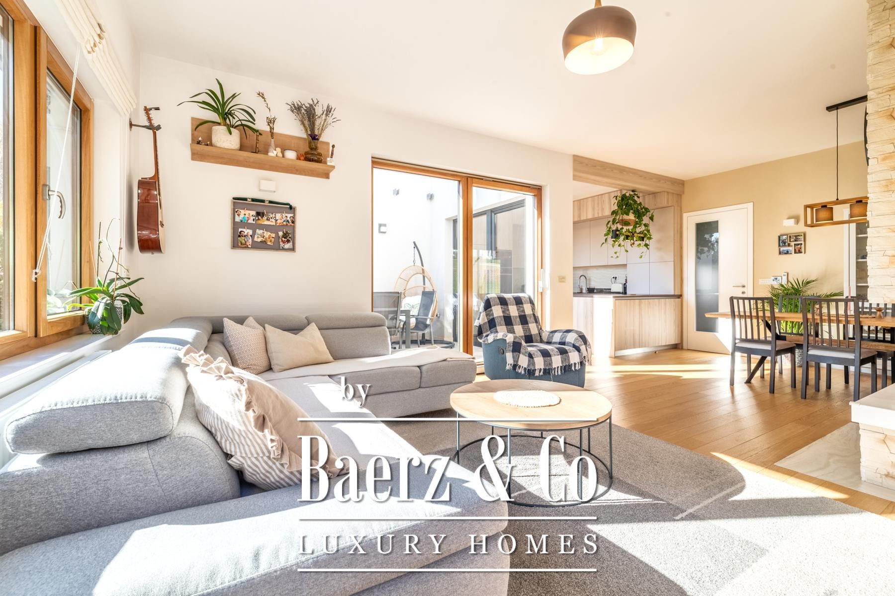 The ground floor opens with an entrance hall, blending seamlessly into a living area bathed in natural light, which transitions elegantly to a 14 m² open terrace and 58 m² private garden. The kitchen and dining area form a gentle social hub, while upstairs provides three bedrooms—one adaptable as an office—and polished bathrooms. The basement offers a discreet storage room, an additional bathroom, and two further bedrooms, allowing privacy for guests or family.