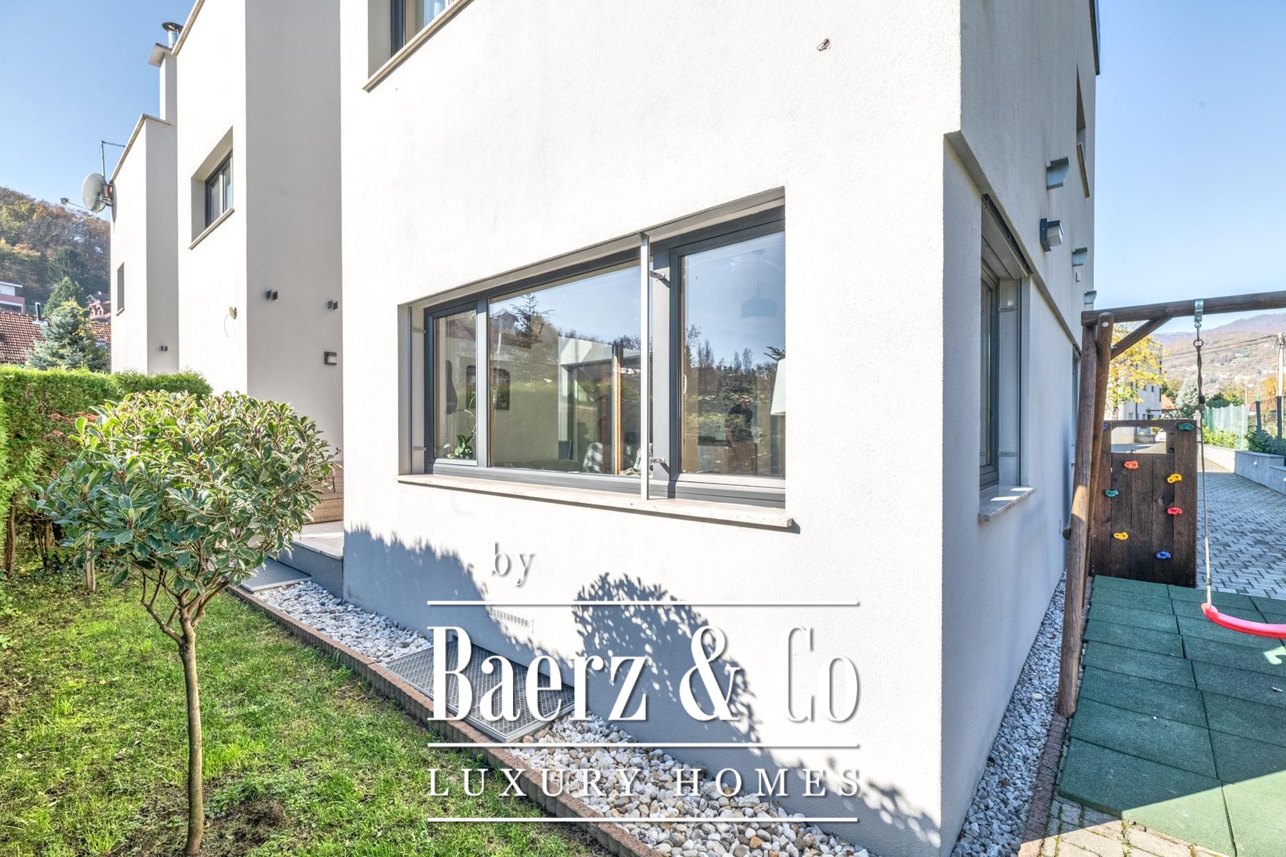 Apartment Podsljeme stands quietly on Graščica Street, extending over 213 m² and unfolding across three levels, including a basement, ground floor, and first floor. This recently built residence, completed in 2011, balances modern architecture with thoughtful spatial design, featuring five bedrooms and five bathrooms. An internal staircase creates a clear rhythm that connects distinct zones for living, working, and resting.