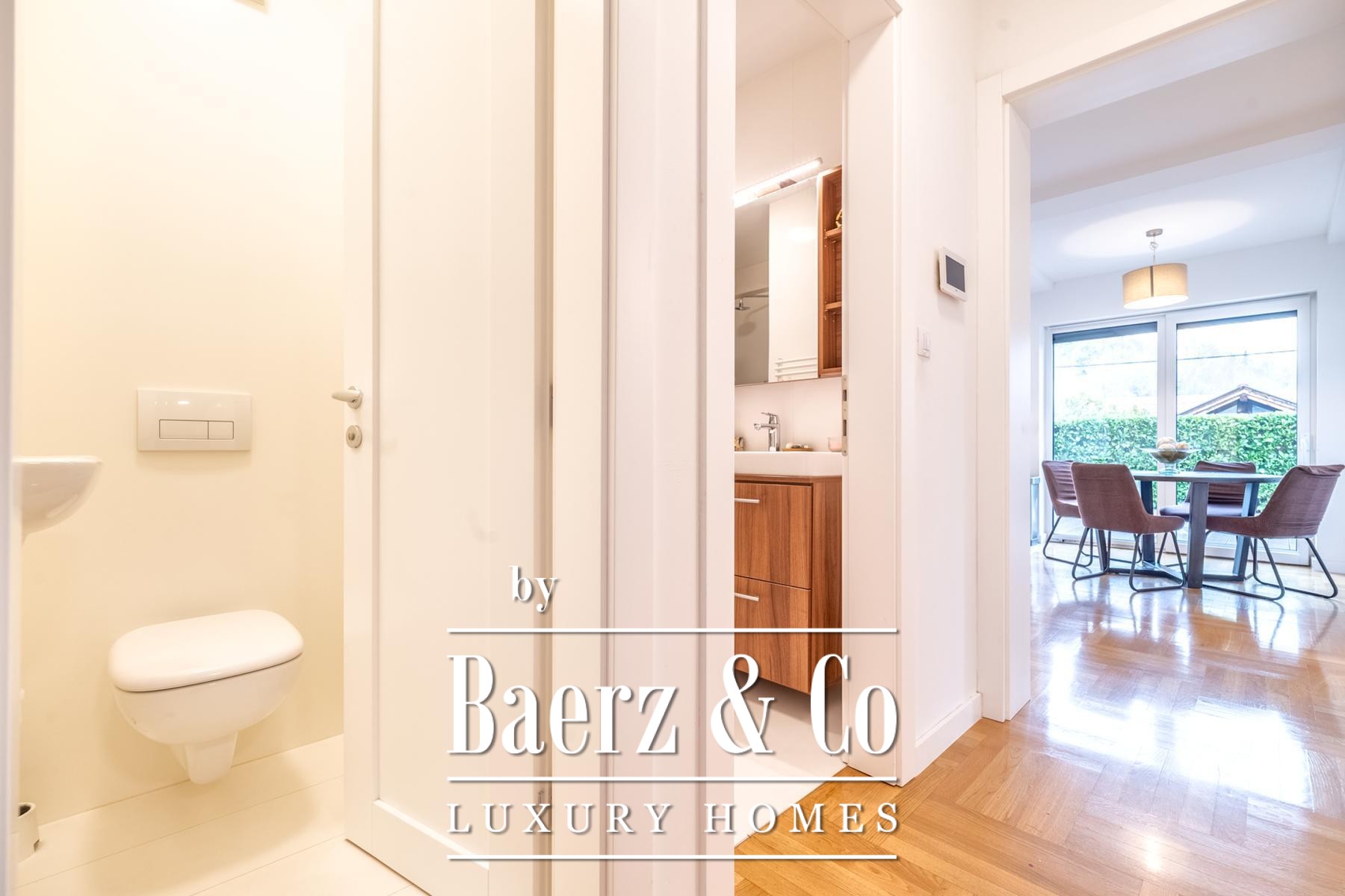First-class materials, including travertine stone and stone-clad bathrooms, are paired with aluminum triple-glazed windows, air conditioning, and integrated security systems. The atmosphere is refined yet welcoming, with thoughtful attention to privacy and natural light. Local amenities such as boutiques, cafes, and renowned dining at Okrugljak are within easy reach. The villa’s position combines tranquil, green surroundings with proximity to urban life, encapsulating the rhythm of contemporary living in Podsljeme.