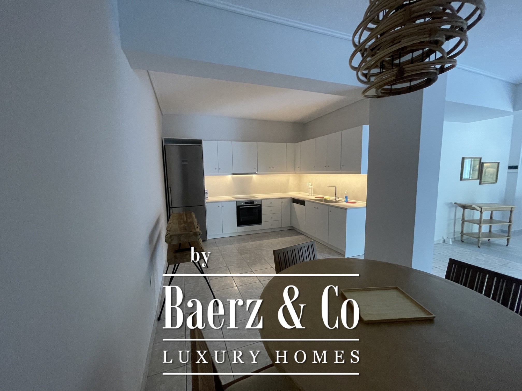 Interiors feature contemporary finishes and an abundance of natural light, with the design prioritizing openness and connection to the outdoors. The main living areas flow seamlessly toward sunlit terraces, a landscaped garden, and a private swimming pool, making everyday life and entertaining effortless. A fully equipped kitchen offers generous space for culinary pursuits, further enhancing the sense of comfort and modern ease.