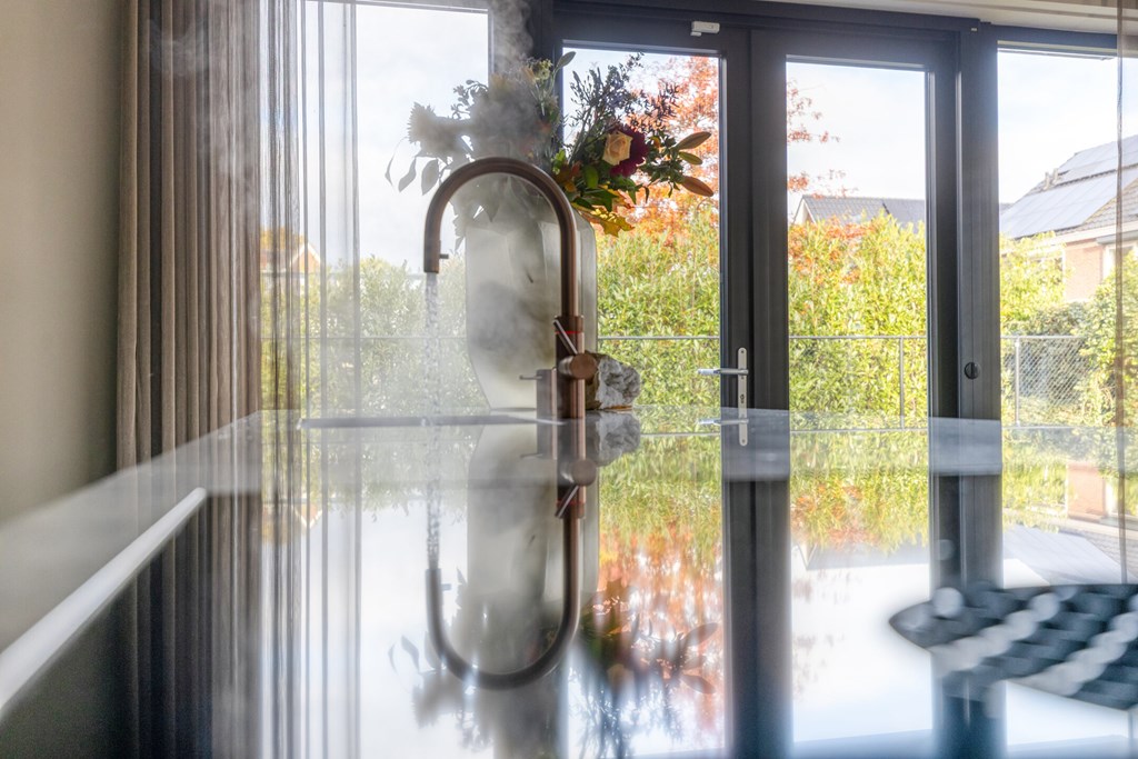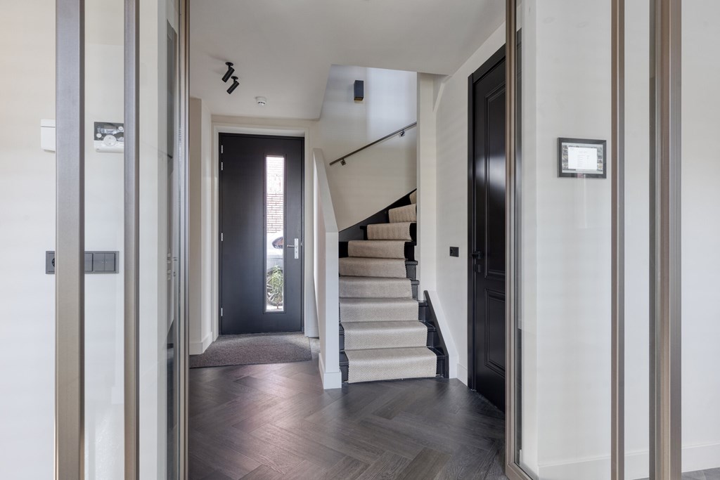 Surrounding the home is a neat, green garden, largely laid out with lawn and partially paved. Thanks to its ideal orientation, you can enjoy the sun all day long; from early morning until the evening sun on the terrace. The garden offers plenty of privacy and space for a lounge or dining area. At the front, there is a driveway with space for two cars and a charging point, while attractive outdoor lighting creates a pleasant atmosphere, even in the evening.