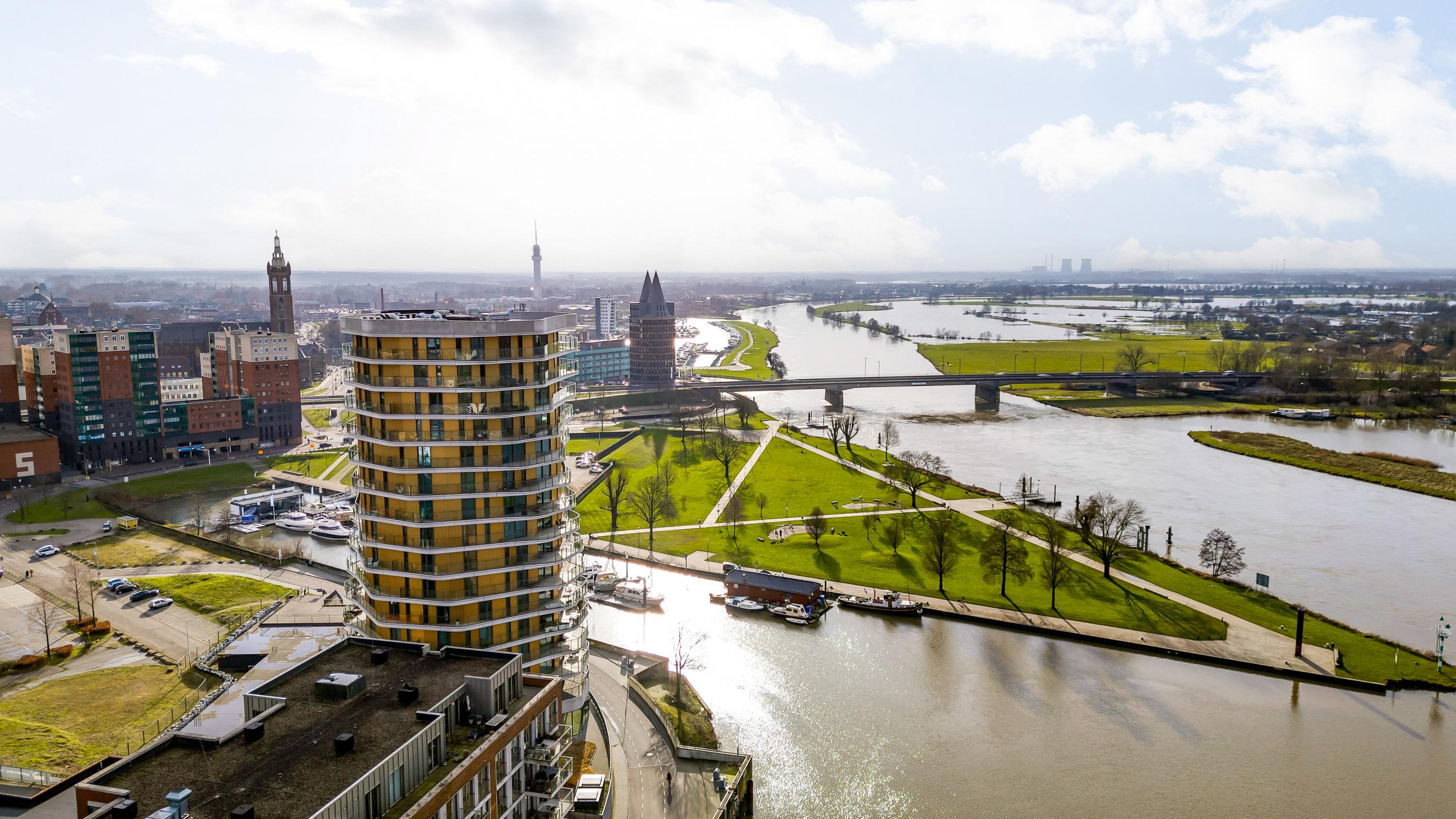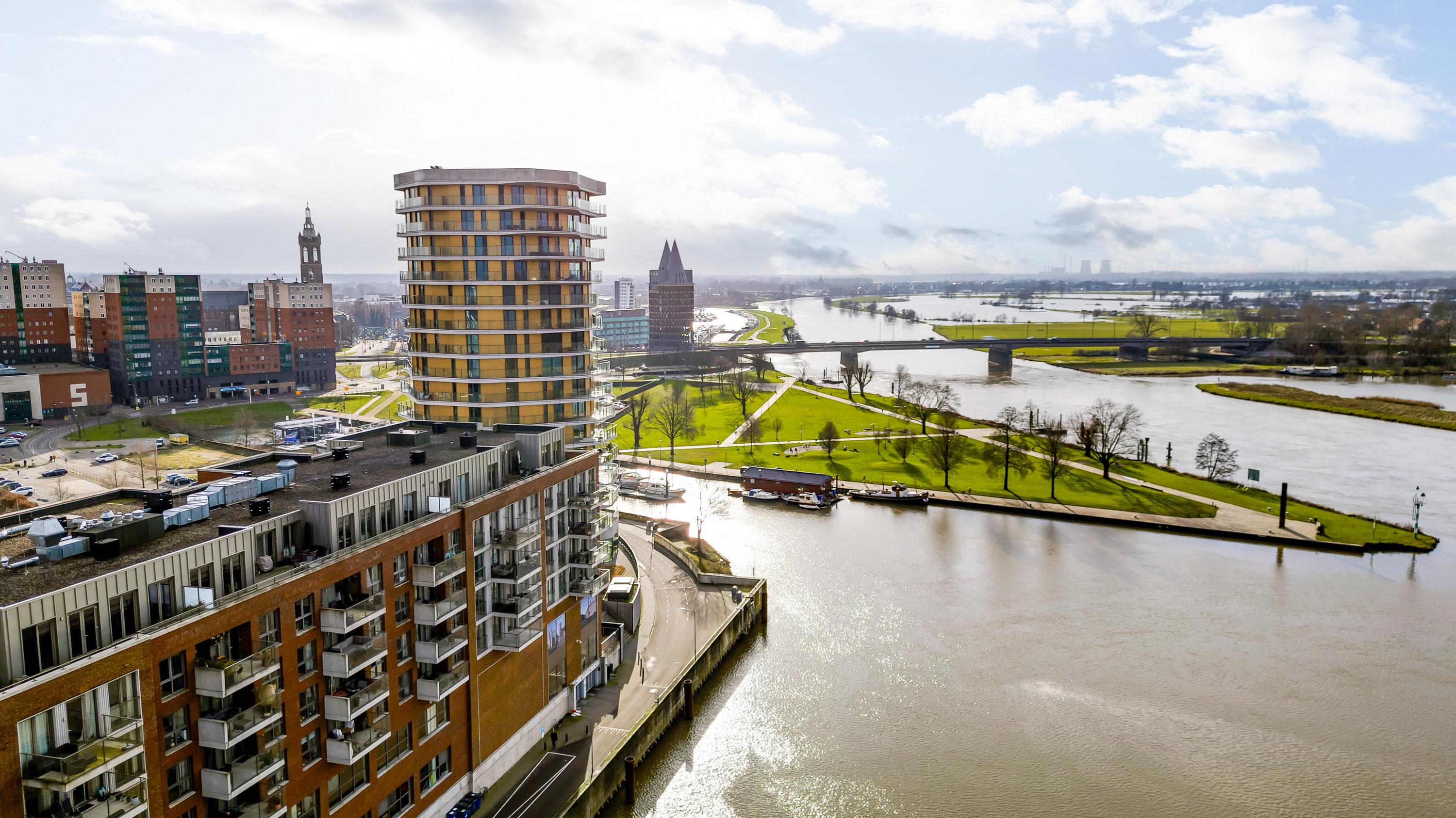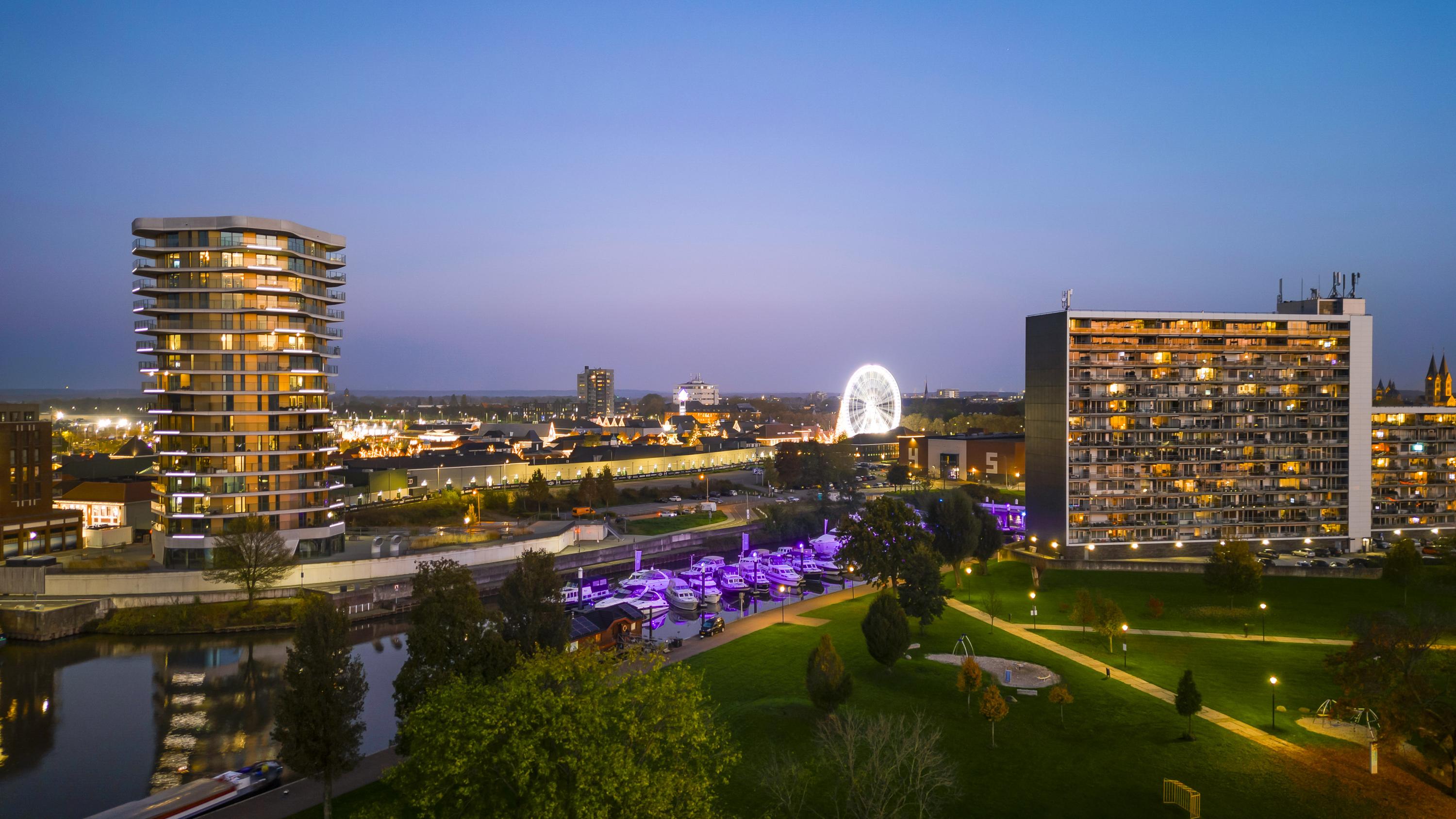 The apartment complex has a perfect location in relation to Roermond's city centre but also the cosy feeling of a ‘free living environment’ with the wide panoramic view over Roermond's Maasplassen.