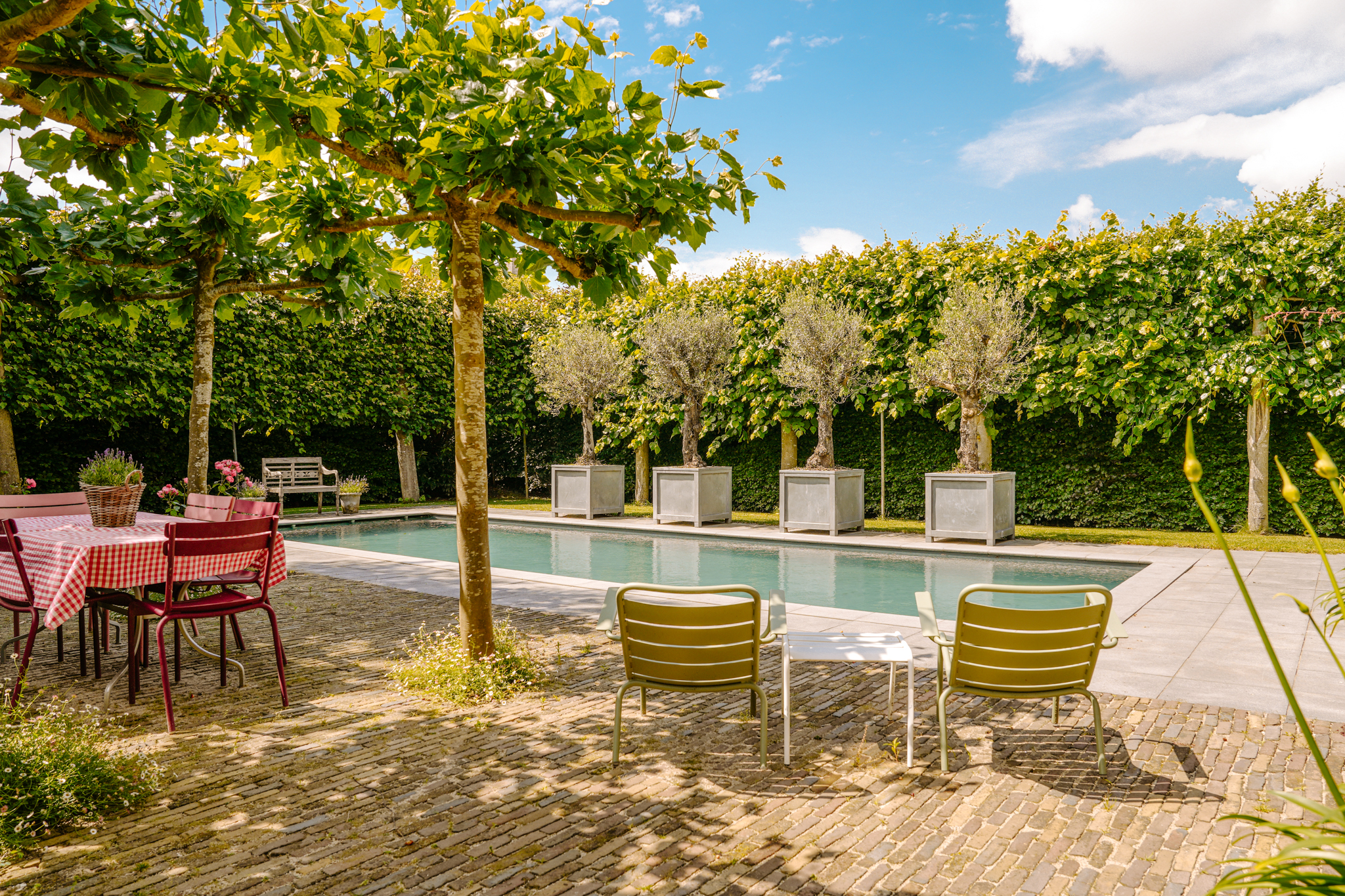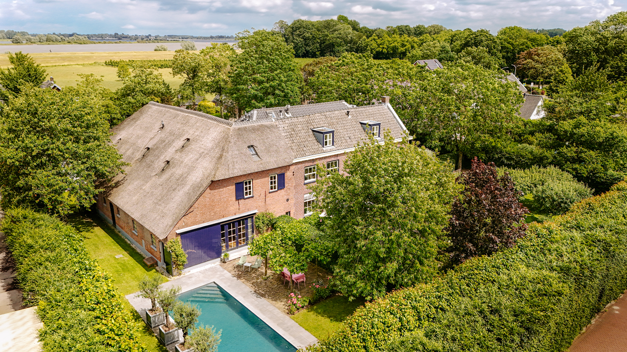 Dating back to 1794, this well-maintained and highly energy-efficient (energy label A+) estate sits on a spacious, hedge-enclosed plot that ensures absolute privacy. With numerous rooms, including a guesthouse and office space, this estate is ideally suited for those seeking to combine living and working in one inspiring setting. The heated swimming pool, nestled in the lush, leafy garden, completes the idyllic lifestyle this home offers.