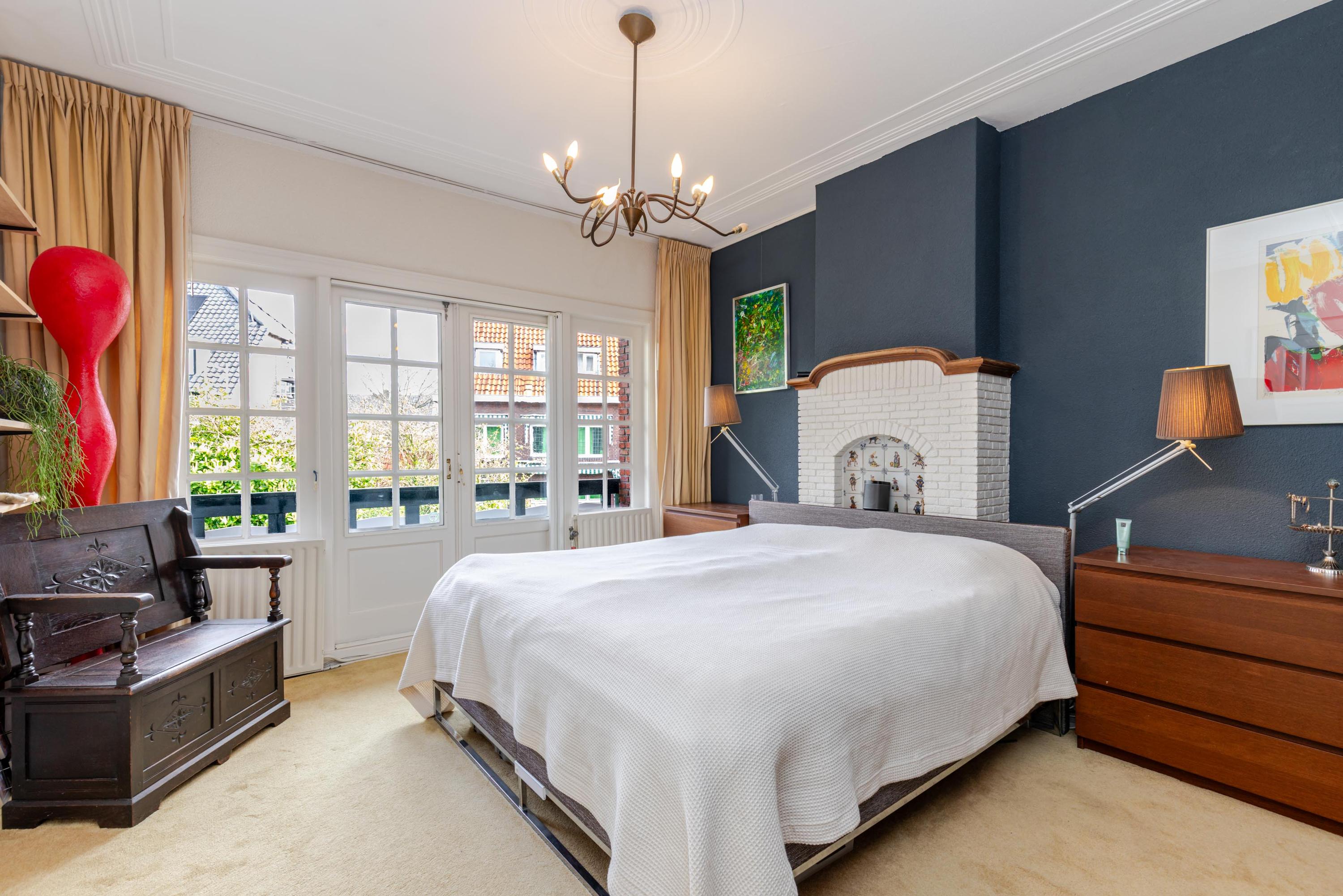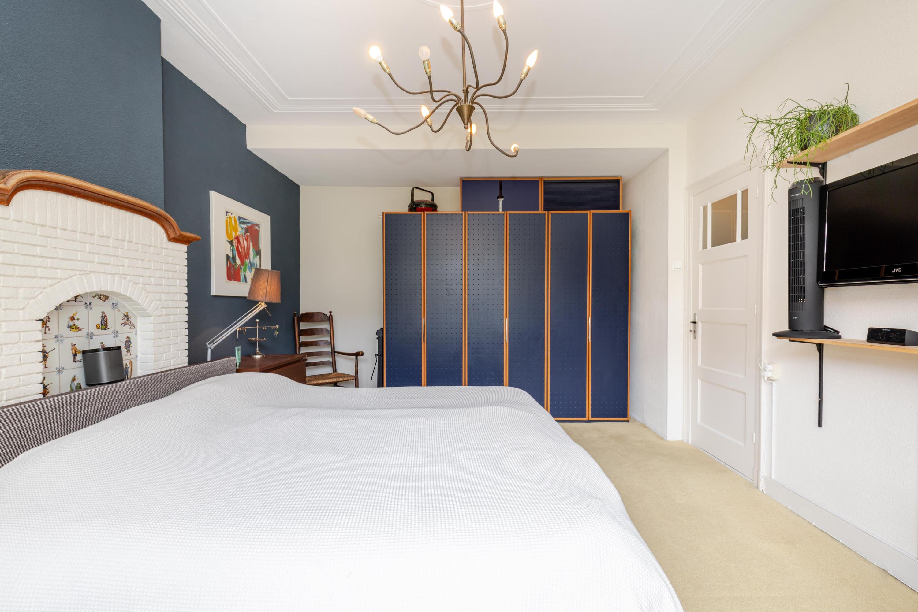 Landing with toilet, spacious master bedroom at the rear featuring French doors to the balcony; this room offers excellent potential for installing a built-in wardrobe, spacious bedroom at the front also featuring French doors to the balcony. This balcony offers beautiful views over the leafy Berglustlaan. At the front, there is another smaller bedroom currently used as a dressing room. At the rear is the bathroom equipped with a bathtub, walk-in shower, and vanity unit with double sink. Second floor: