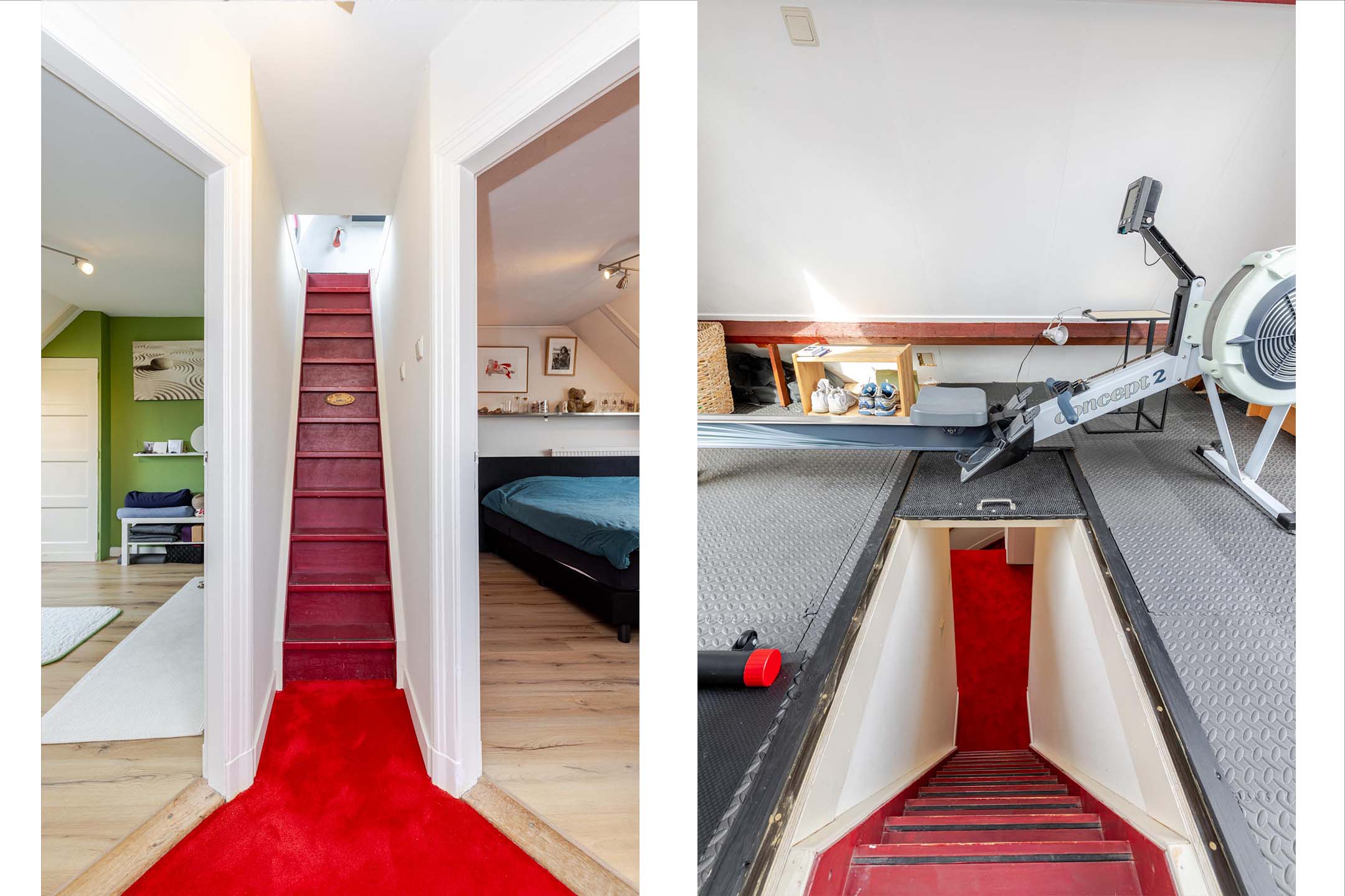 Accessible via a fixed staircase, currently used as a gym with skylights providing plenty of light and ventilation.