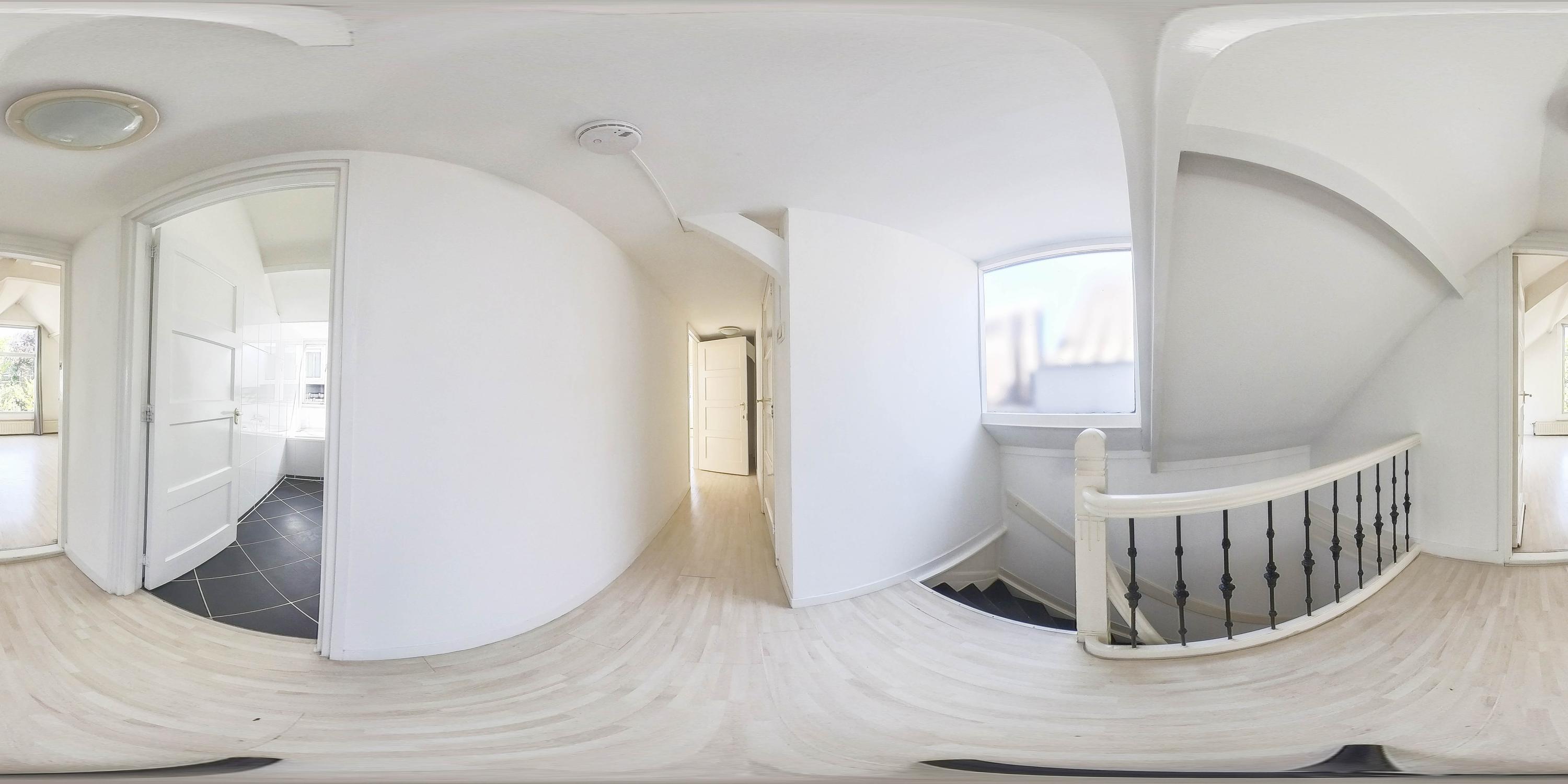 De overloop biedt toegang tot diverse vertrekken. Aan de voorzijde bevindt zich een slaapkamer met ingebouwde kasten en een keukentje. Aan de achterzijde vind je een riante slaapkamer met een brede dakkapel, wastafel en zonnig terras. Op deze etage is er ook een tweede badkamer, voorzien van een ligbad, inloopdouche en wastafel met meubel. Terug in de hal vind je een separaat toilet met wastafel, de opstelling voor de CV-ketels en aansluitingen voor de wasmachine en droger.