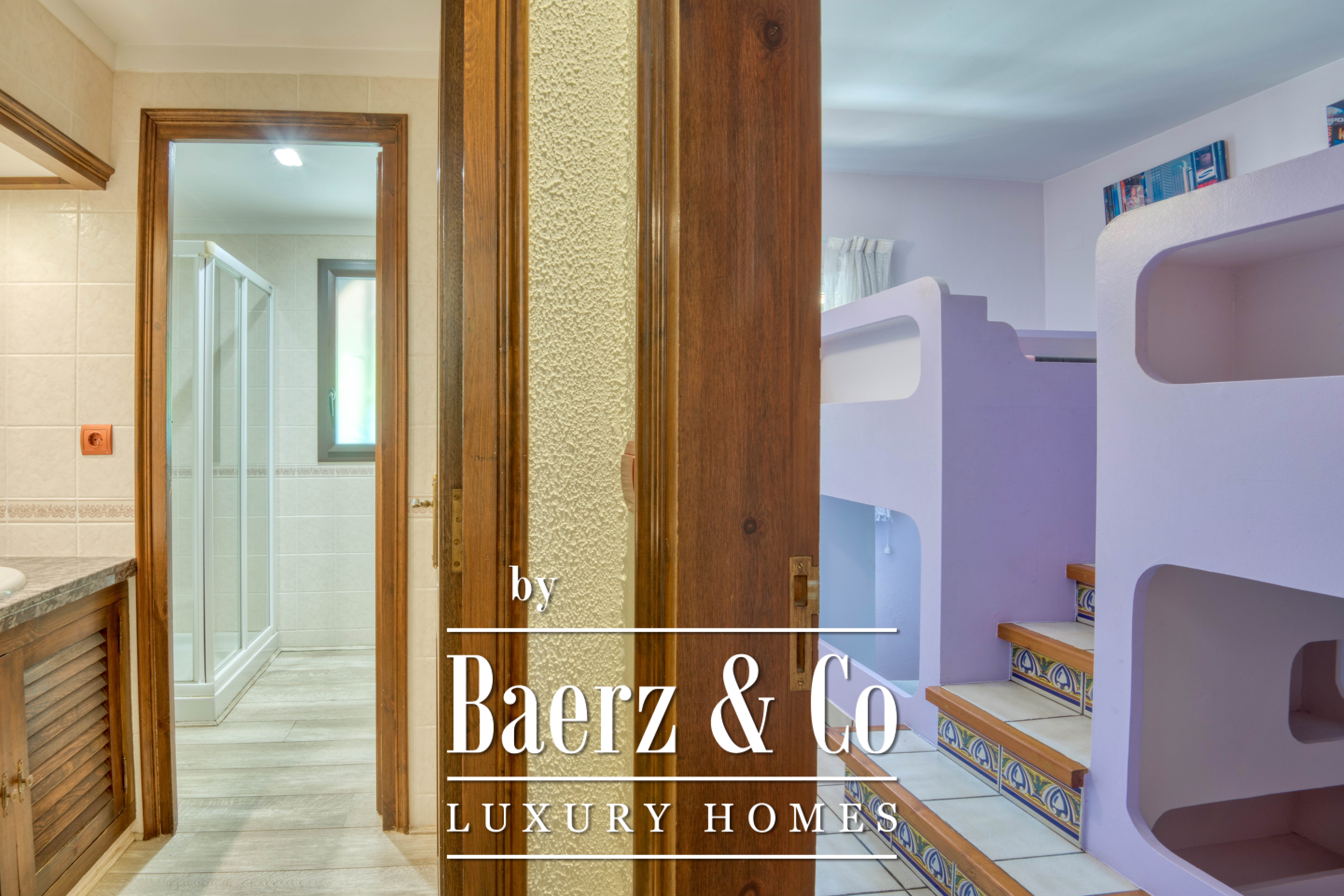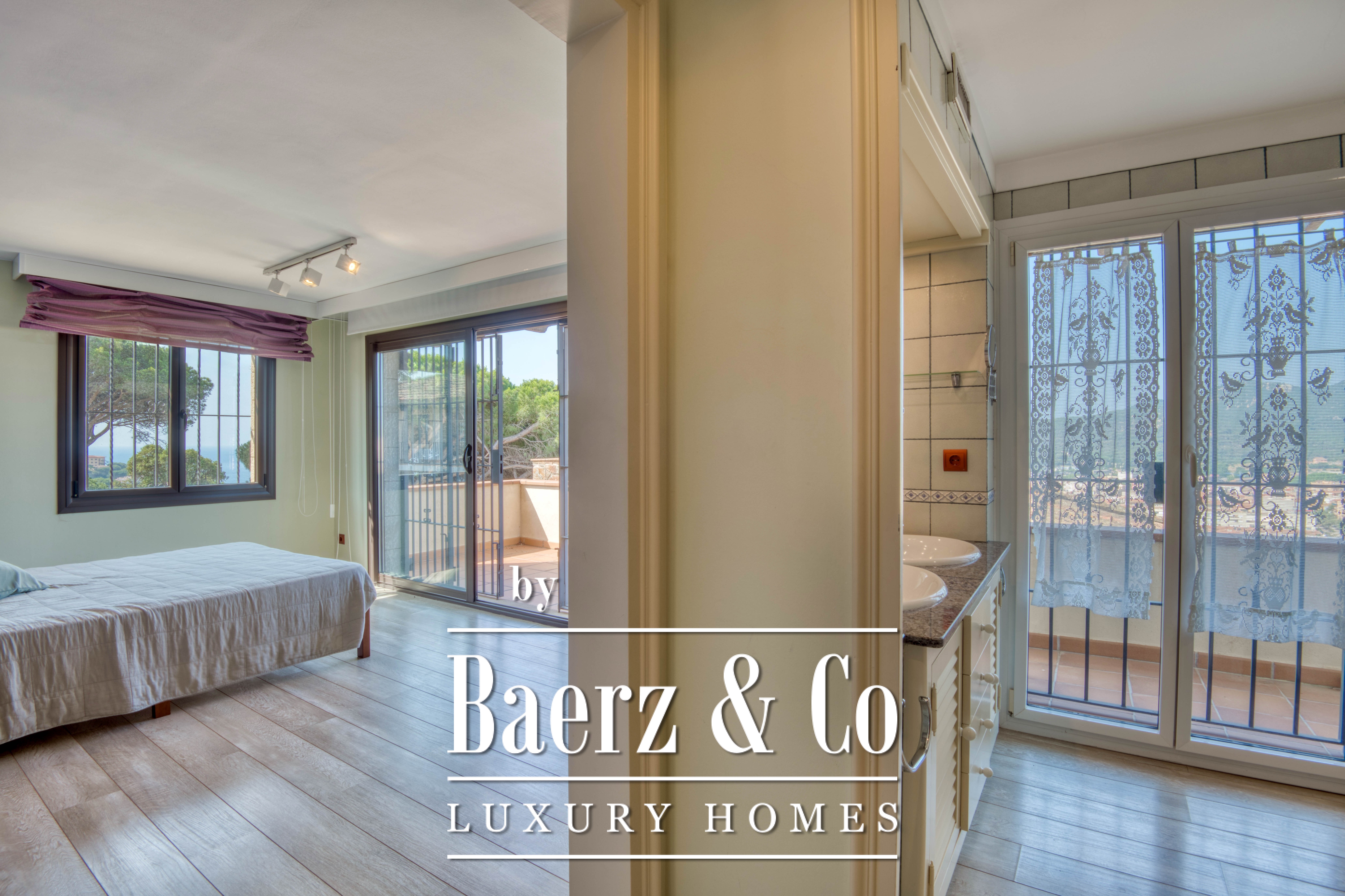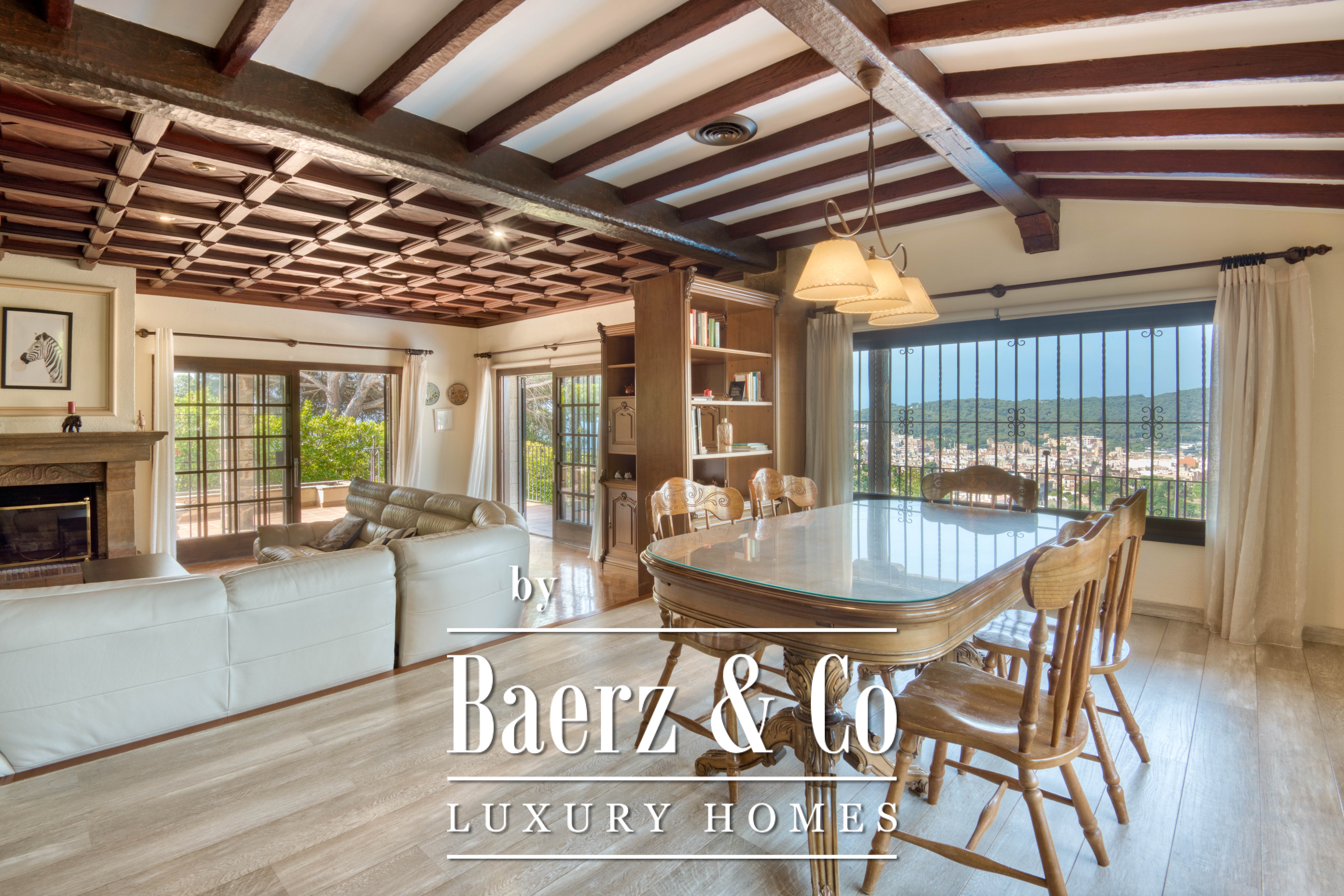 Outdoors, a sizeable pool and private tennis court invite relaxation and activity, sheltered by mature greenery. Endless views reach across the Mediterranean Sea, Sant Feliu Monastery, Sant Elm Mountain, and the Ardenya cornice, shifting with the changing light. Featuring a garage, air conditioning, BBQ area, and games room, this luxury villa for sale in Sant Feliu de Guixols articulates understated luxury and rare authenticity, suited for year-round living or as a treasured retreat.