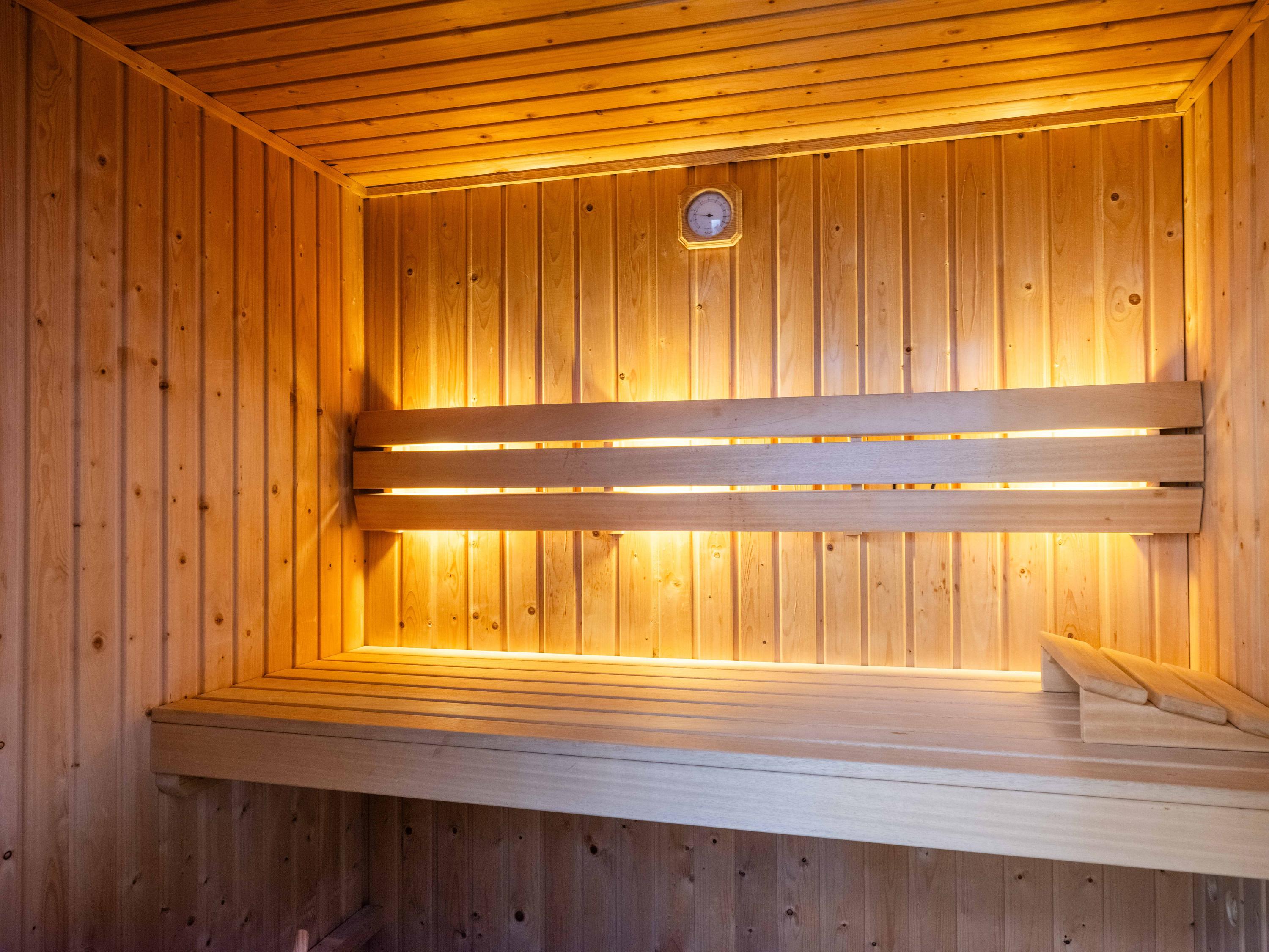De benedenverdieping beschikt over twee slaapkamers, een heerlijke sauna en een badkamer met een ligbad, een douche en een brede wastafel.