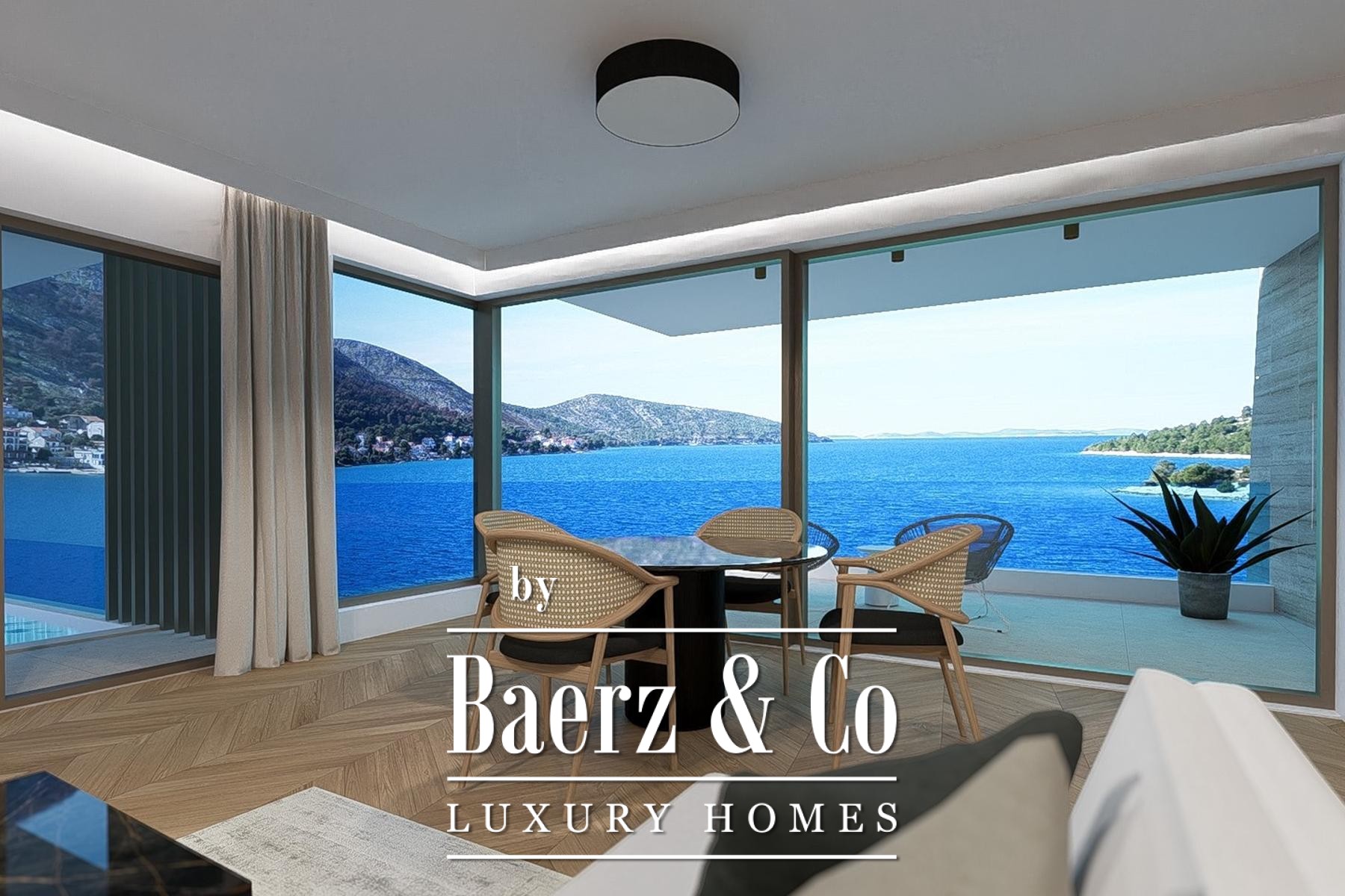 Apartment Šibenik - Okolica offers a distinctive experience of modern coastal living, shaped around 114 m² of considered interior space. This luxury apartment with a pool and sea view is situated in the first row to the sea, only 40 meters from the shoreline, creating an atmosphere where the rhythm of the Adriatic becomes part of daily life. The apartment comprises a luminous living room, a well-appointed kitchen and dining area, three bedrooms including a private suite, and three bathrooms for versatile family or guest accommodation.