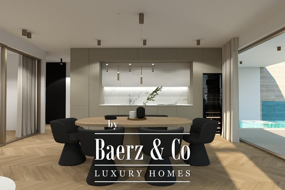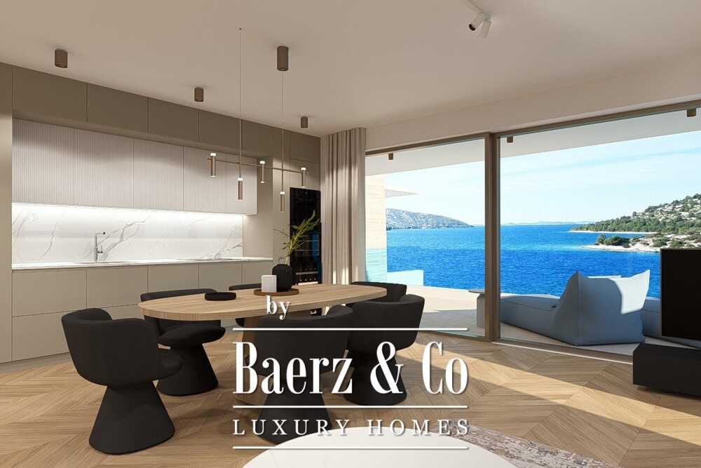 and dining room, three bedrooms, each with a private bathroom, and a spacious terrace with a swimming pool and sea view. Each room has air conditioning, and the apartment also has underfloor heating.The building is located just 40 meters from the sea. It is a luxury project consisting of two buildings, with a total of 9 apartments, where each apartment has a private pool.We are at your disposal for all other information.