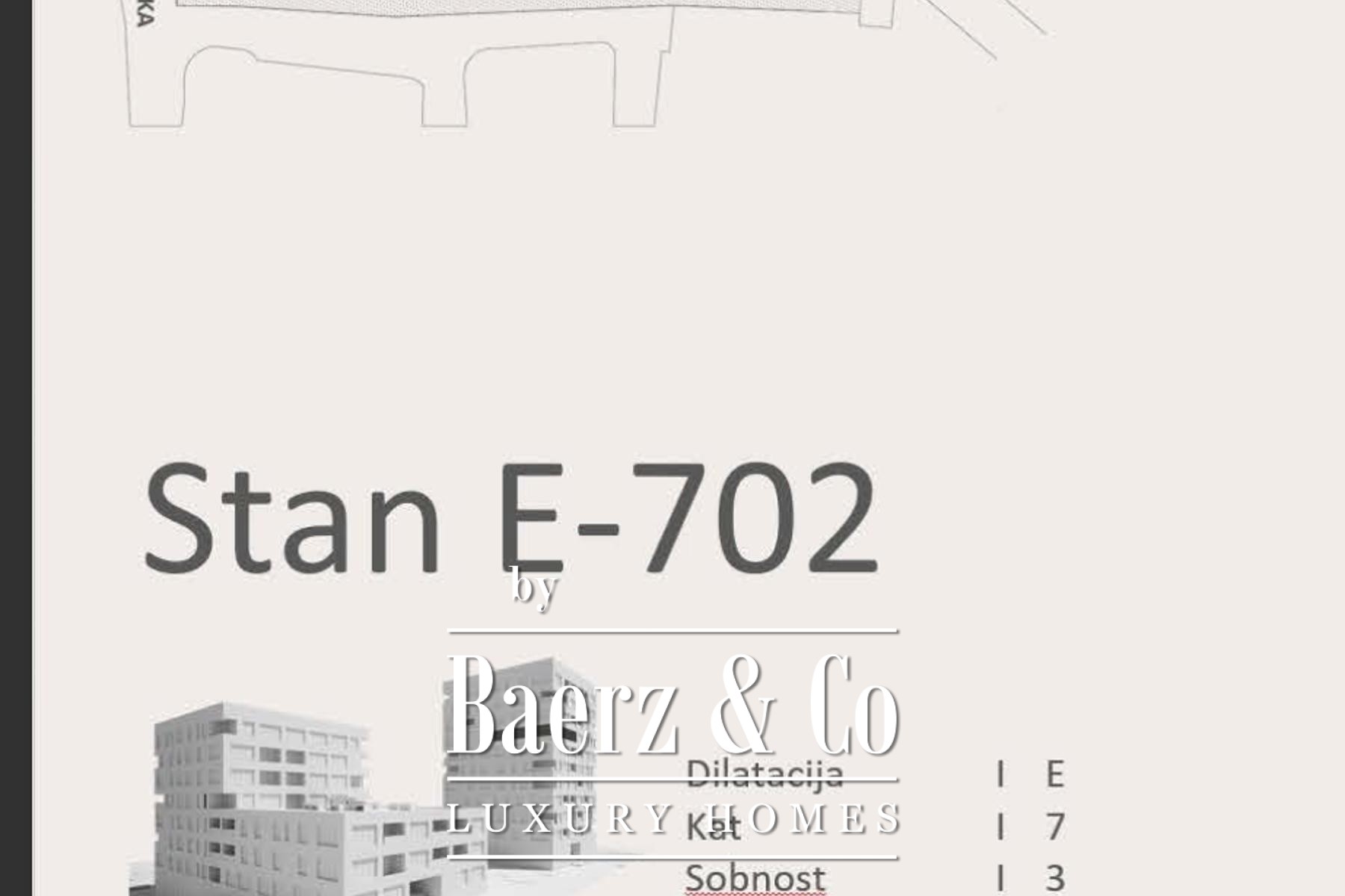Apartment Split finds rare expression in this modern seventh-floor residence within the acclaimed Lora 68° development. Spanning 107.91 m², every detail is attuned to comfort and understated sophistication, from premium parquet to top-tier ceramic finishes. The open-plan living flows through high-ceilinged interiors, anchored by large glass walls that frame the city and provide direct access to a spacious loggia.