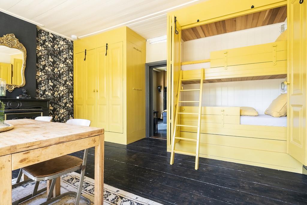 De Pronkkamer – Radiates grandeur with a yellow theme, featuring high ceilings, classic décor, a living room, a separate bedroom and a box bed. Suitable for two adults and two children.
