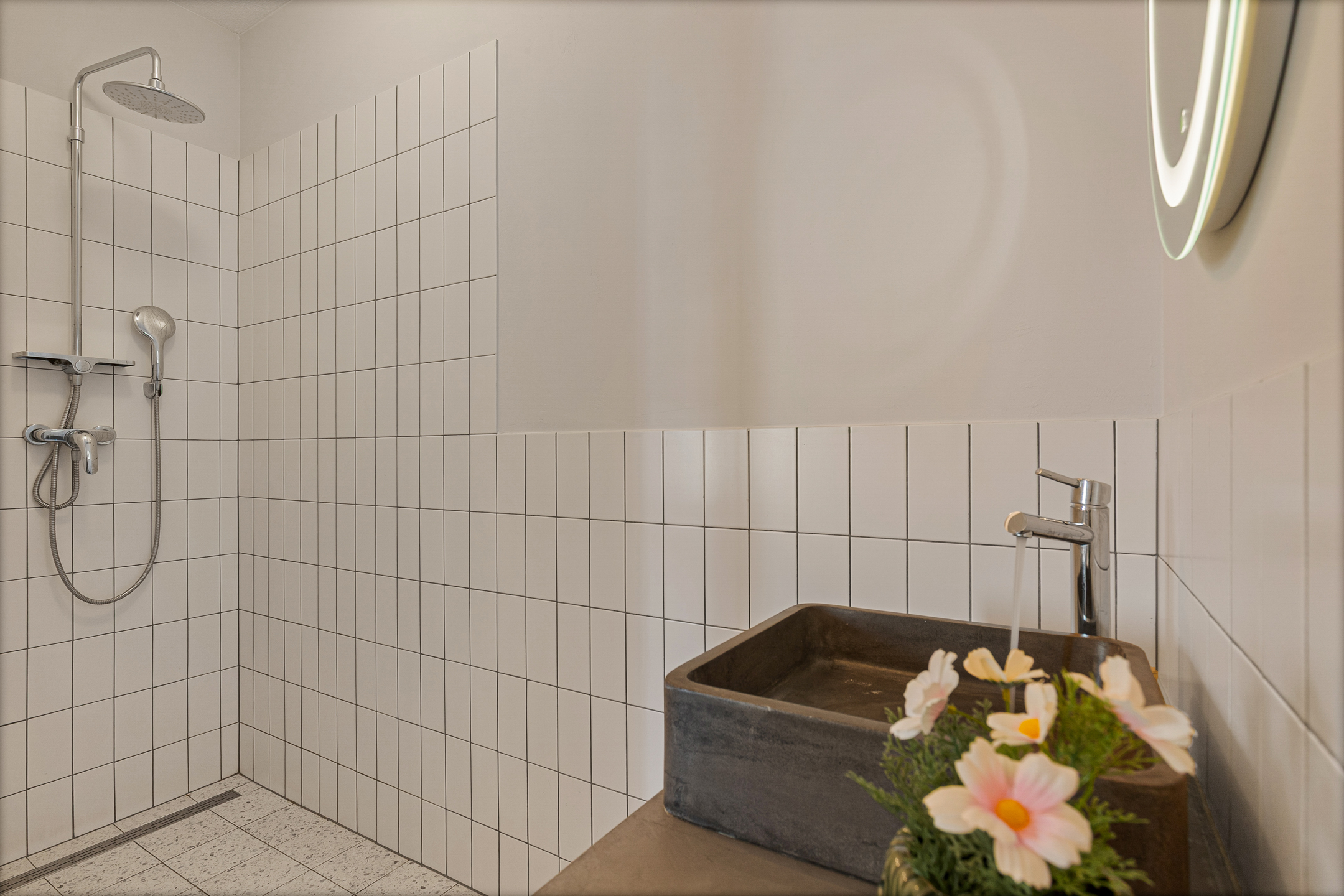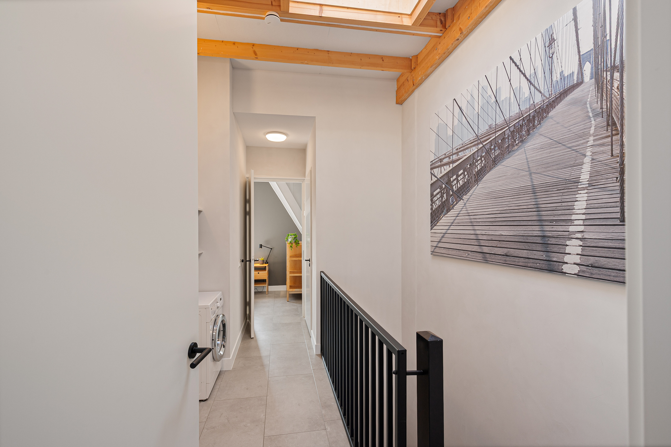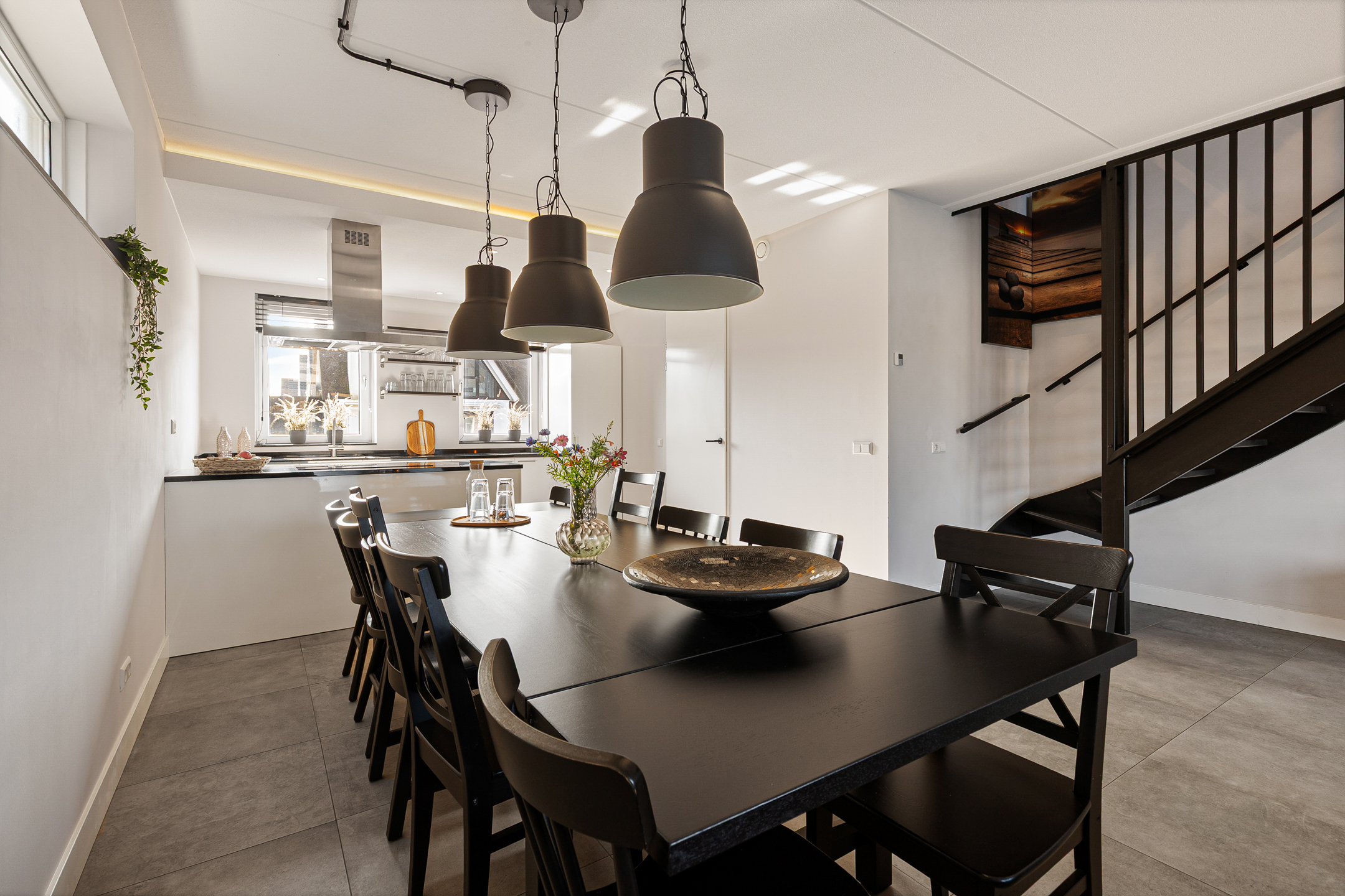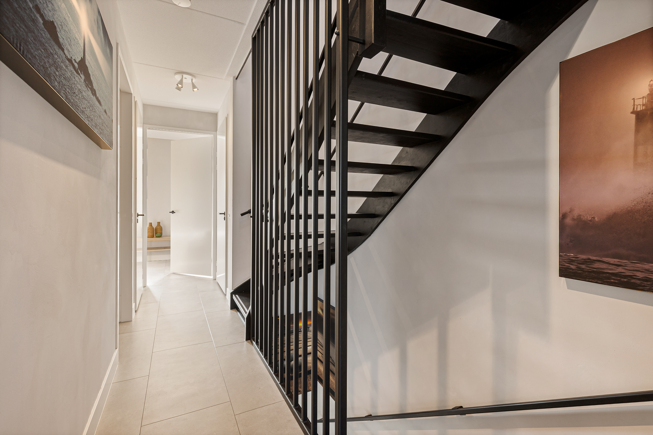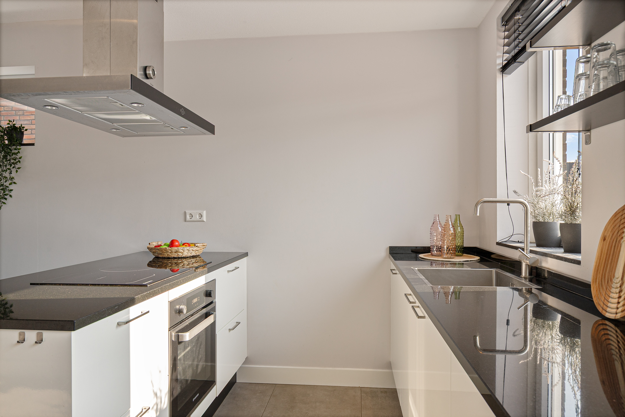 De gehele begane grond is voorzien van een stijlvolle tegelvloer met comfortabele vloerverwarming.
