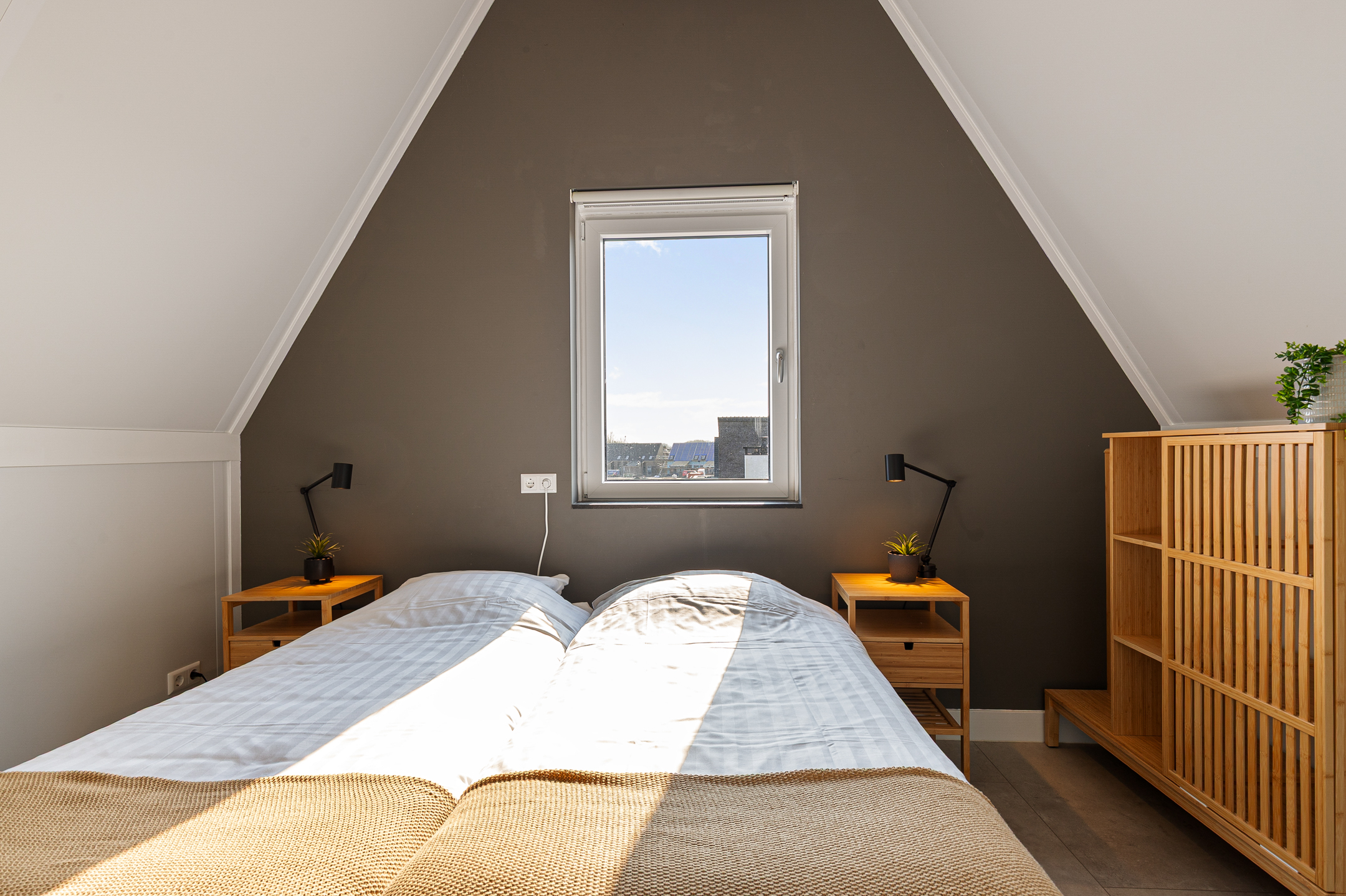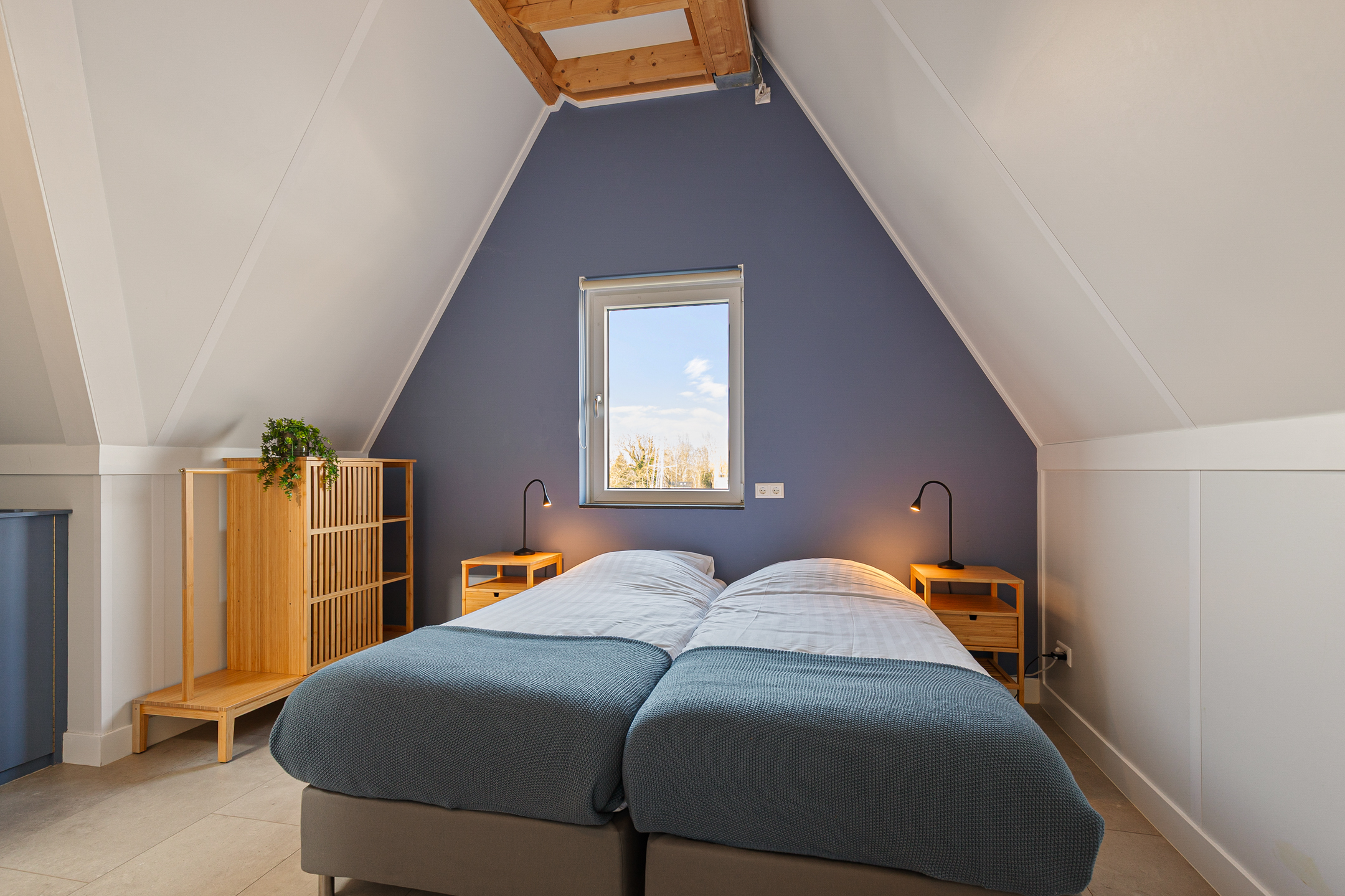 Via een vaste trap bereikt u de tweede verdieping met de vierde en vijfde royale slaapkamers, eveneens voorzien van eigen badkamers. De hoge plafonds met stoere balken in het zicht geven de kamers een ruimtelijk loft gevoel. Vanaf deze verdieping heeft u een bijzonder uitzicht over de omgeving en bij helder weer is zelfs de overkant van het IJsselmeer te zien. Ook hier zijn de kamers individueel qua temperatuur in te regelen. Op de overloop is een derde toilet, ruimte voor de witgoedopstelling en een toegang naar de technische ruimte.