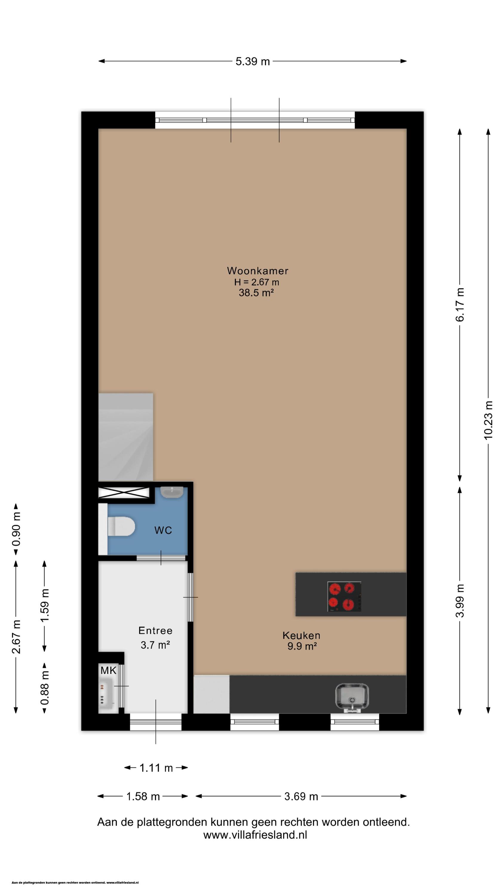De vermelde oppervlakten zijn gemeten conform de NEN 2580-meetinstructie, waarbij afwijkingen niet zijn uit te sluiten. Deze aanbieding is geheel vrijblijvend en bedoeld als uitnodiging tot het uitbrengen van een bod. Voor objecten ouder dan 25 jaar worden standaard een ouderdoms- en indien van toepassing asbestclausule opgenomen in de koopakte.