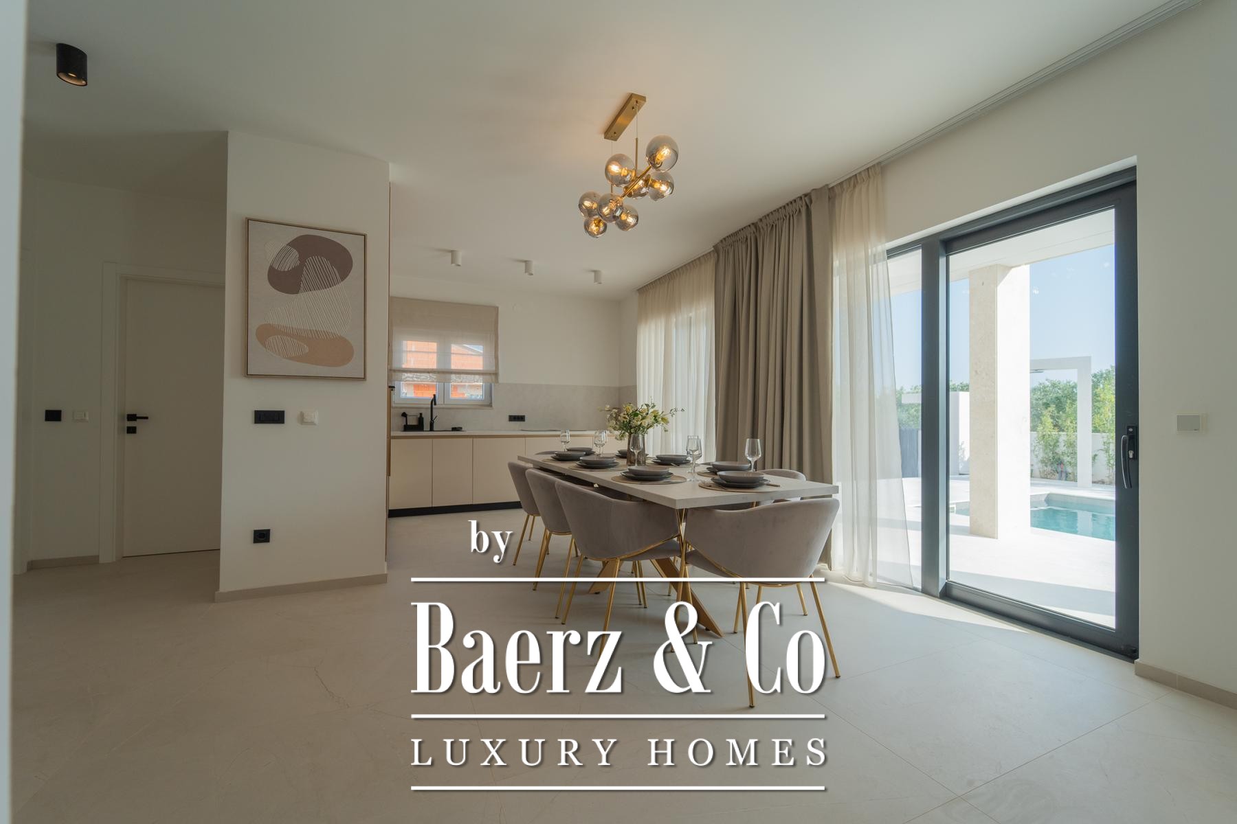 House Sveti Filip I Jakov presents a contemporary coastal residence of 166 m², set moments from the Adriatic, in a location that captures sweeping sea views from every bedroom. This house Sveti Filip I Jakov draws from understated architectural principles, with an open ground floor layout blending kitchen, dining and living room for a seamless flow of space. A ground floor bedroom, guest bathroom and separate toilet offer versatility and privacy.