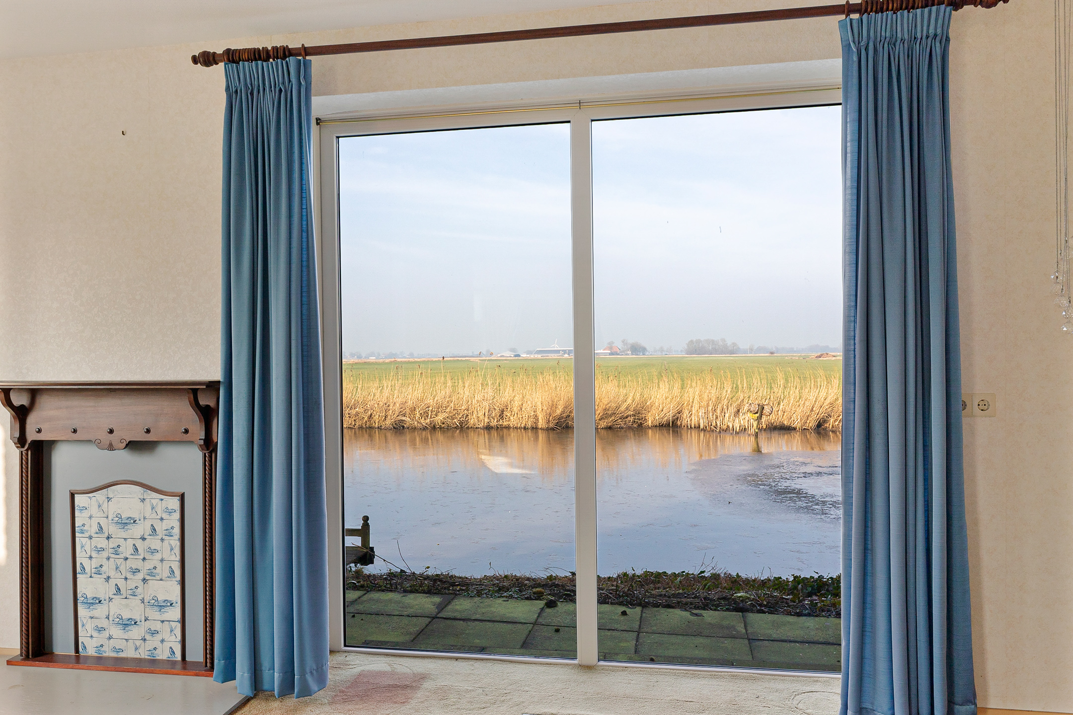 Thanks to its corner position with (private) water on all sides, the garden is completely free and offers optimal privacy. The rear garden features a small pond, a garden shed and along the bank several (older) jetties for mooring boats. Here you can enjoy the pure Frisian outdoor life from early morning until late evening. The navigable water is suitable for leisure boating and is directly connected to the Aldfeart towards Sneek, the Zwette towards Leeuwarden (Eleven Cities route) and the Bangafeart towards the Sneekermeer and Terherne.