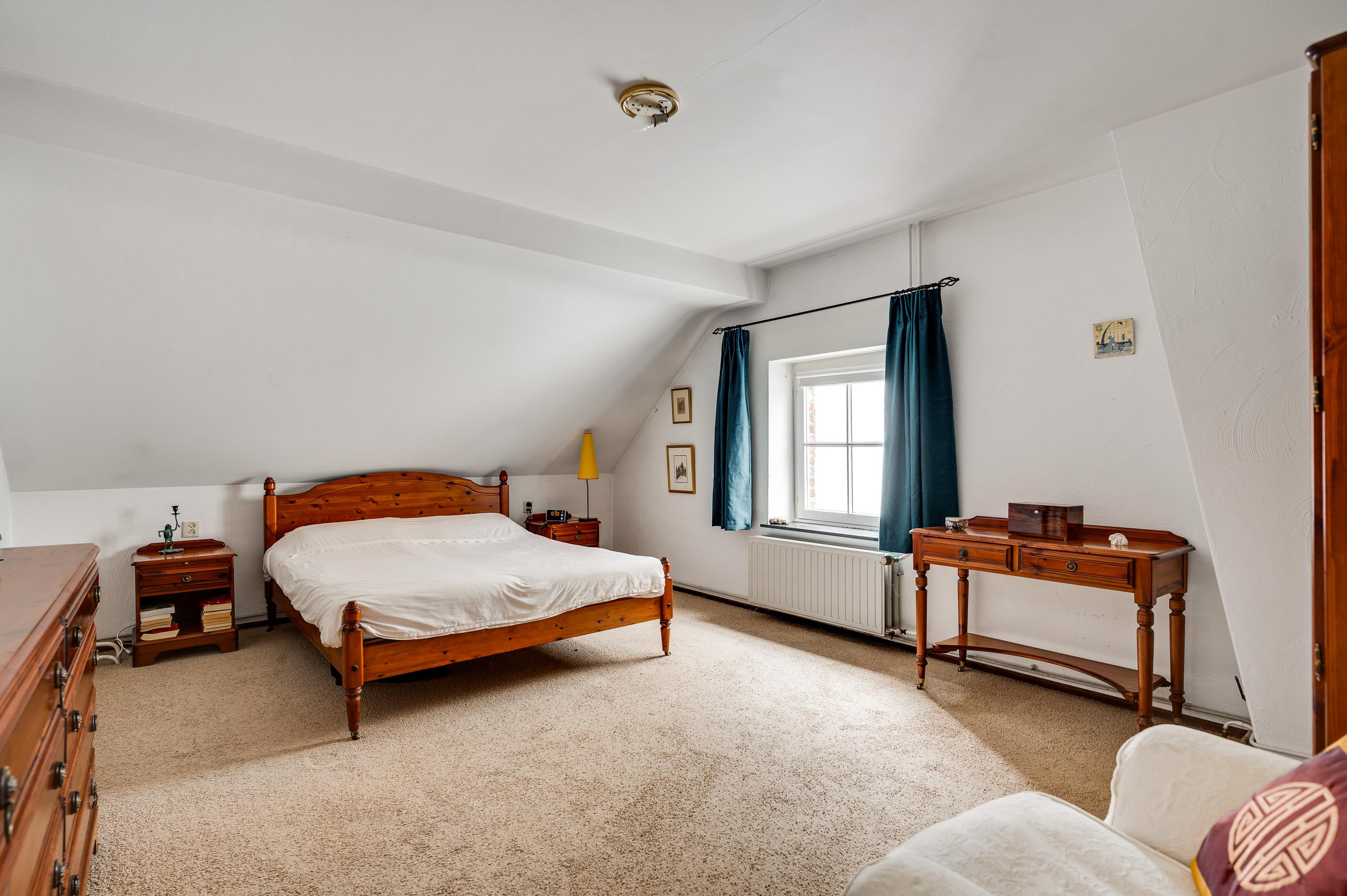 The spacious hall with a fireplace and meter cupboard provides access to the toilet, a bedroom with a separate bathroom, and the kitchen. The stairs to the first floor are also accessible from the hall. The hall also served as the B&B's former living room. This space can be used for various purposes.