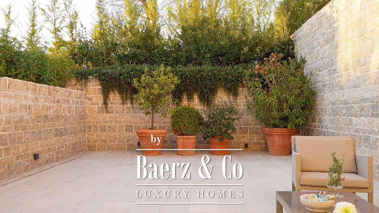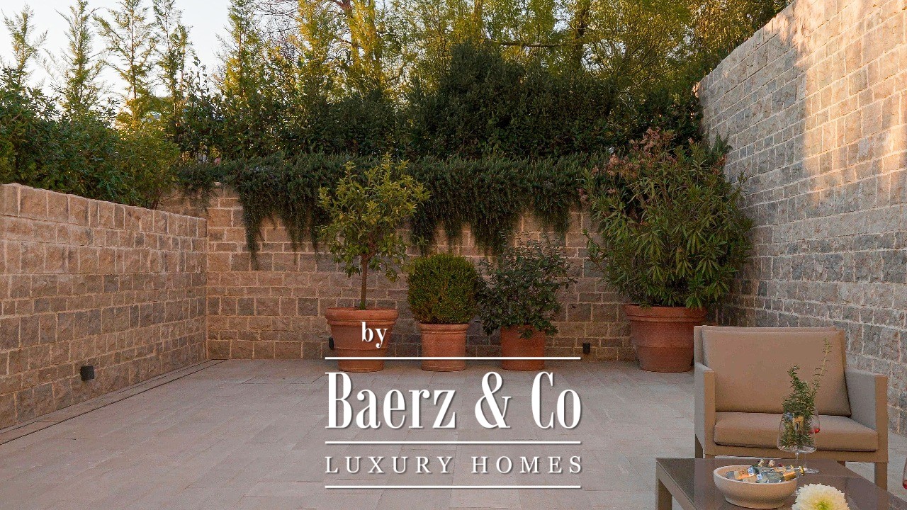 The townhouse has 4 levels. It has a pool that is on the top of the house. The house has a garage spot. It is connected by an asphalt road to the main road.