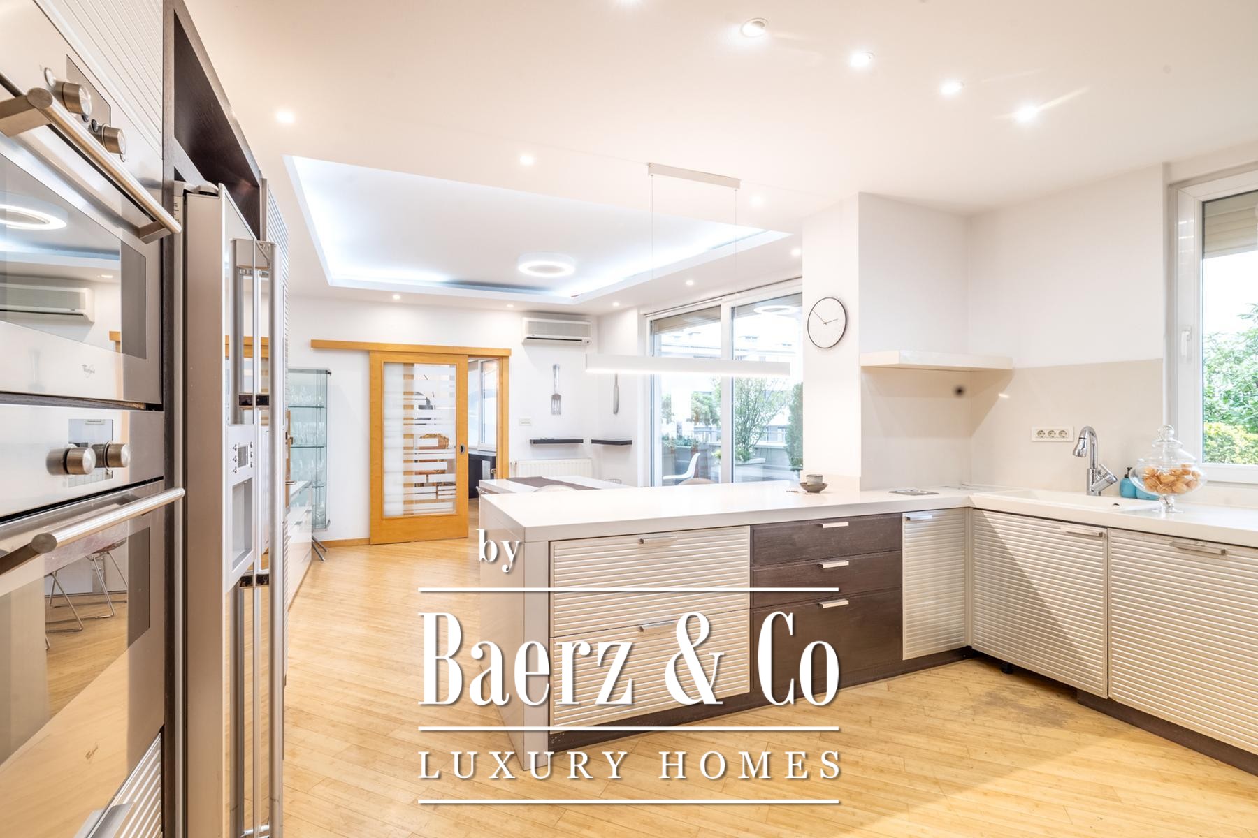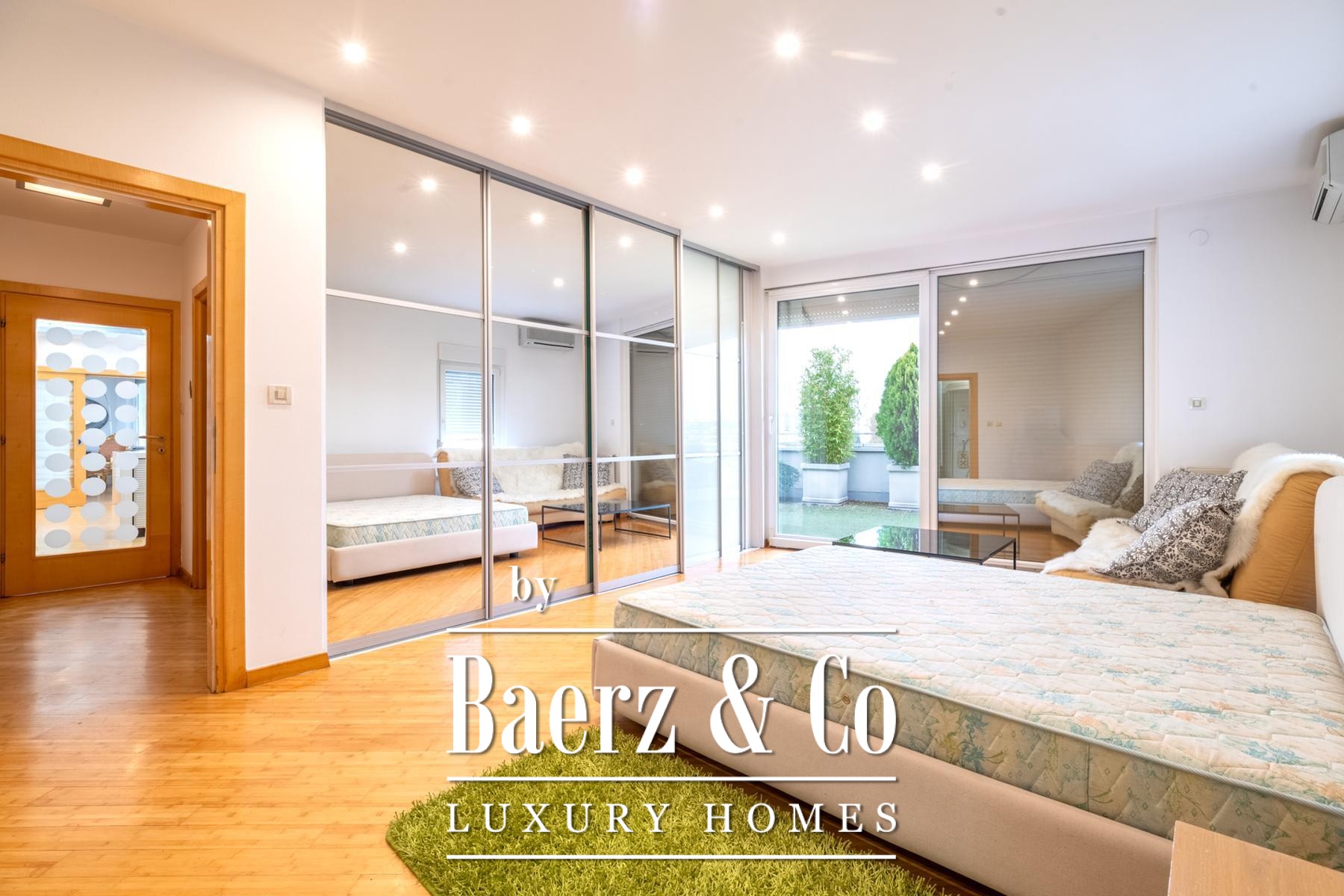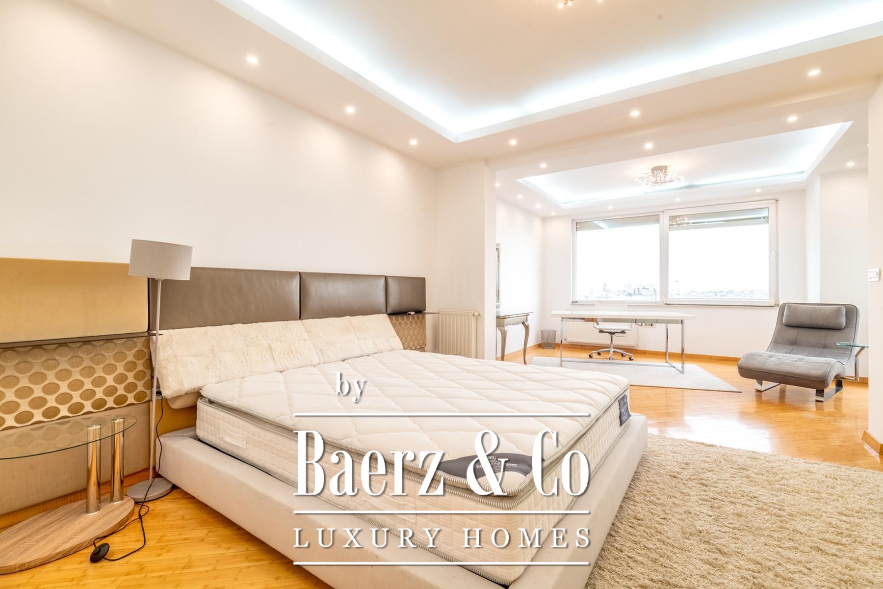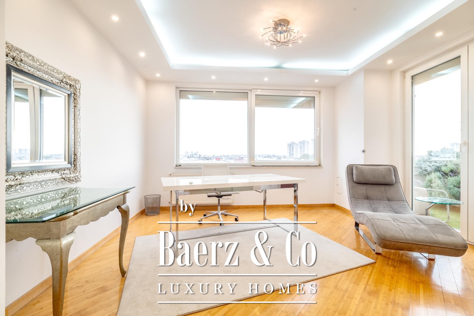 Penthouse Trešnjevka - Sjever is a rare offering in one of Zagreb’s most sought-after residential enclaves. This 356 m² penthouse occupies the entire sixth floor of a modern building completed in 2006, where an elevator provides direct entry to the residence and seamless access from a private 40 m² garage fit for two cars.