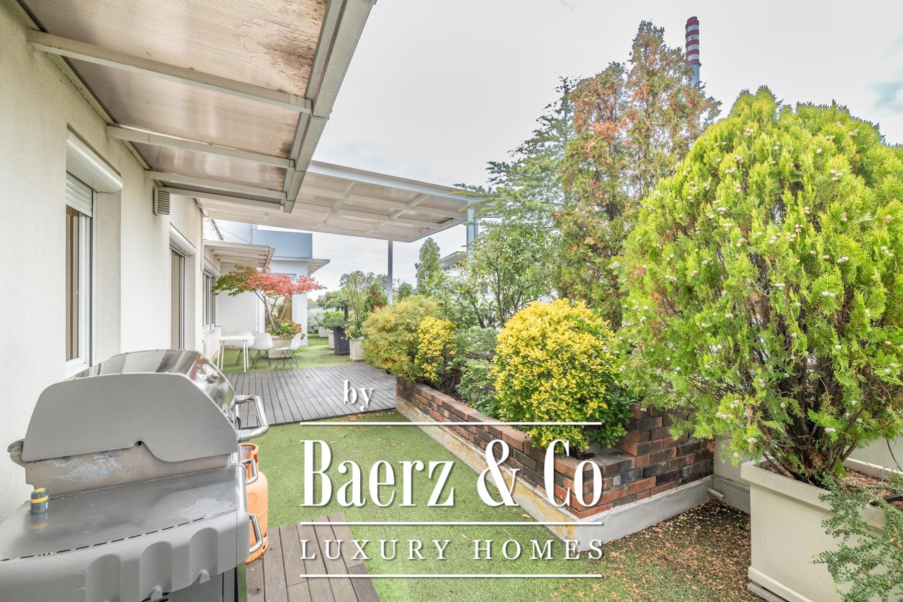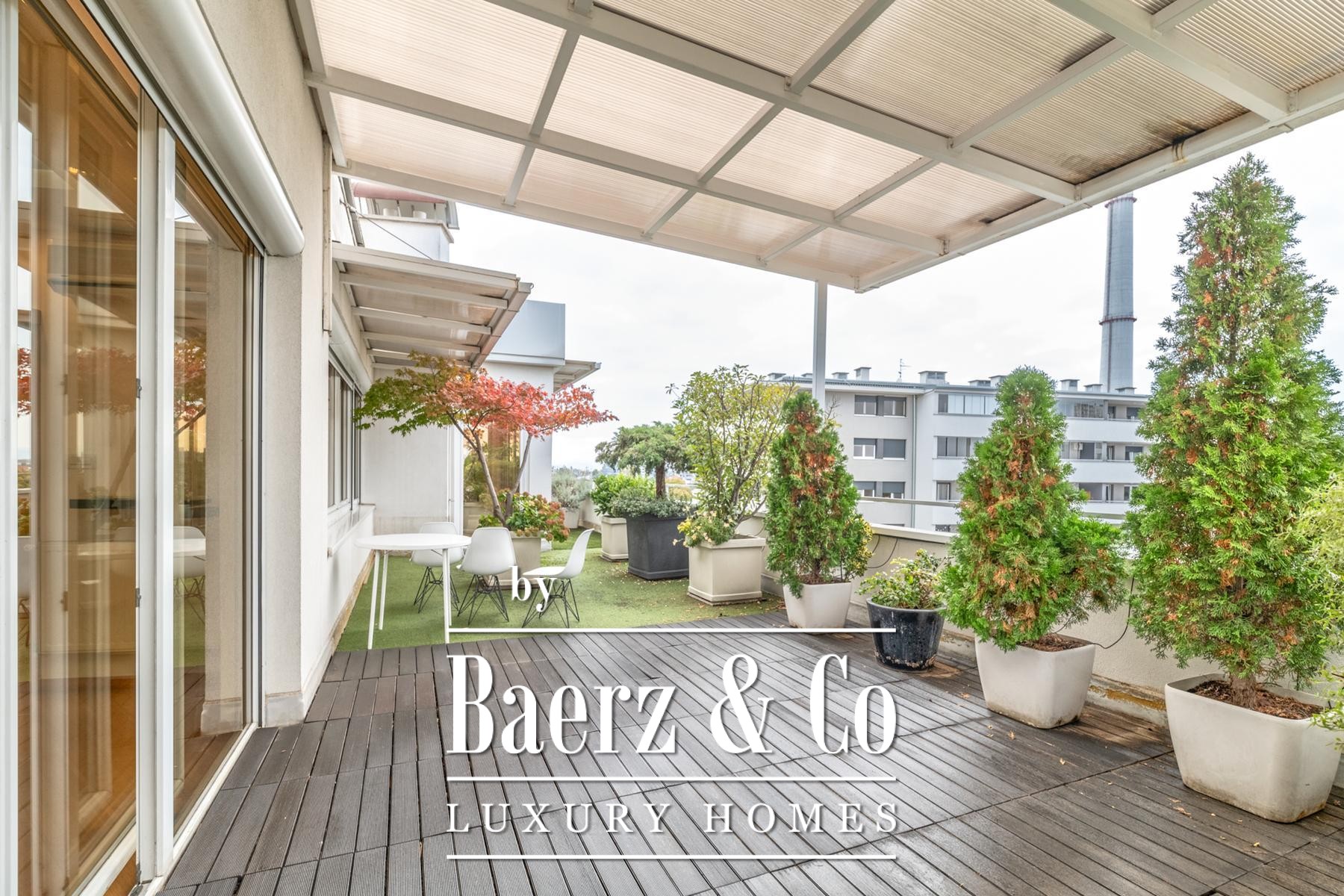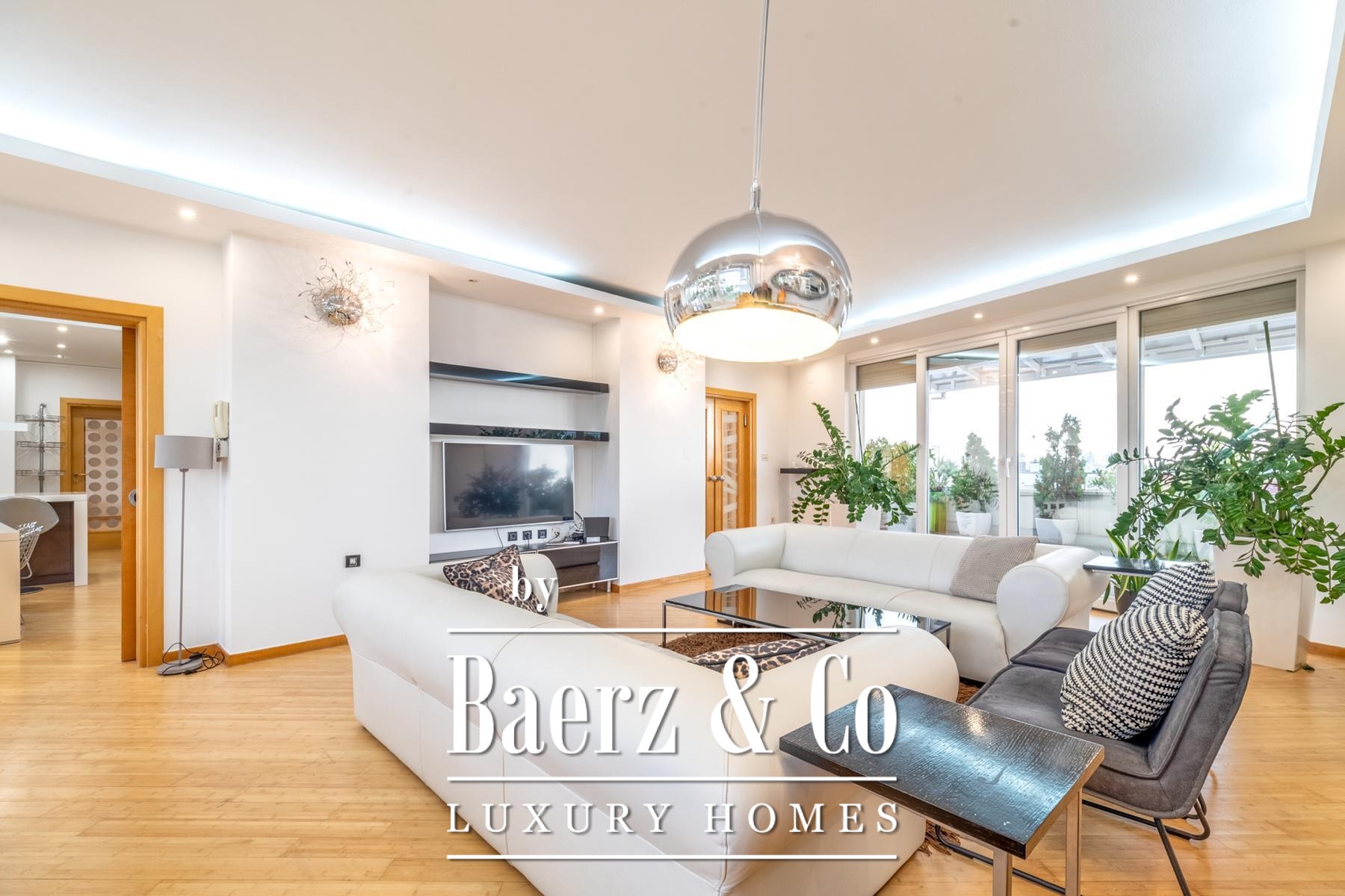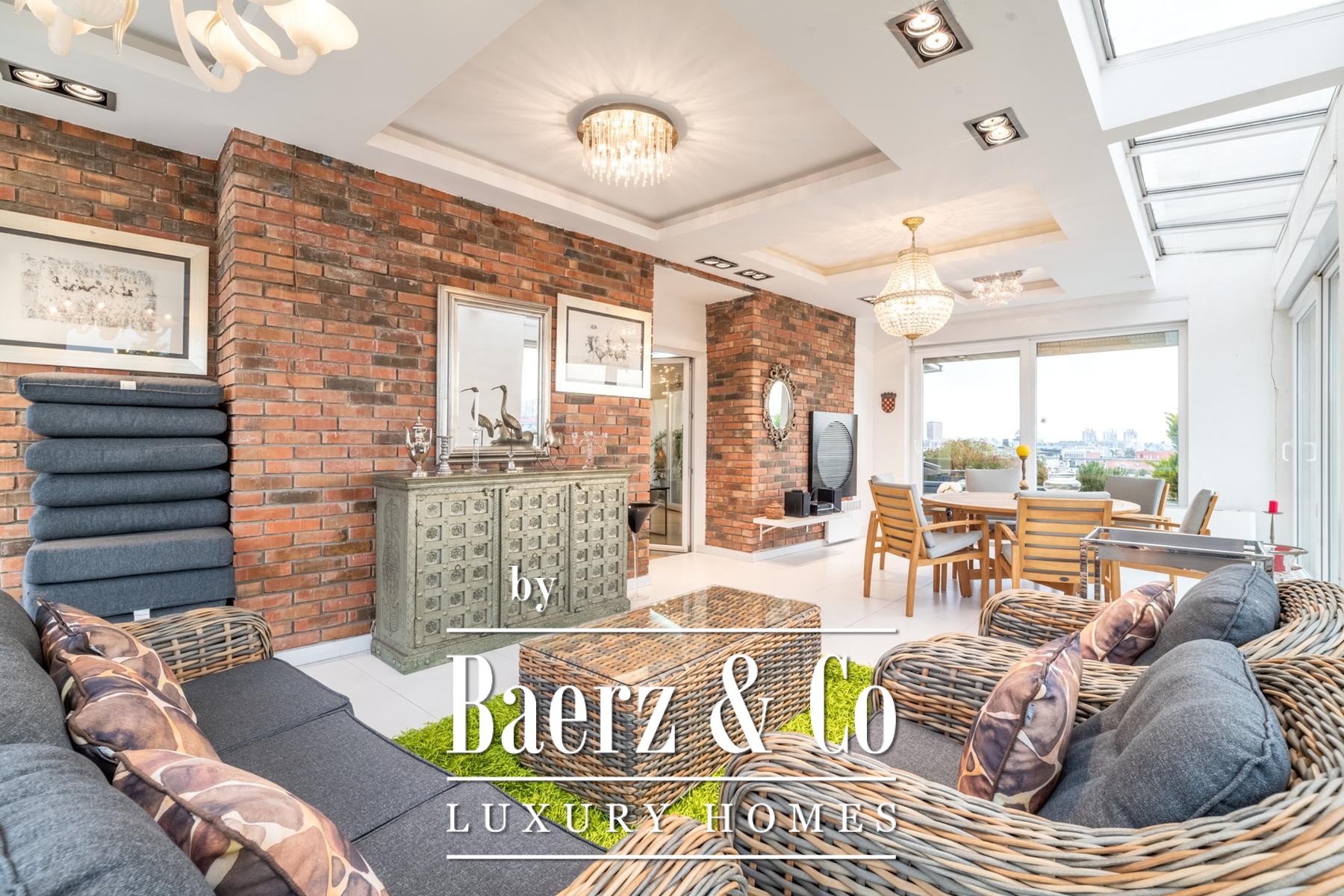 Penthouse Trešnjevka - Sjever is a rare offering in one of Zagreb’s most sought-after residential enclaves. This 356 m² penthouse occupies the entire sixth floor of a modern building completed in 2006, where an elevator provides direct entry to the residence and seamless access from a private 40 m² garage fit for two cars.