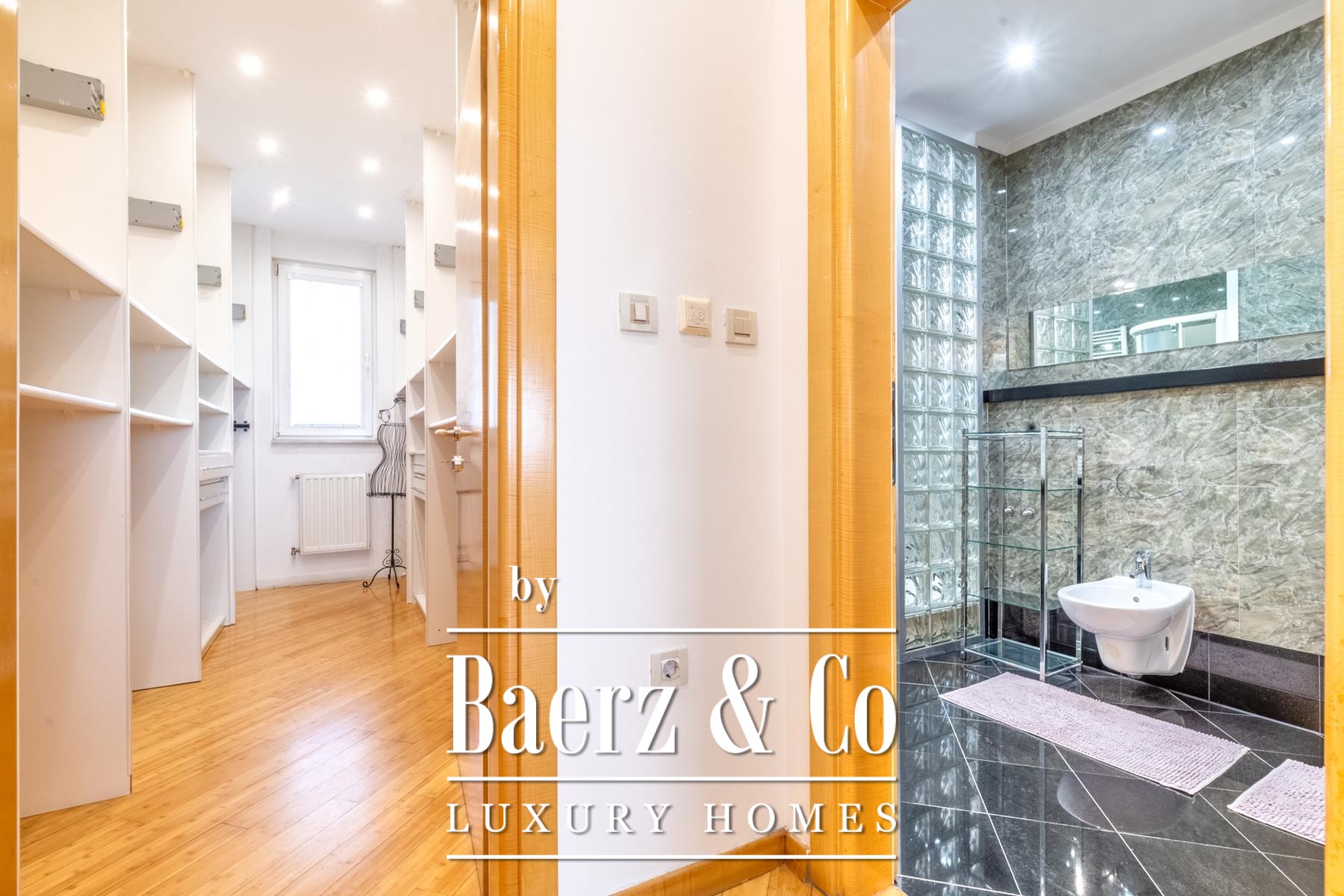 A legalized enclosed terrace has been thoughtfully reimagined as a serene 44 m² lounge, offering additional space for reflection or work. Fully air-conditioned interiors, laundry and storage rooms, as well as a guest WC, highlight both function and refinement.