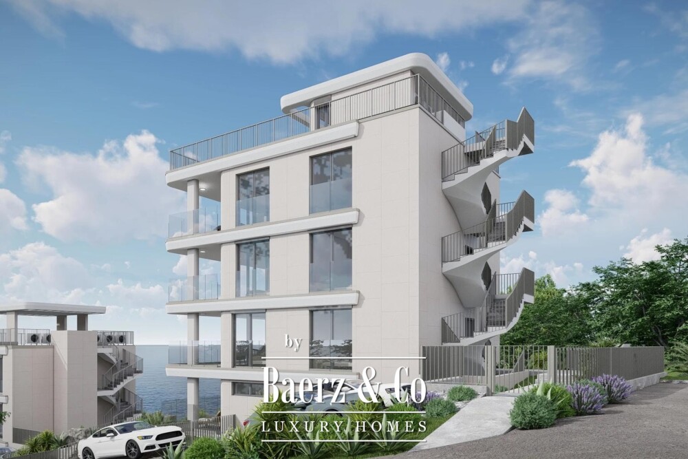 This three-bedroom, three-bathroom apartment occupies 126 m², with a main living space that opens to a 27.83 m² terrace, providing sweeping views and seamless indoor-outdoor flow. The upper level features a private bedroom with direct access to a 74.17 m² terrace, where the Adriatic light and sea air become part of daily life. Designed to offer comfort throughout all four seasons, the apartment allows for both privacy and connection to its natural surroundings. Underground and outdoor parking, as well as storage options, enhance convenience, with exclusive amenities available directly at the beach.
