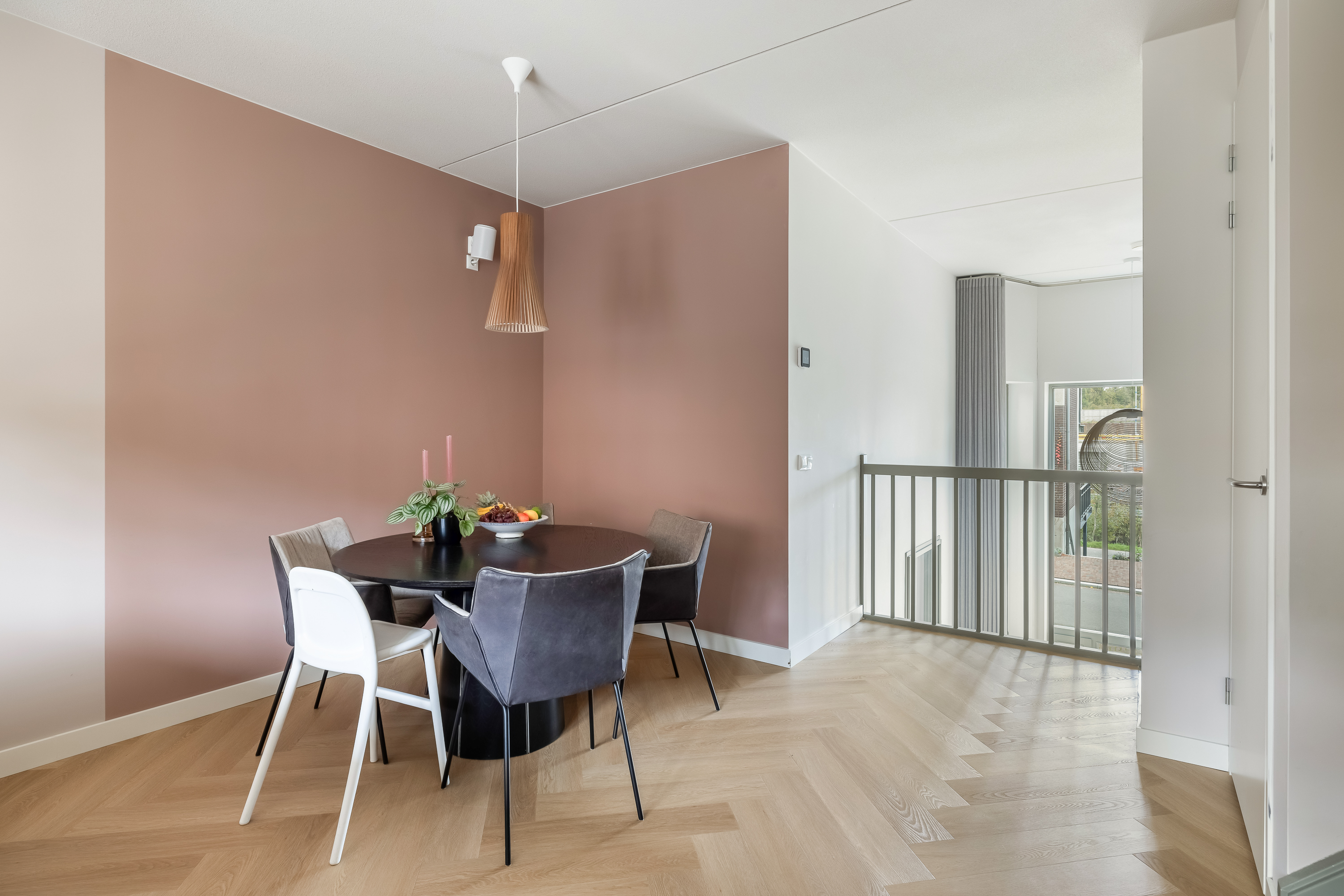 Op de eerste verdieping bevindt zich een ruime woonkamer met plek voor een zithoek en speelhoek. Een fijne leefruimte waar iedereen zijn eigen plek vindt.